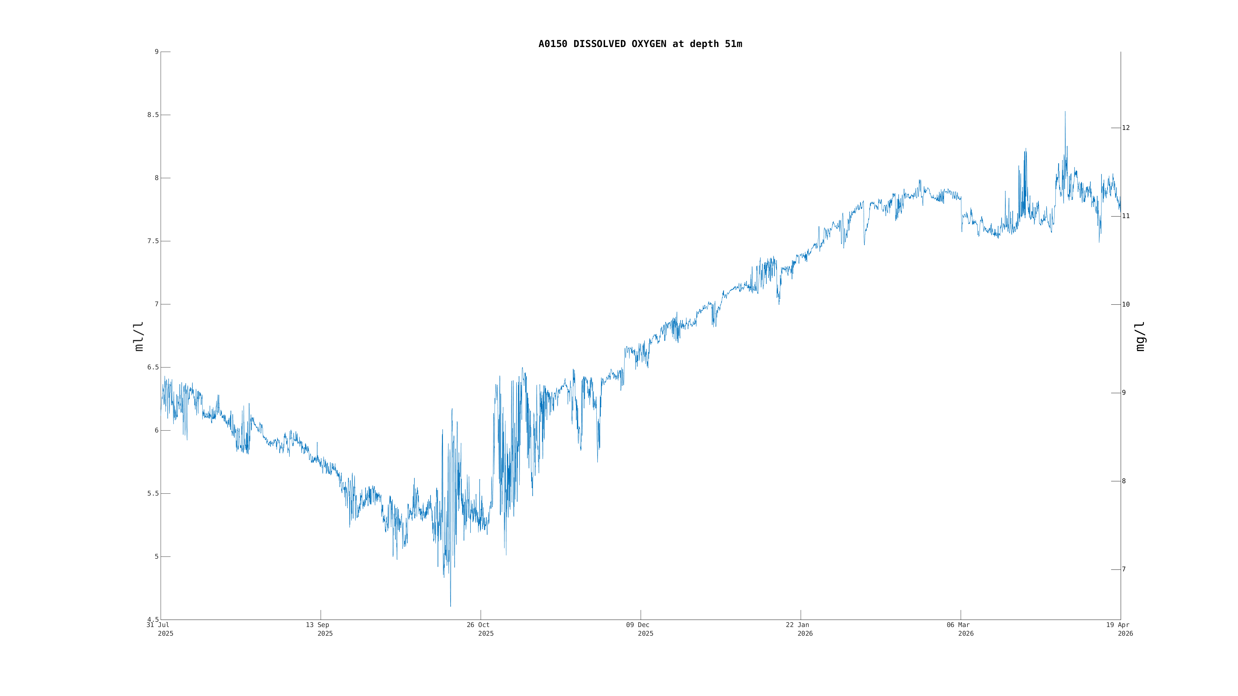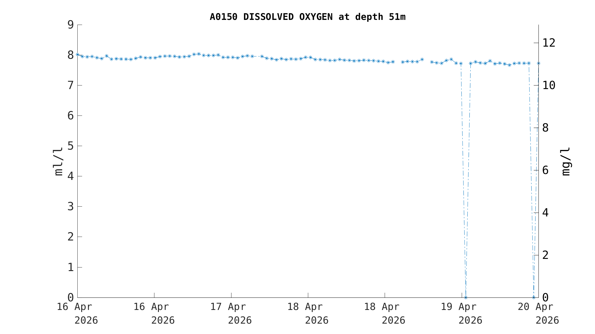 | Dissolved Oxygen (51m) | 7.7 ml/l (11.1 mg/l) | Apr 19 12:00 PM |
