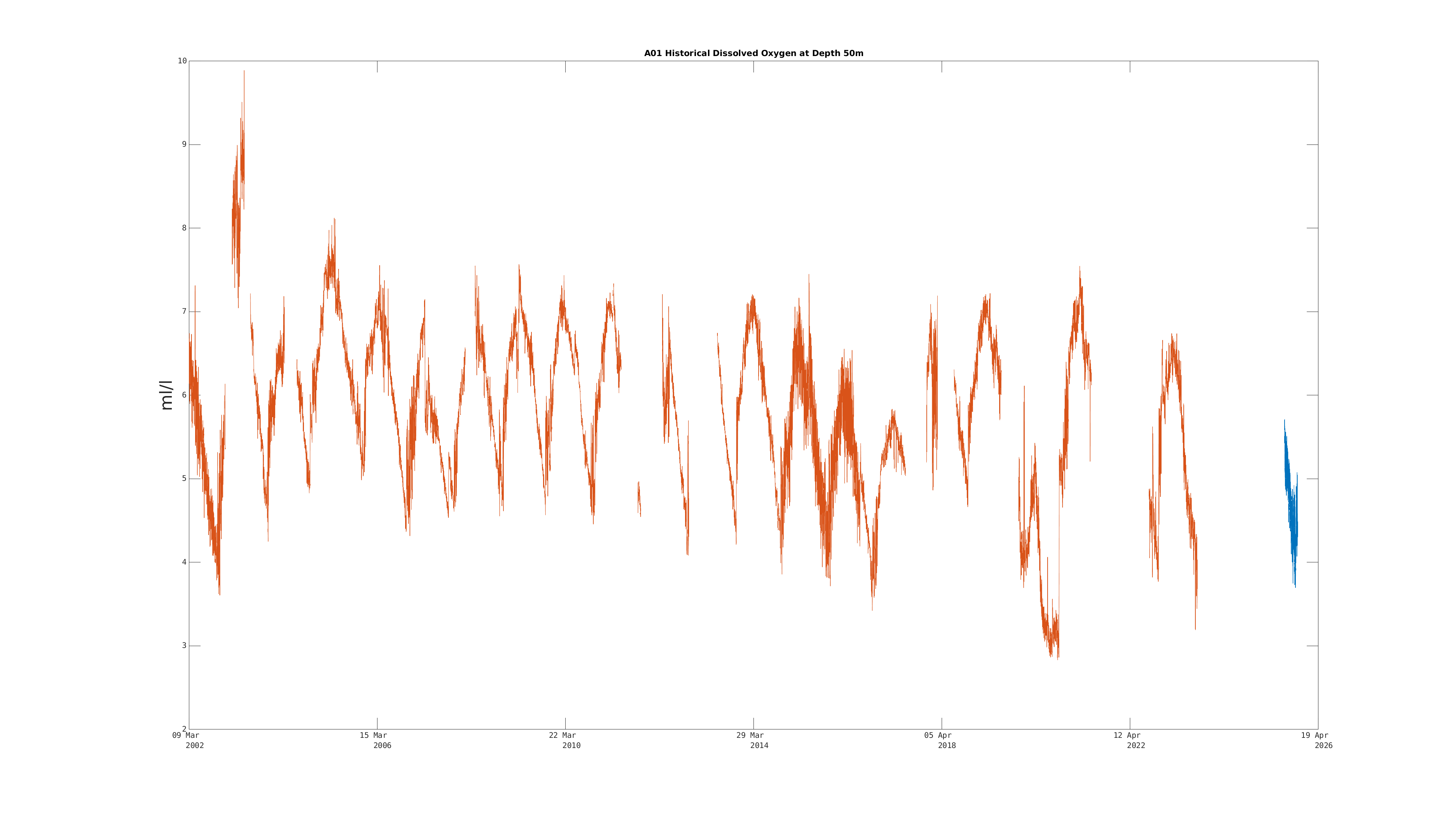 | Dissolved Oxygen (50m) | Sensor Failure | Apr 19 12:00 PM |