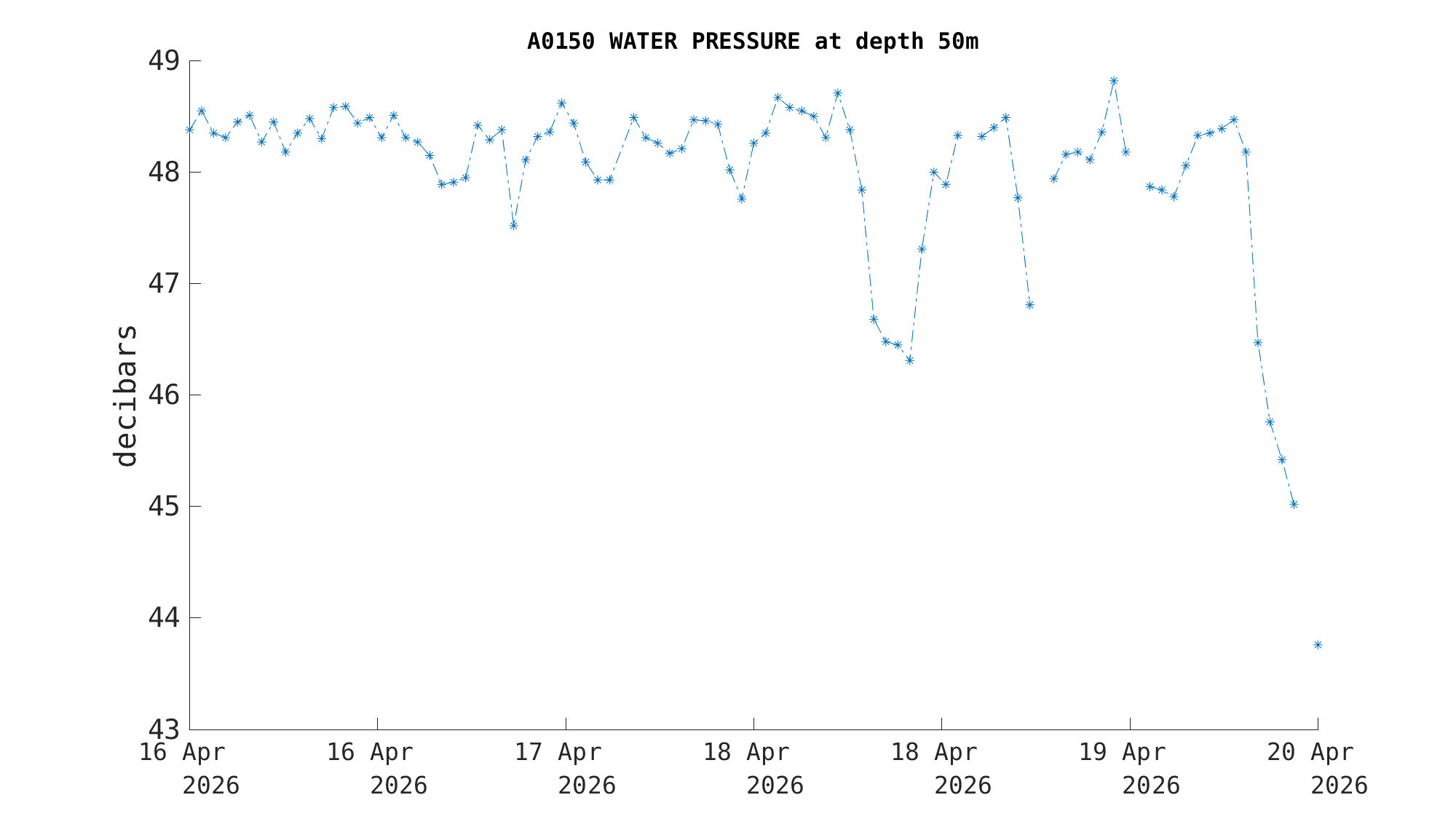 | Pressure (50m) | 48.4 decibars | Apr 19 12:00 PM |