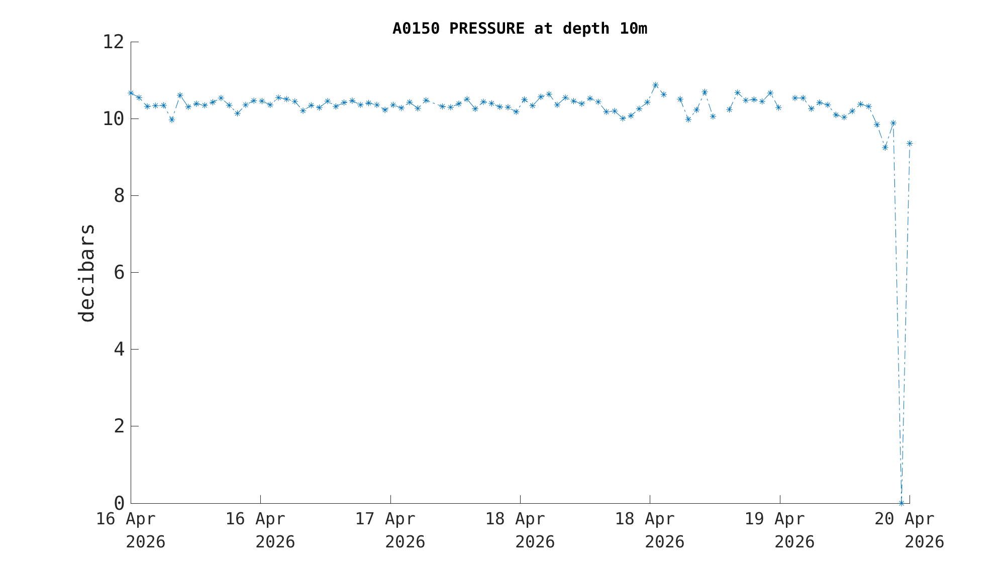 | Pressure (10m) | 10.0 decibars | Apr 19 12:00 PM |