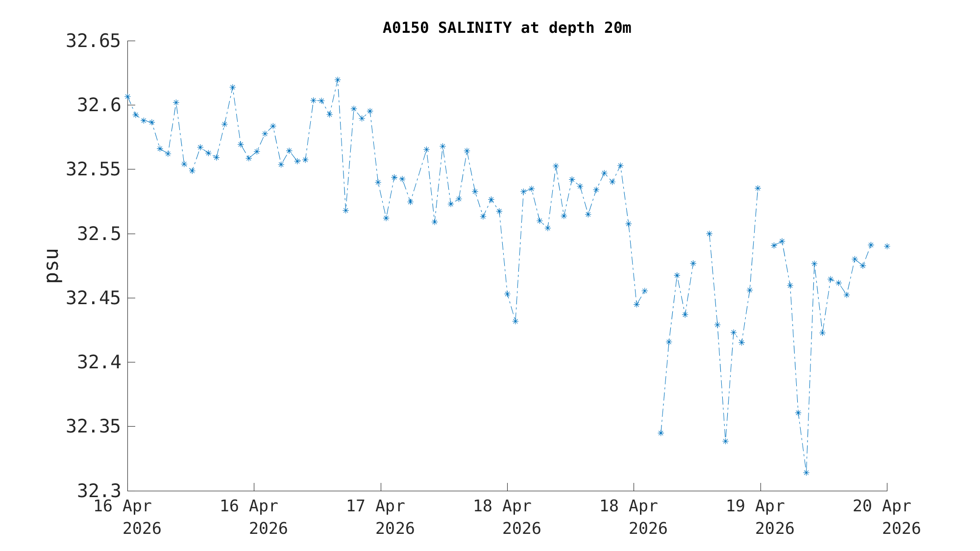 | Salinity (20m) | 32.4 psu | Apr 19 12:00 PM |