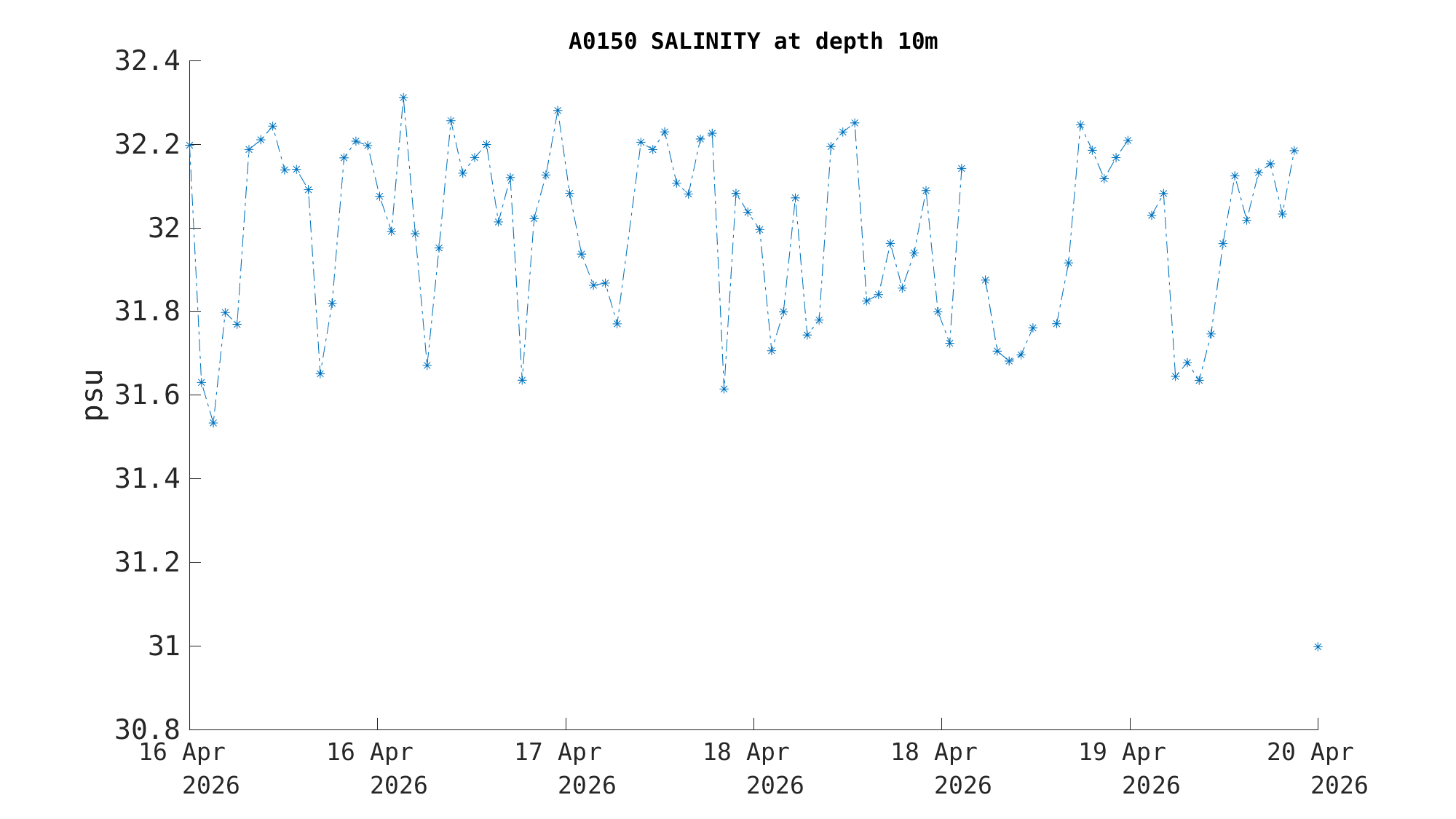| Salinity (10m) | 32.0 psu | Apr 19 12:00 PM |