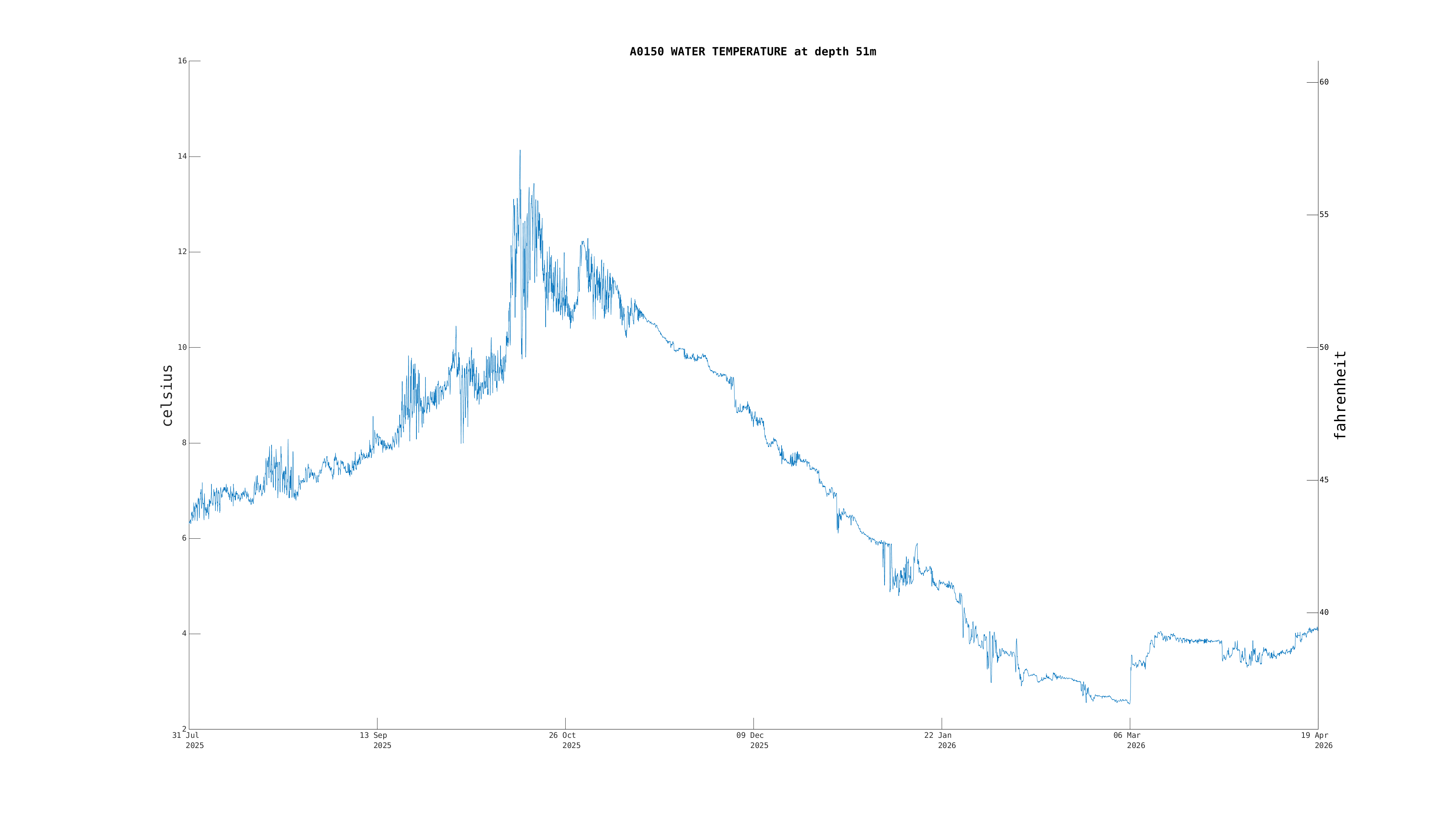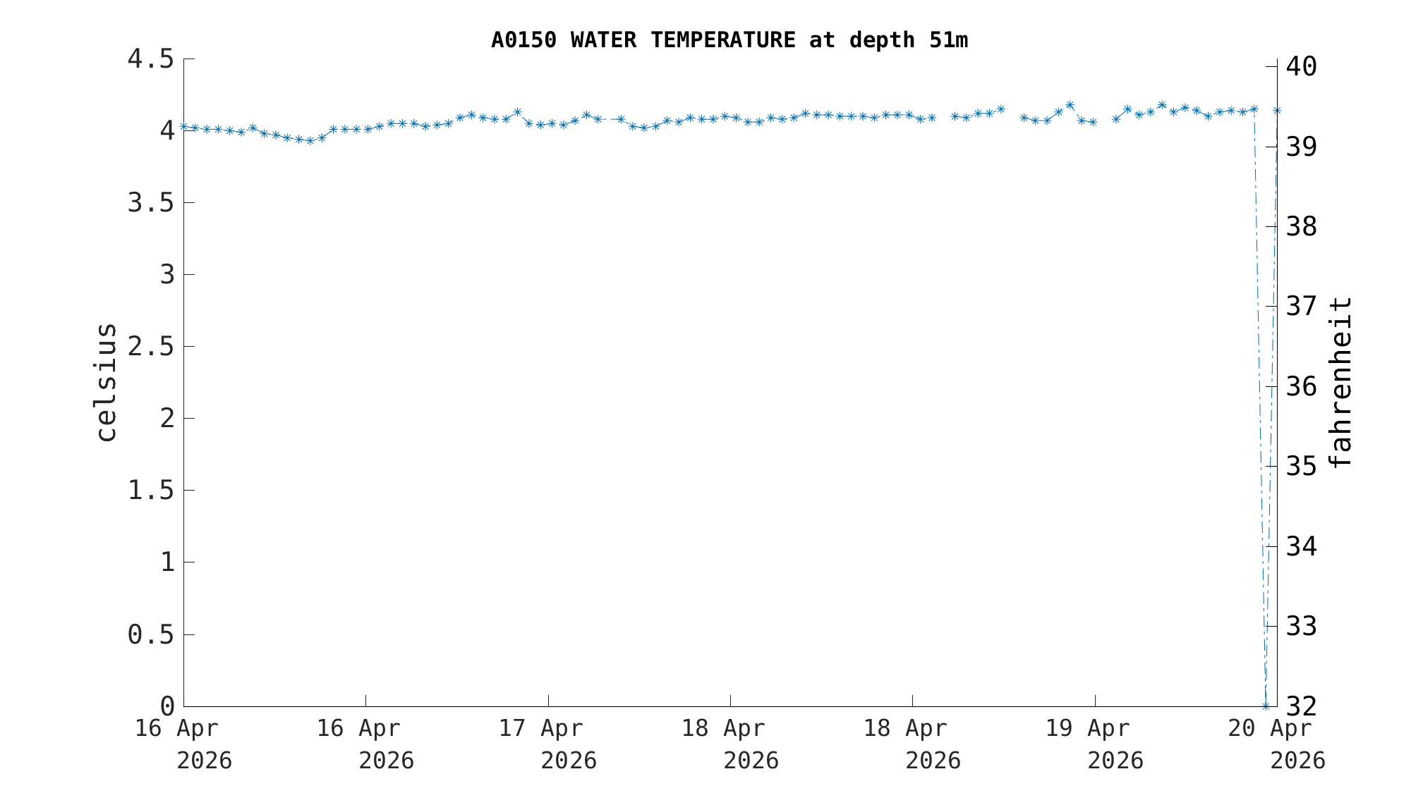 | Water Temperature (51m) | 4.2 C (39.5 F) (opt) | Apr 19 12:00 PM |