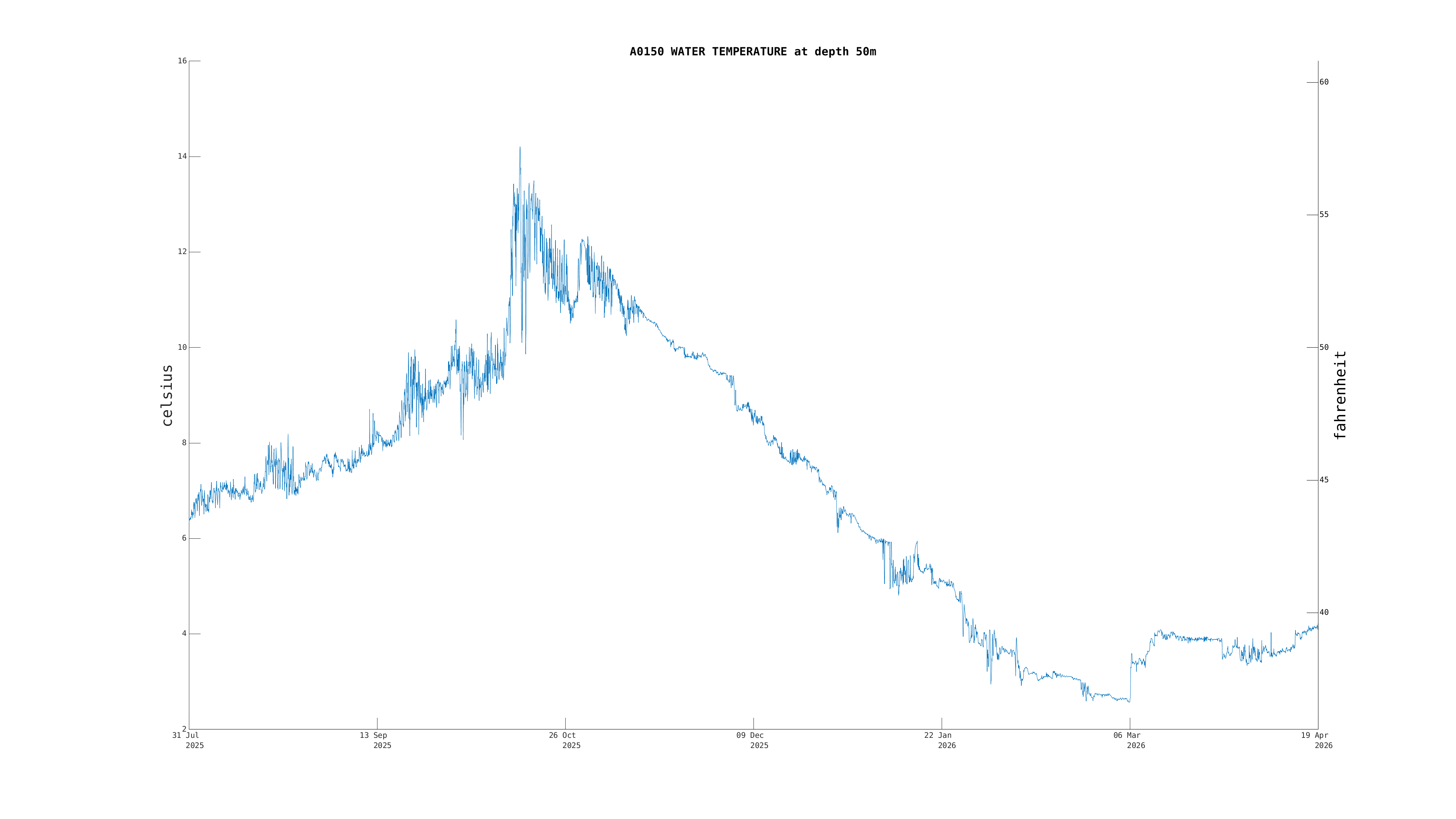| Water Temperature (50m) | 4.2 C (39.6 F) | Apr 19 12:00 PM |