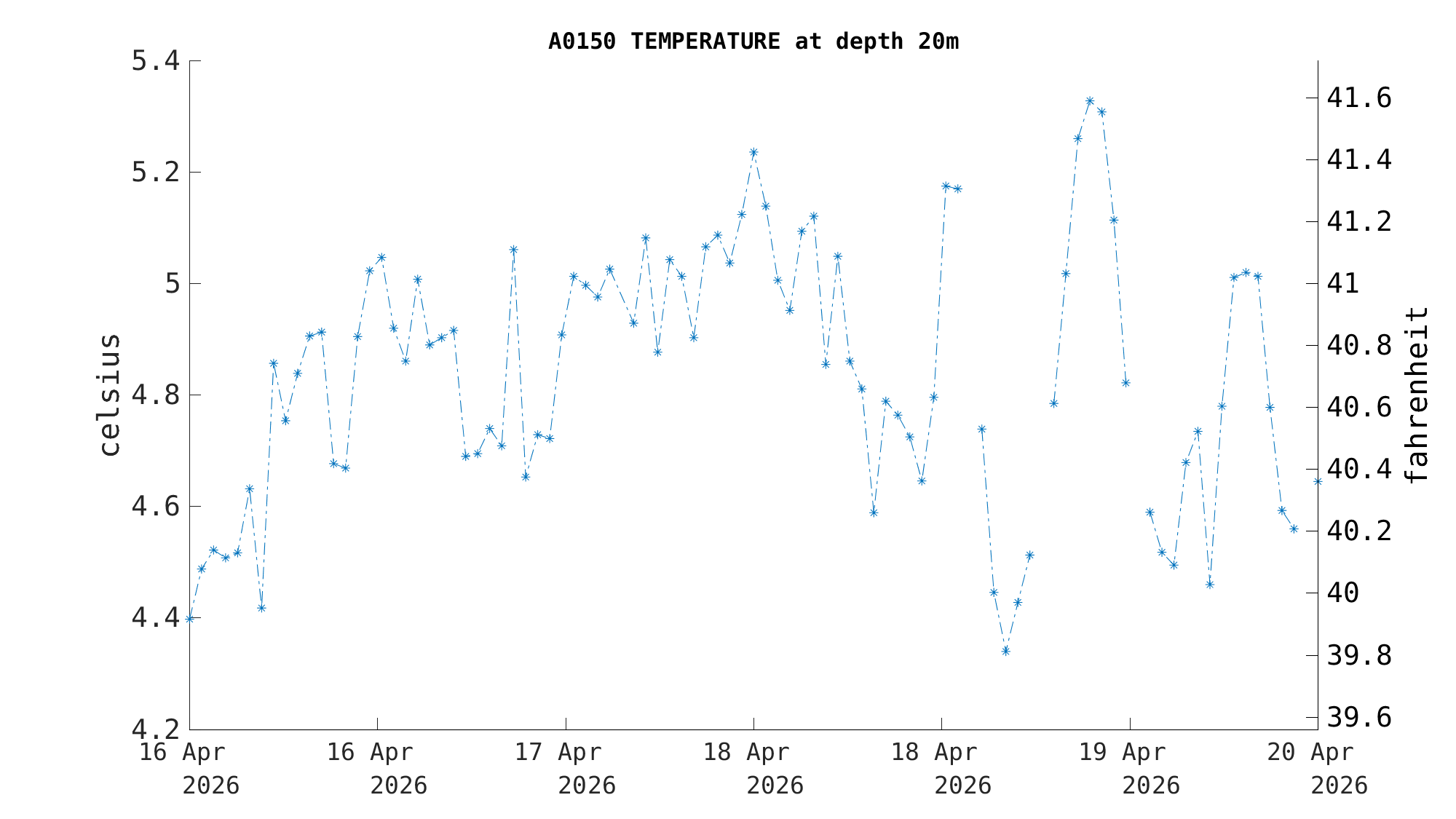 | Water Temperature (20m) | 4.8 C (40.6 F) | Apr 19 12:00 PM |