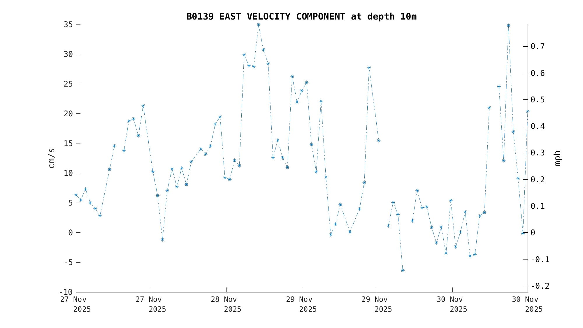 | North Current Velocity (10m) | 8.8 cm/s (0.17 kts) | Dec 08 3:00 PM |