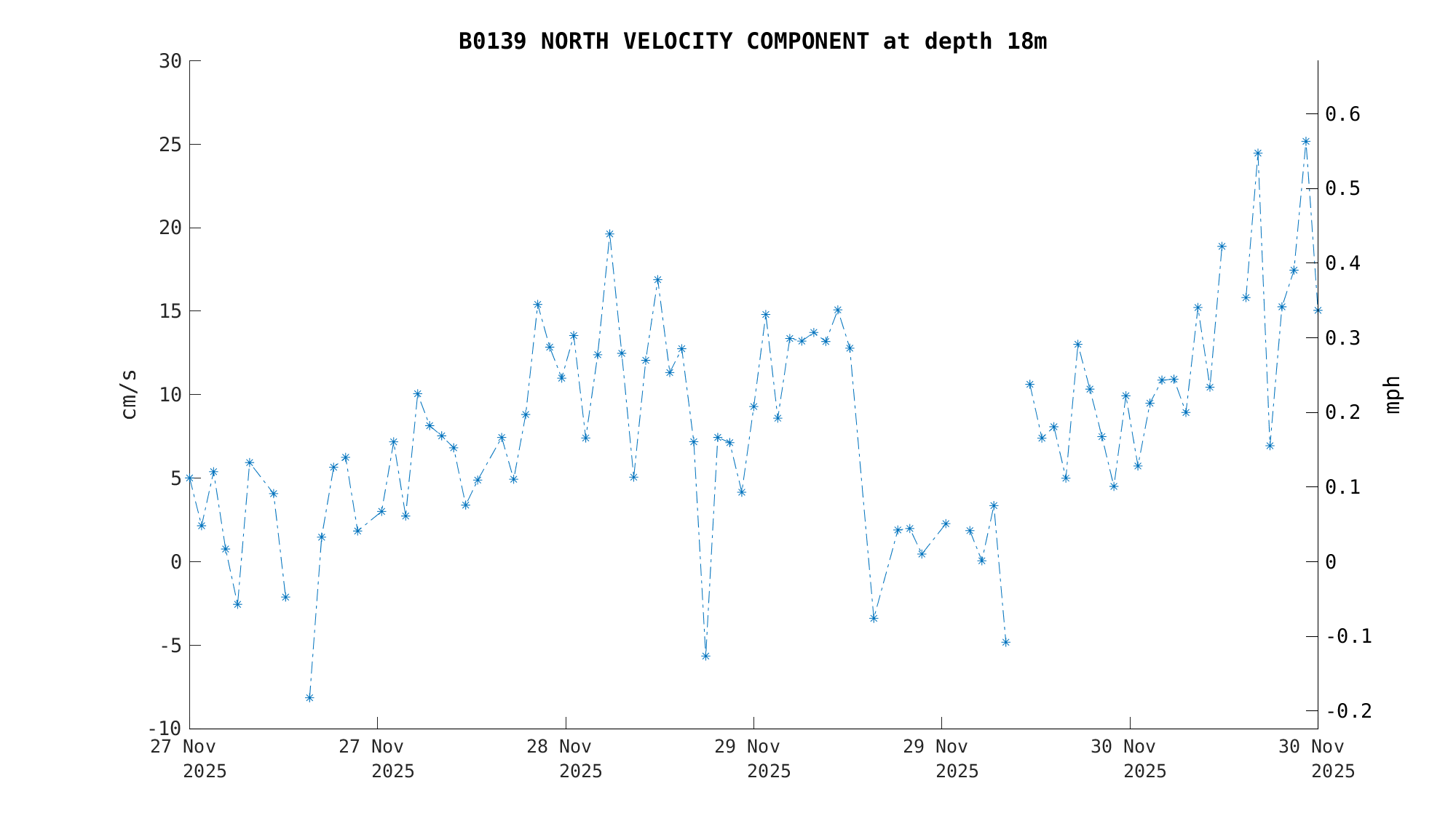 | North Current Velocity (18m) | 8.1 cm/s (0.16 kts) | Dec 08 3:00 PM |