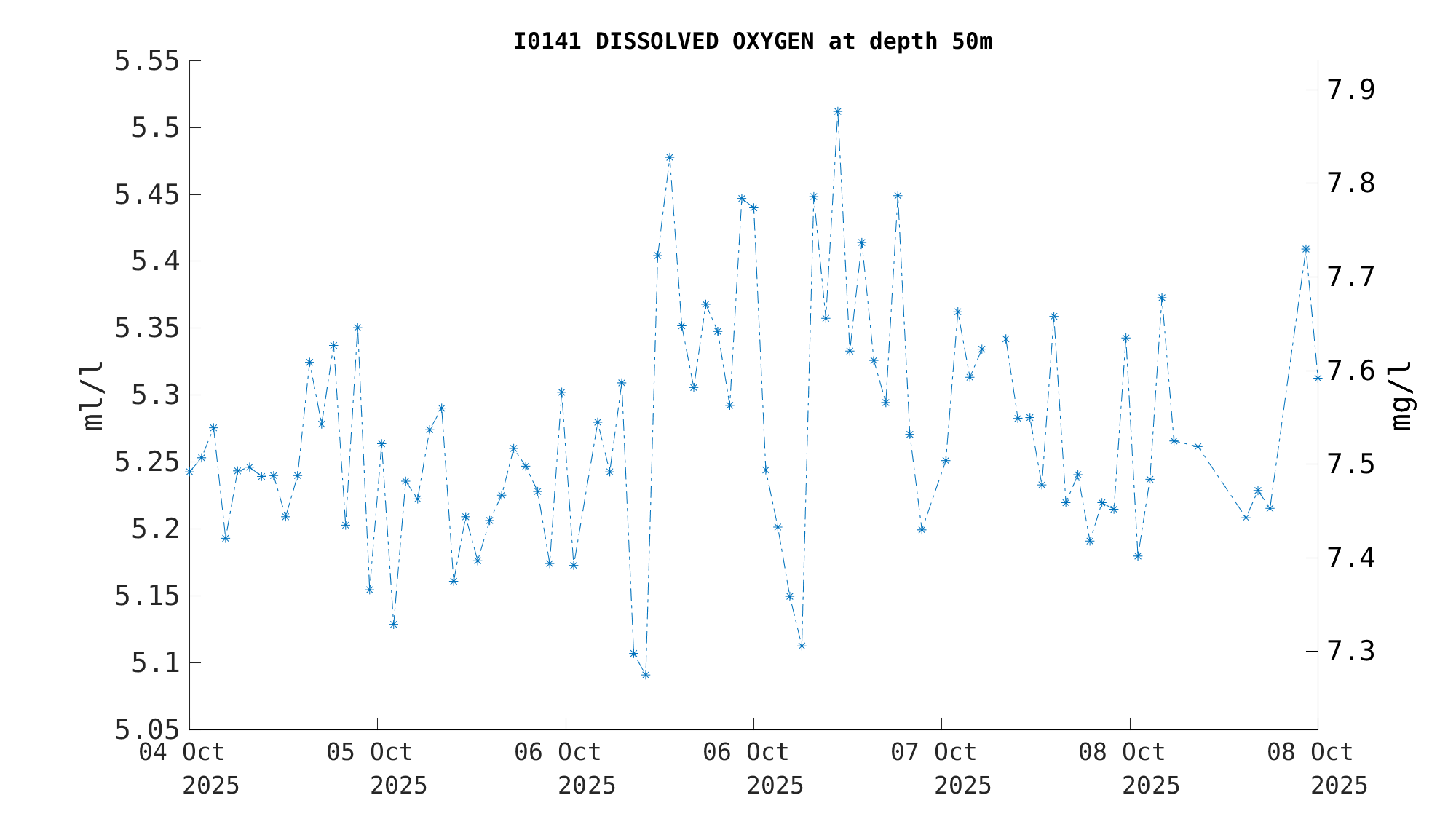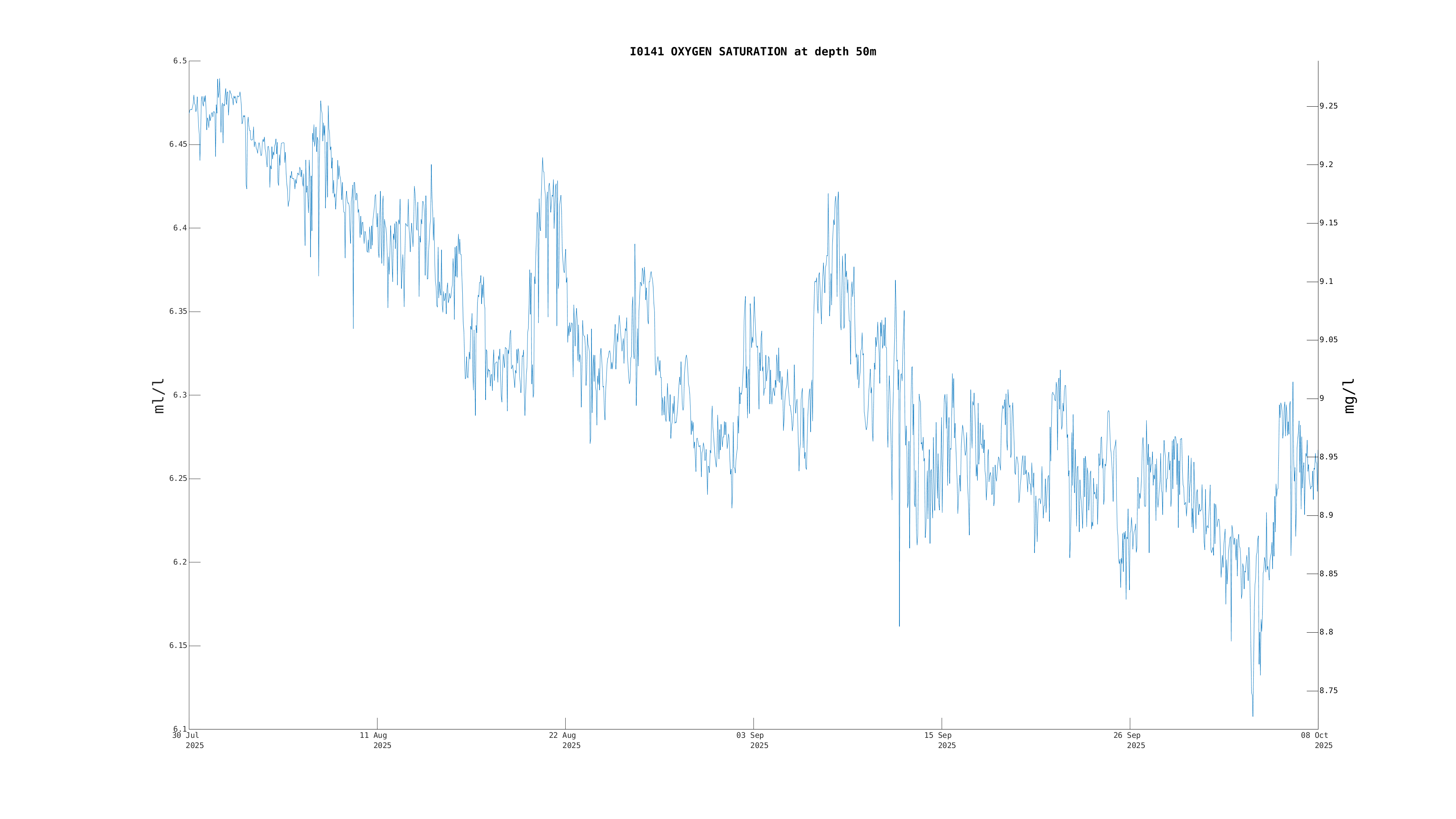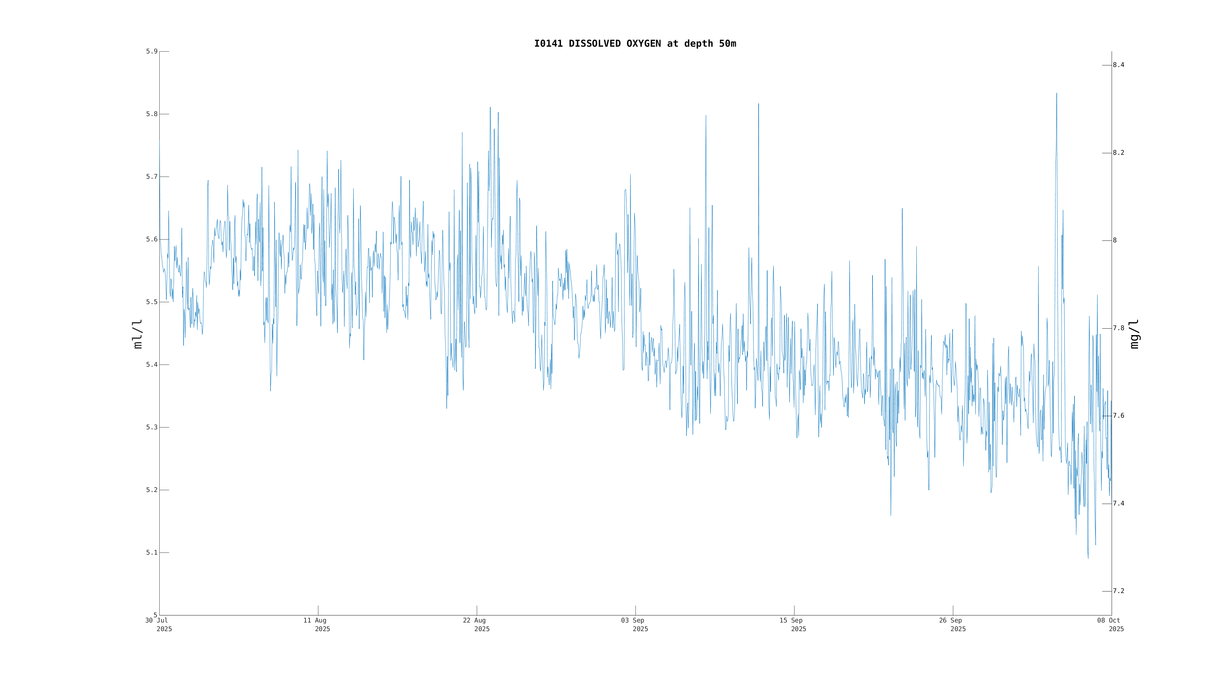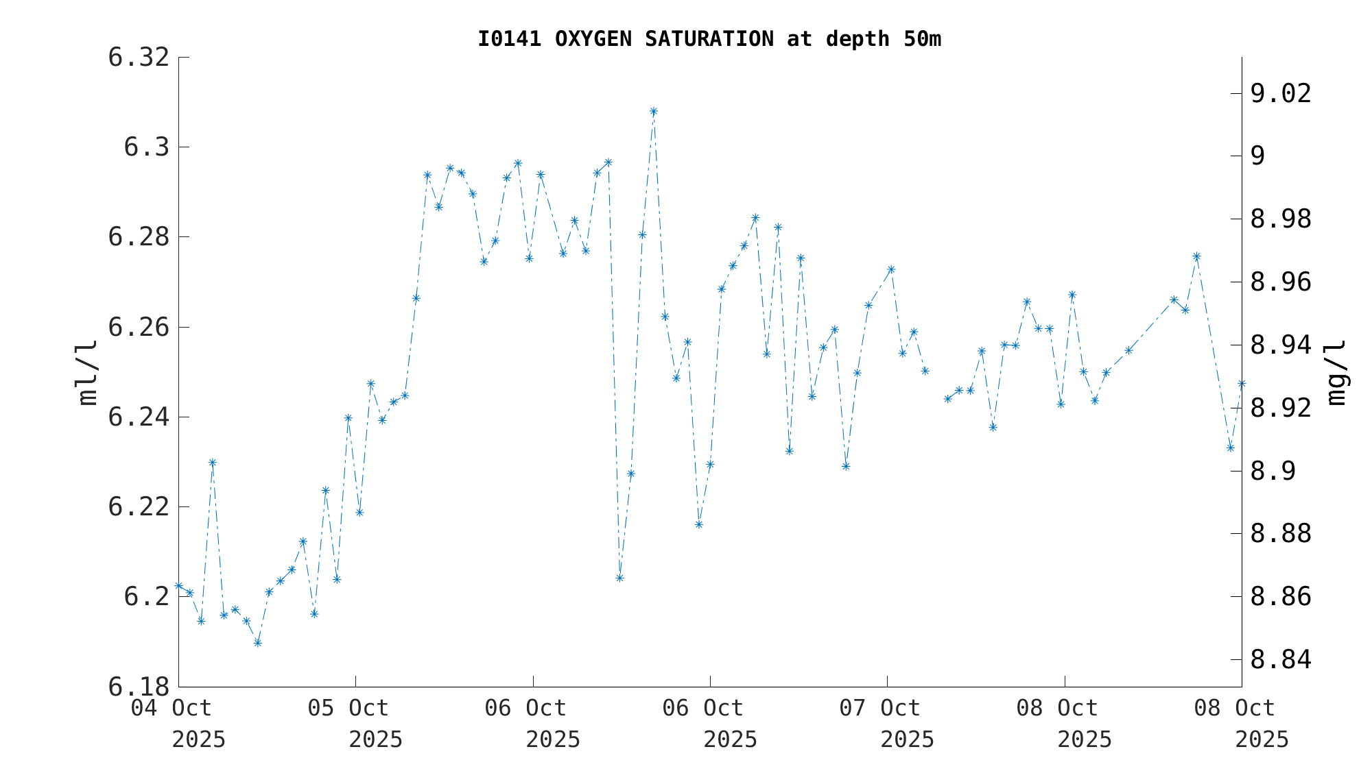 Oxygen Saturation (50m) | 6.2 ml/l | Oct 08 3:00 PM |