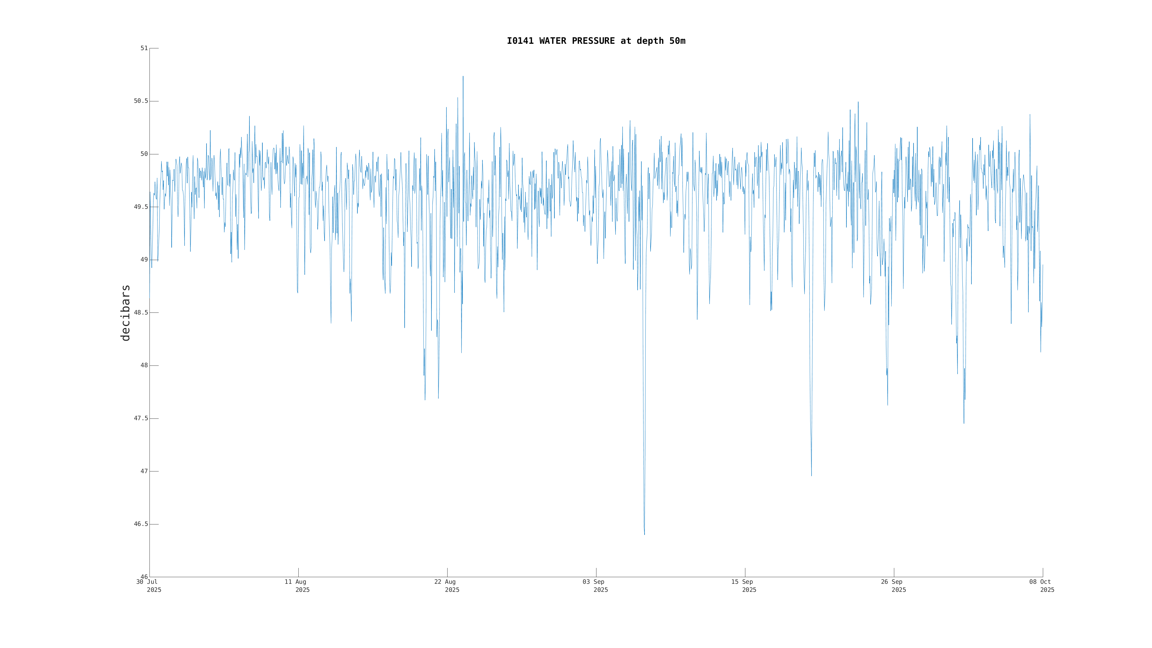 Pressure (50m) | 46.6 decibars | Oct 08 3:00 PM |