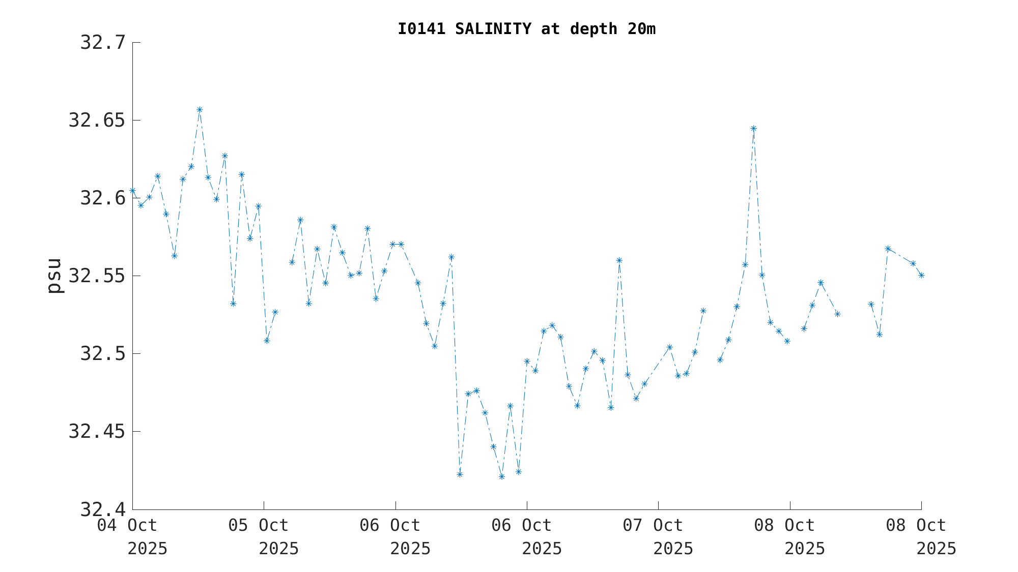 Salinity (1m) | 32.5 psu | Oct 08 3:30 PM |