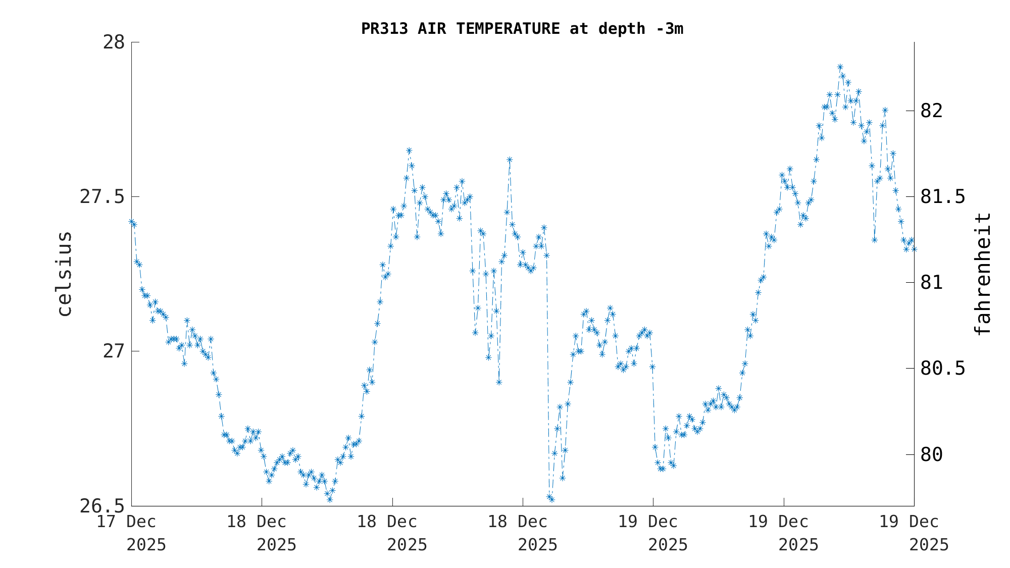 | Air Temperature (-3m) | 27.1 C (80.7 F) | Dec 19 7:30 AM |