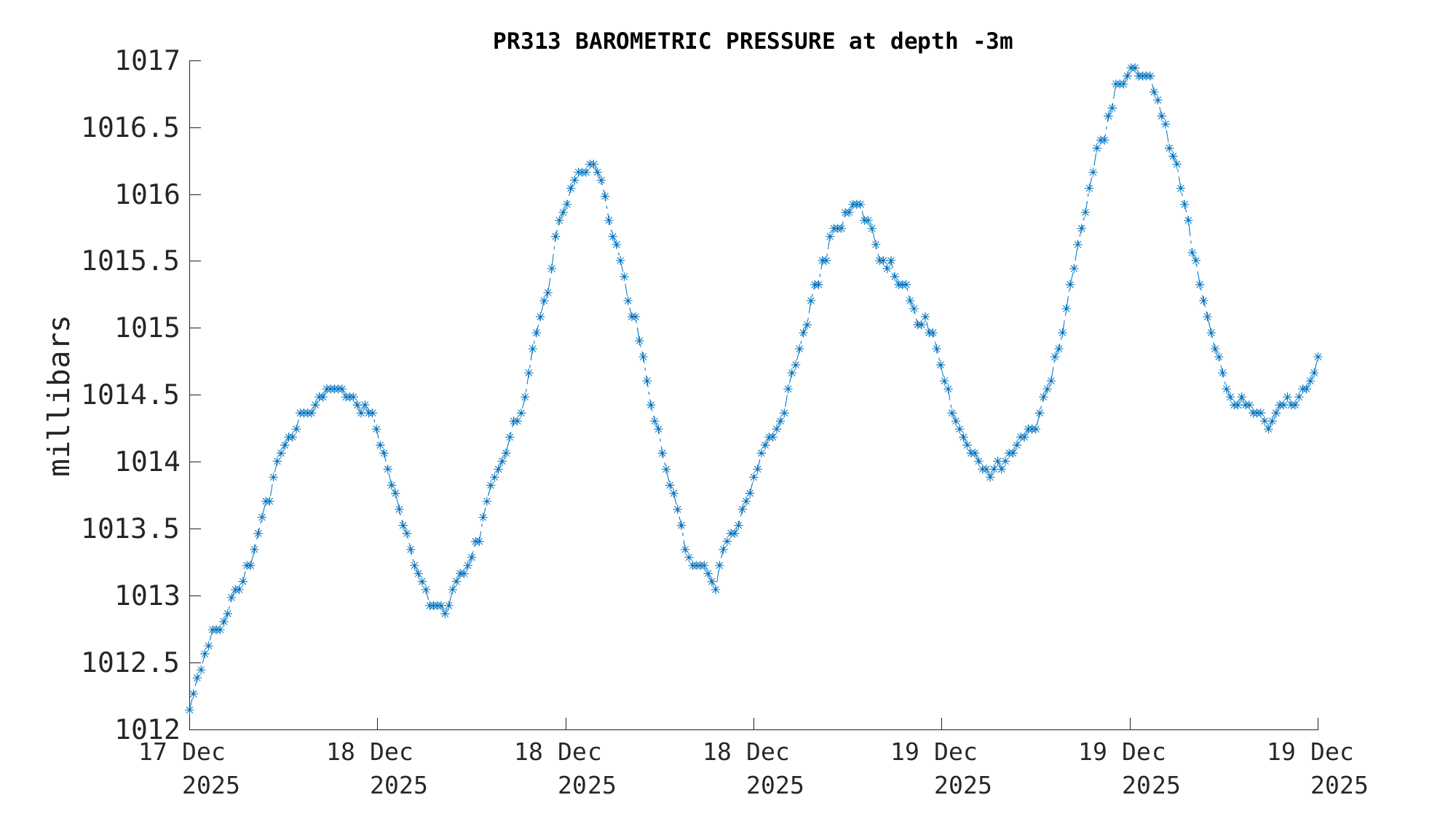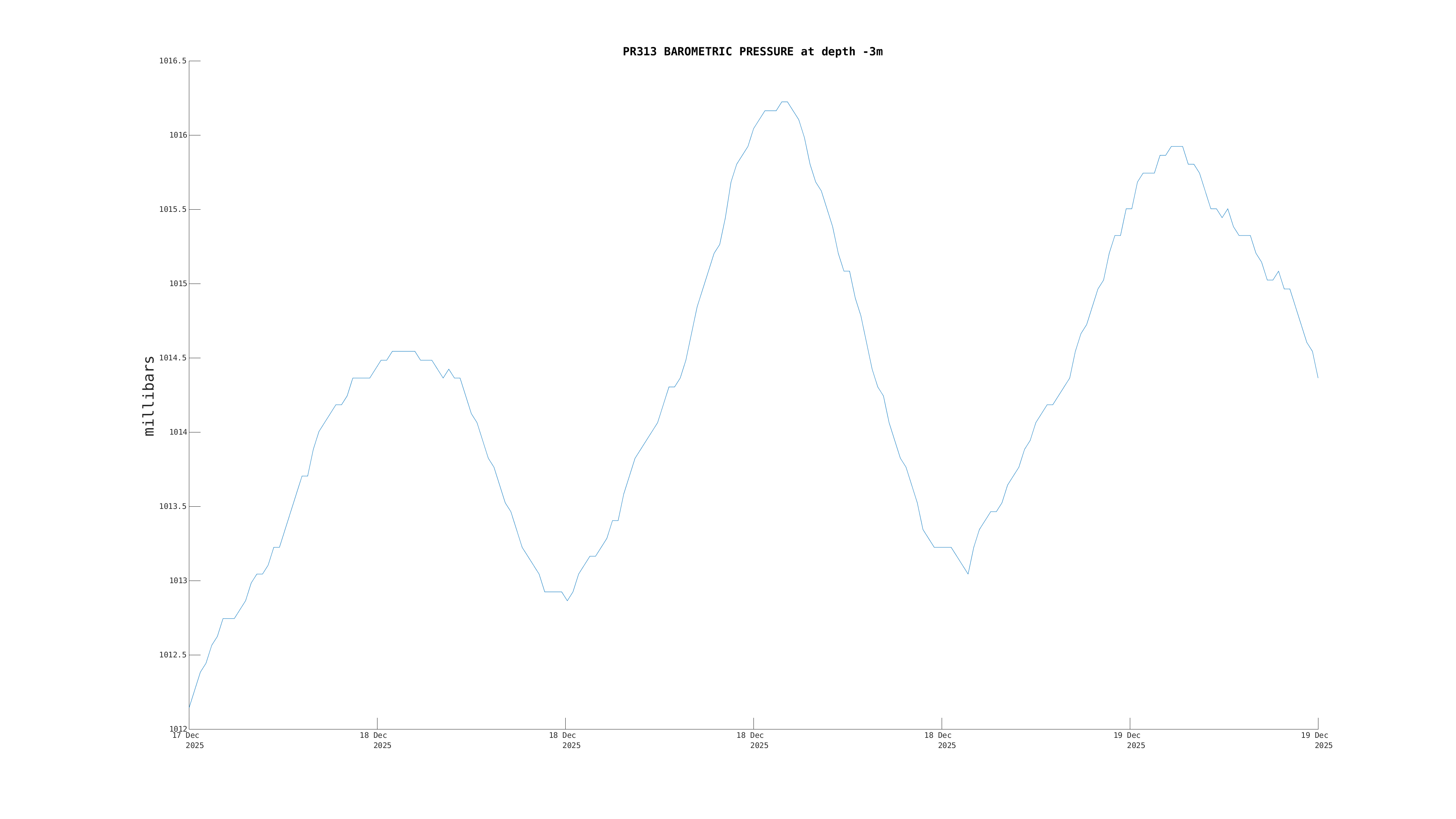 | Barometric Pressure (-3m) | 1015.6 millibars | Dec 19 7:30 AM |