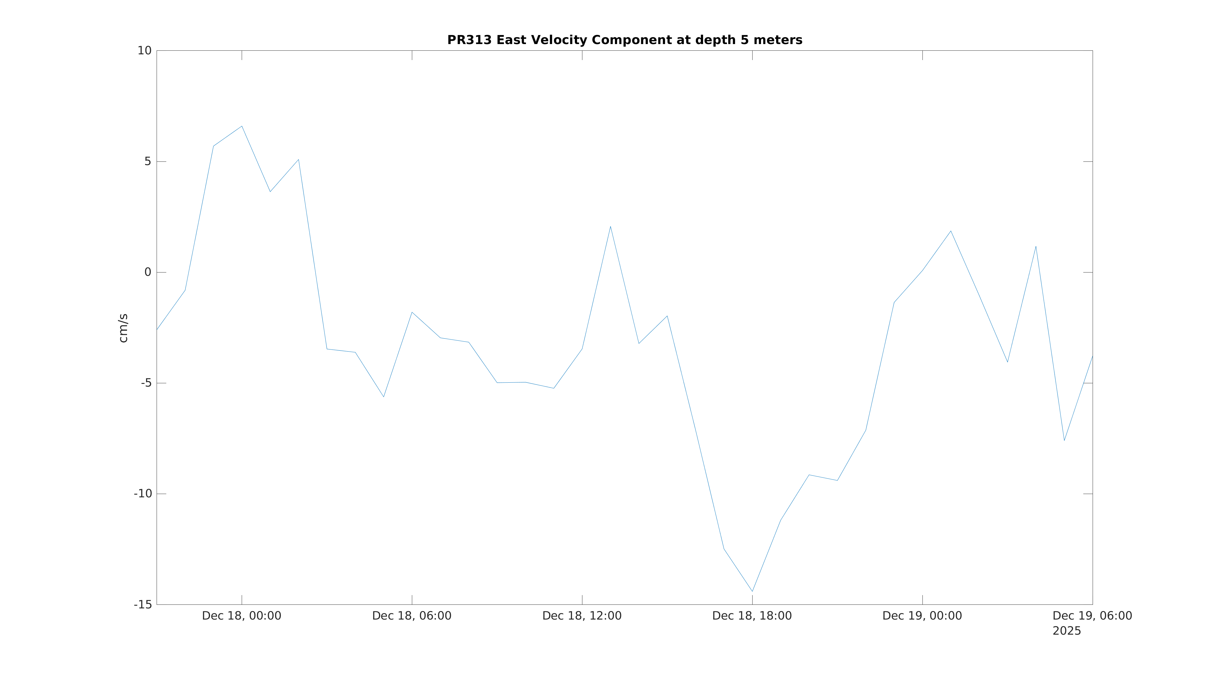 | North Current Velocity (5m) | 10.3 cm/s (0.20 kts) | Dec 19 7:00 AM |