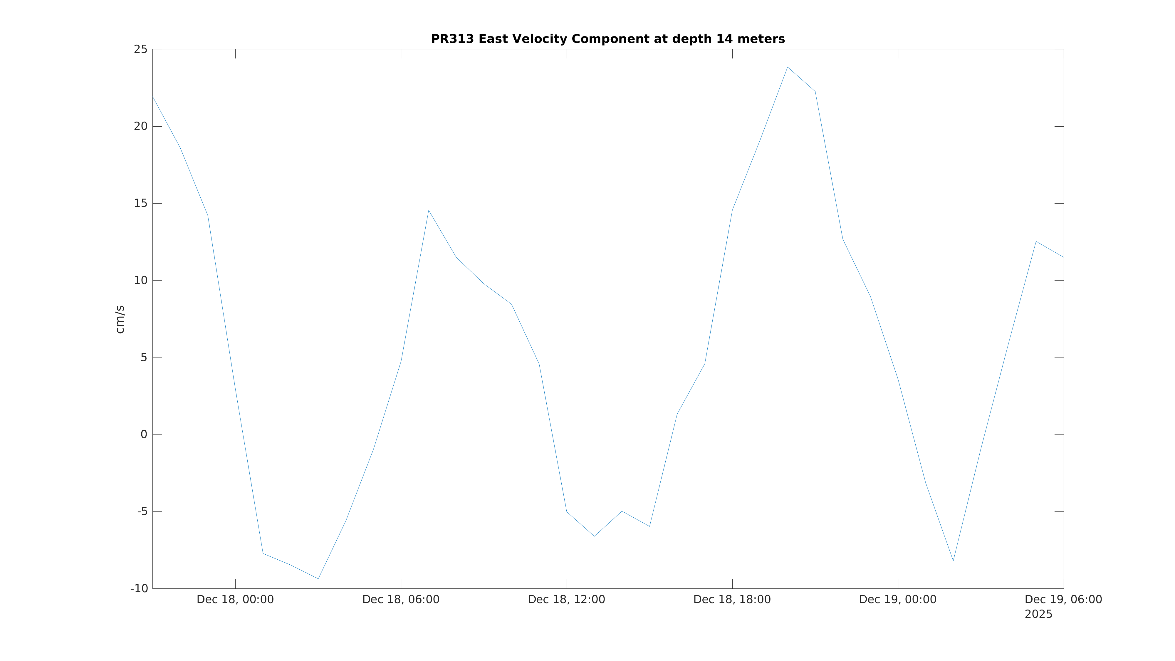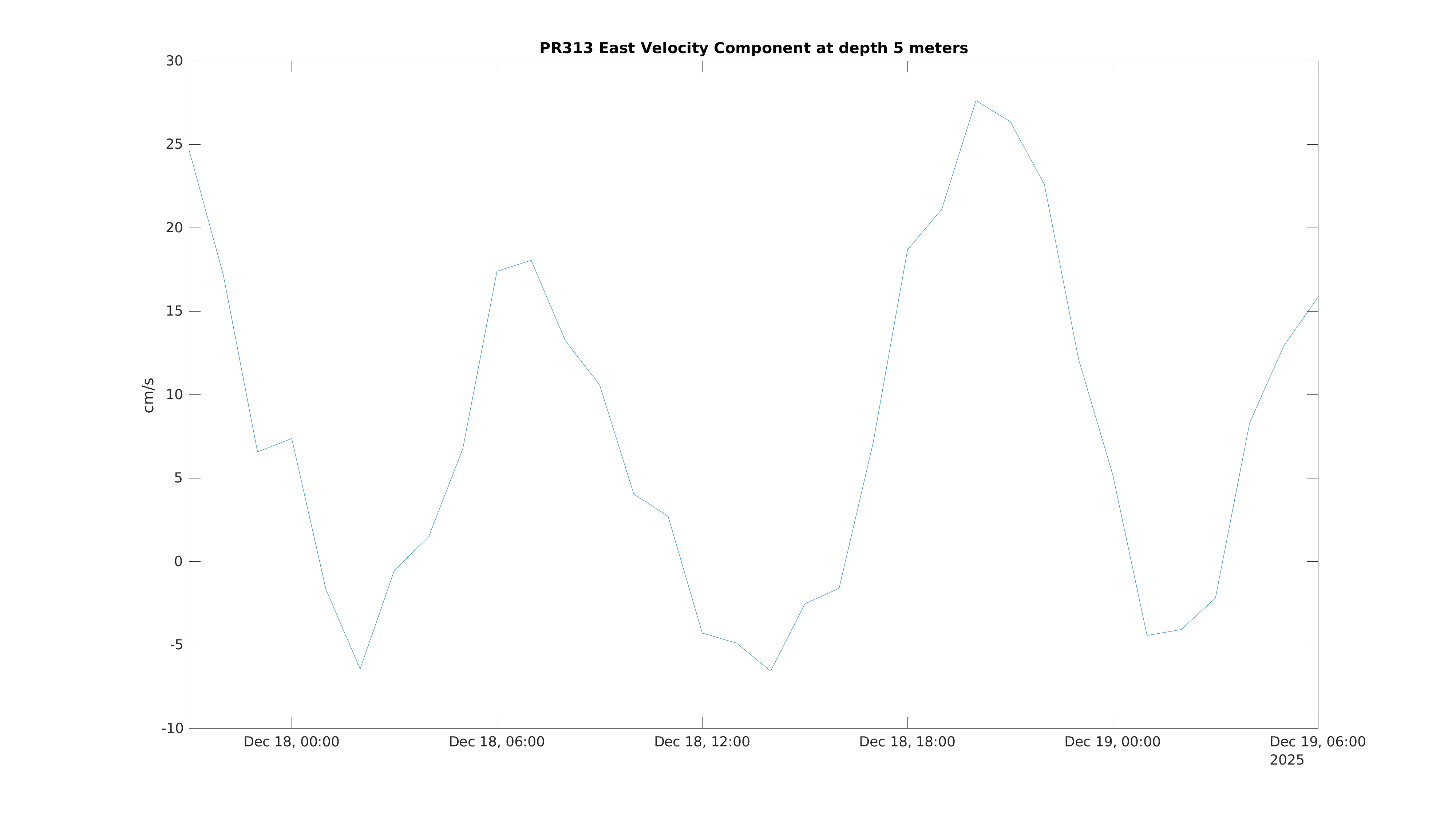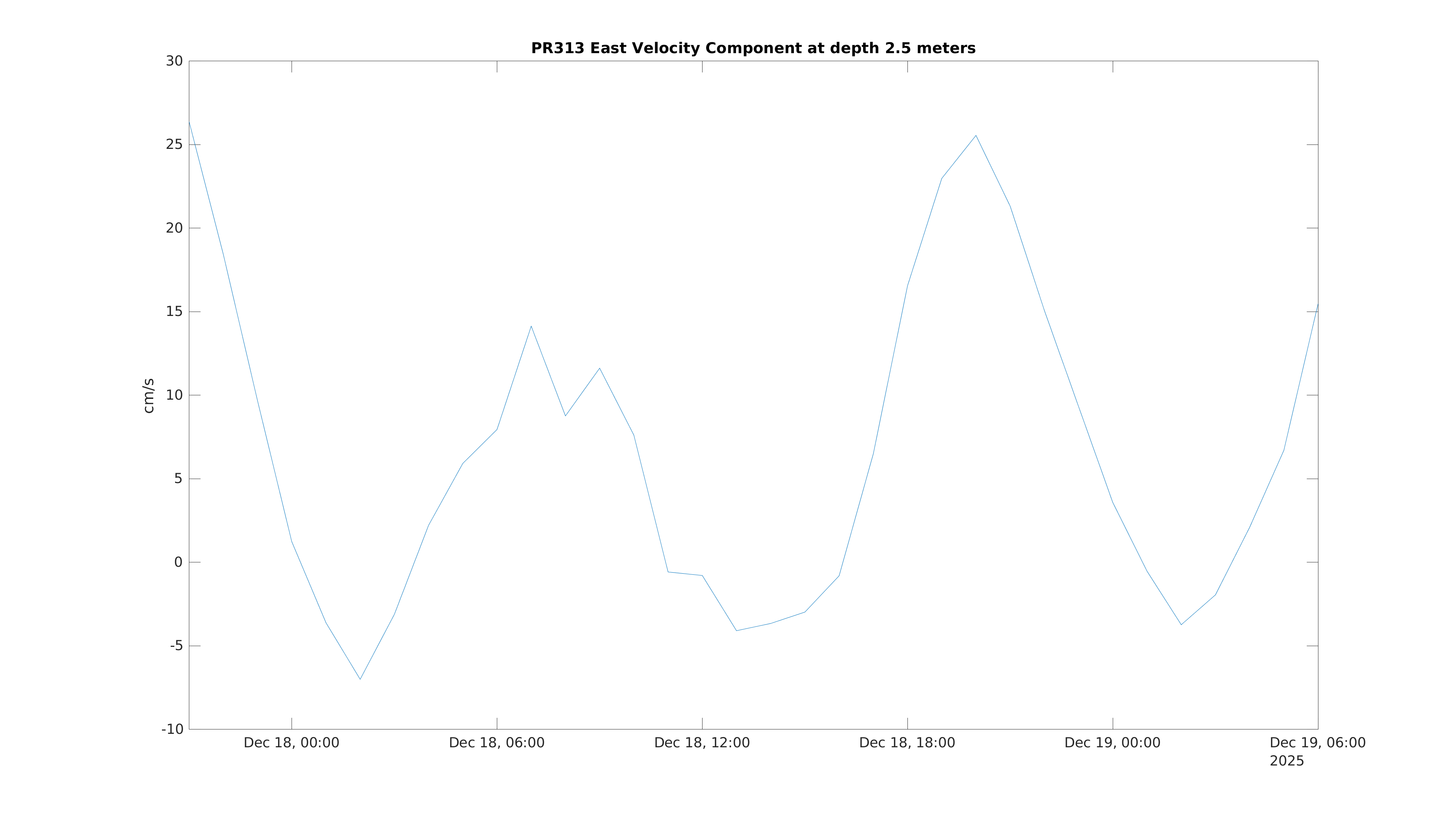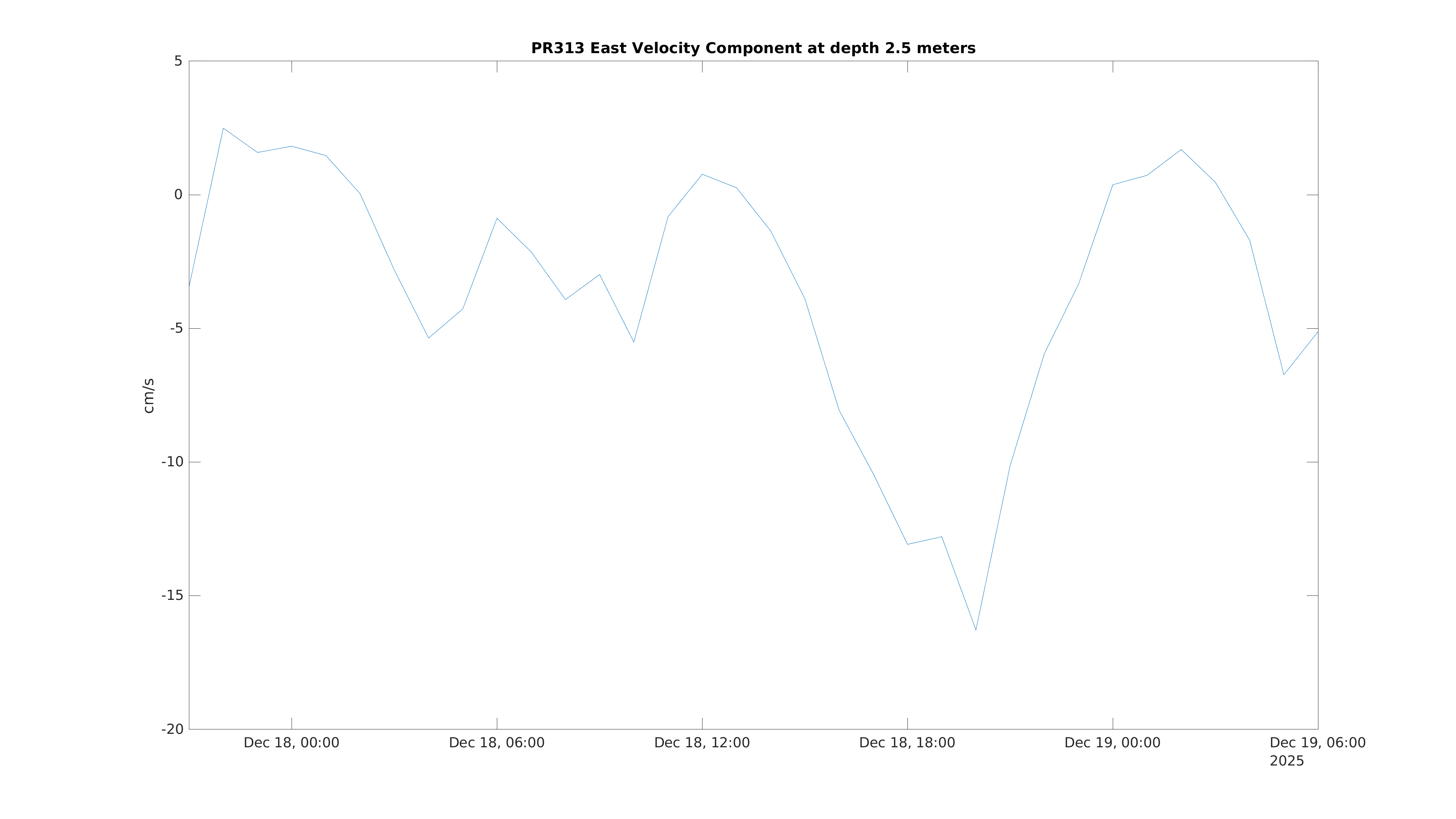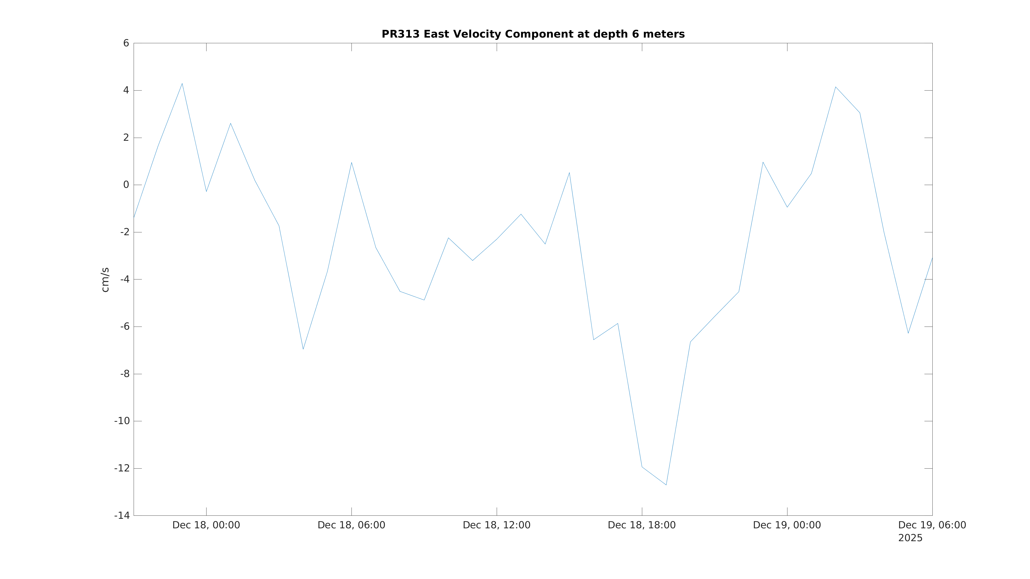 | North Current Velocity (6m) | 12.7 cm/s (0.25 kts) | Dec 19 7:00 AM |
