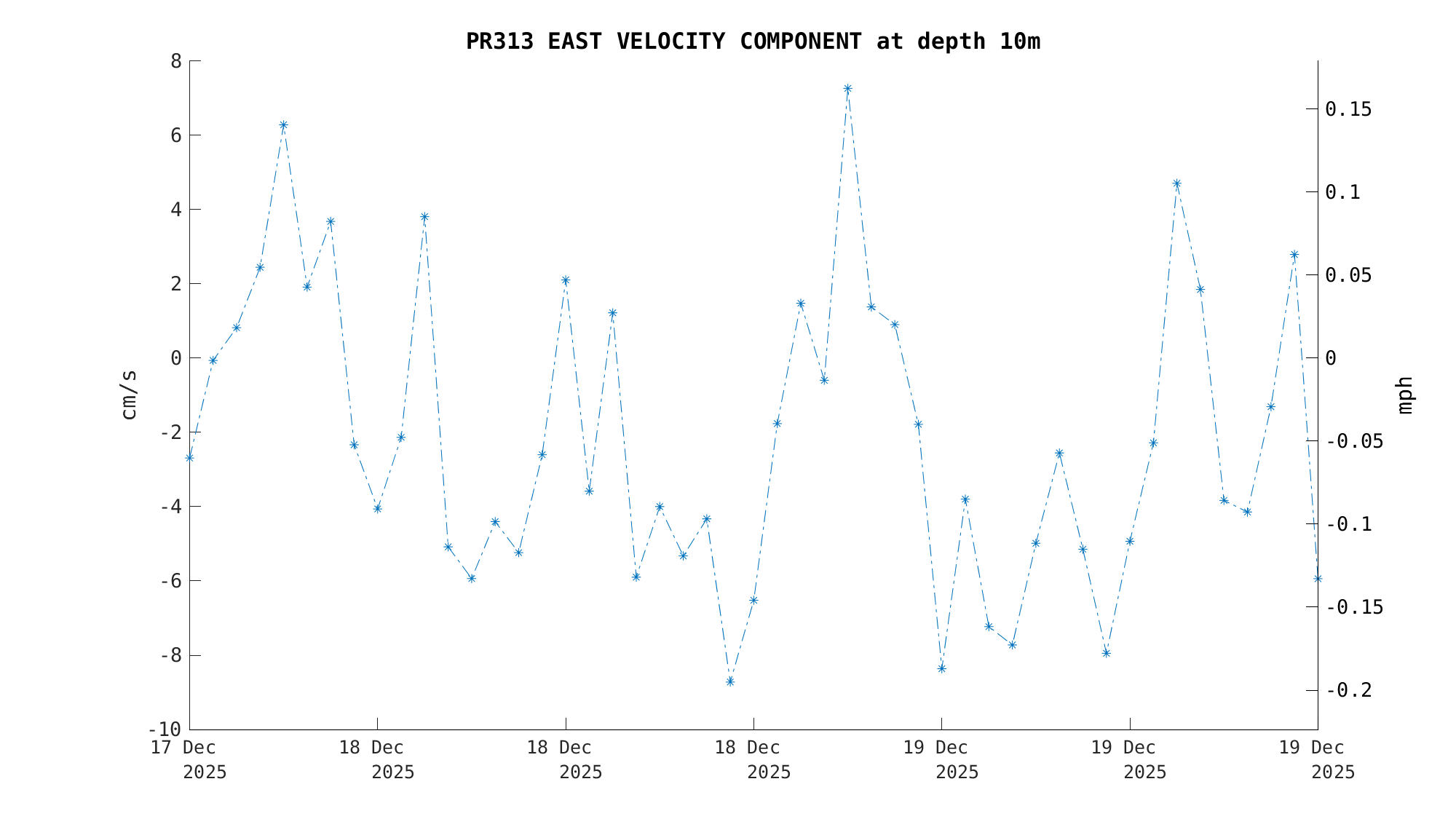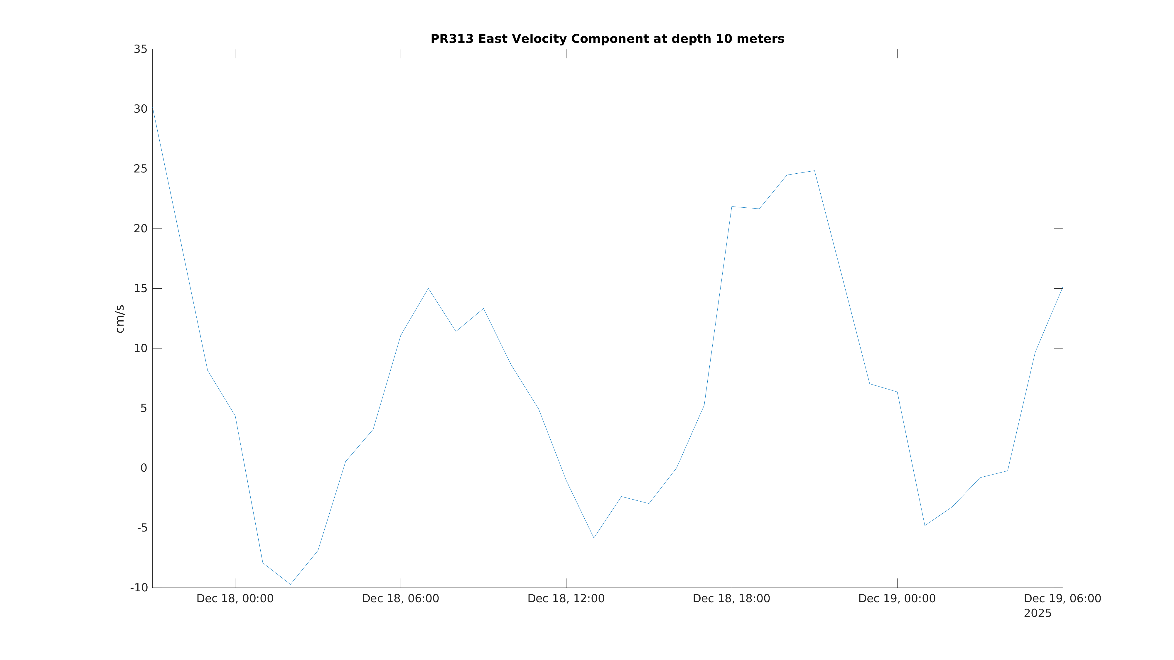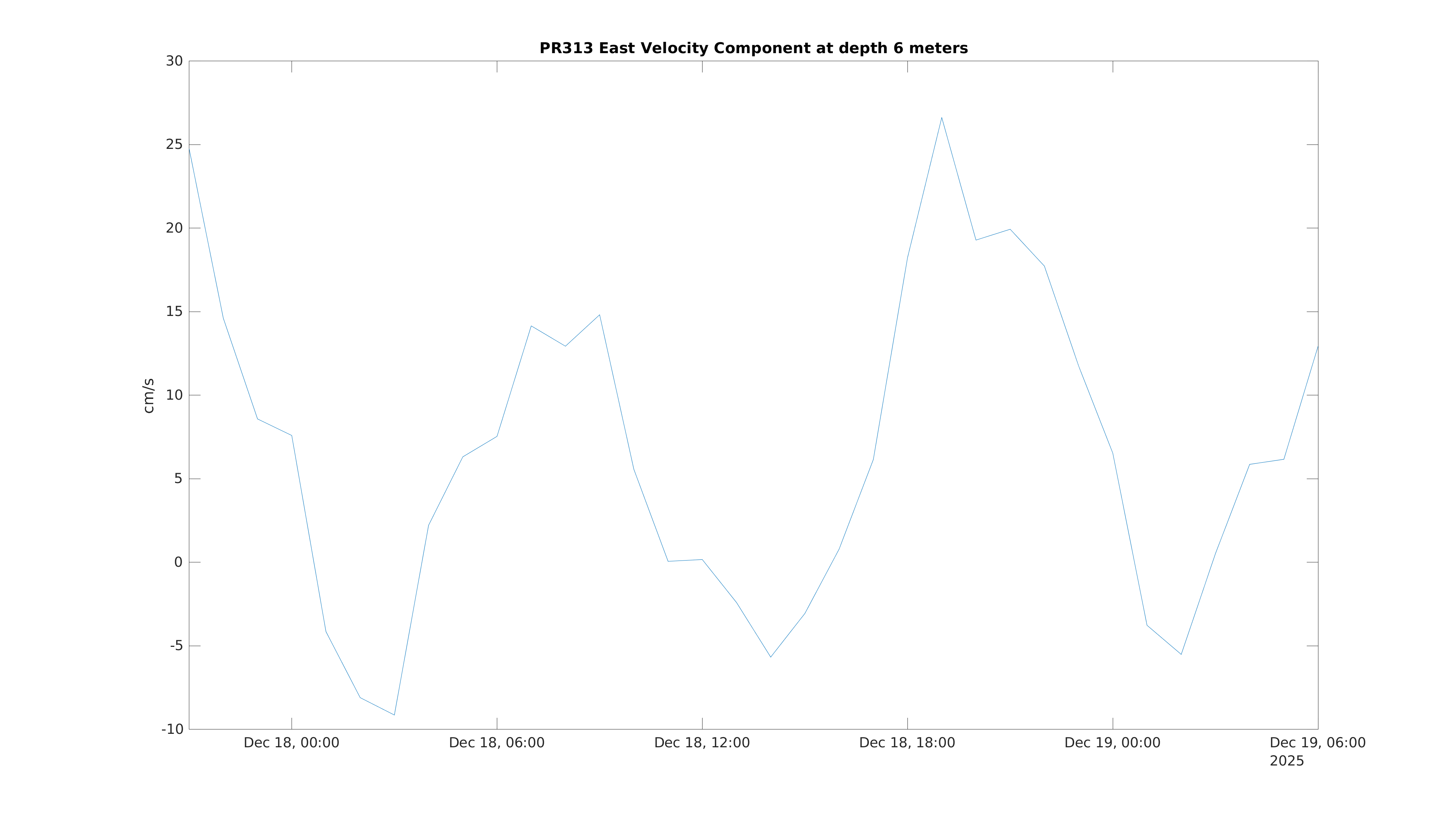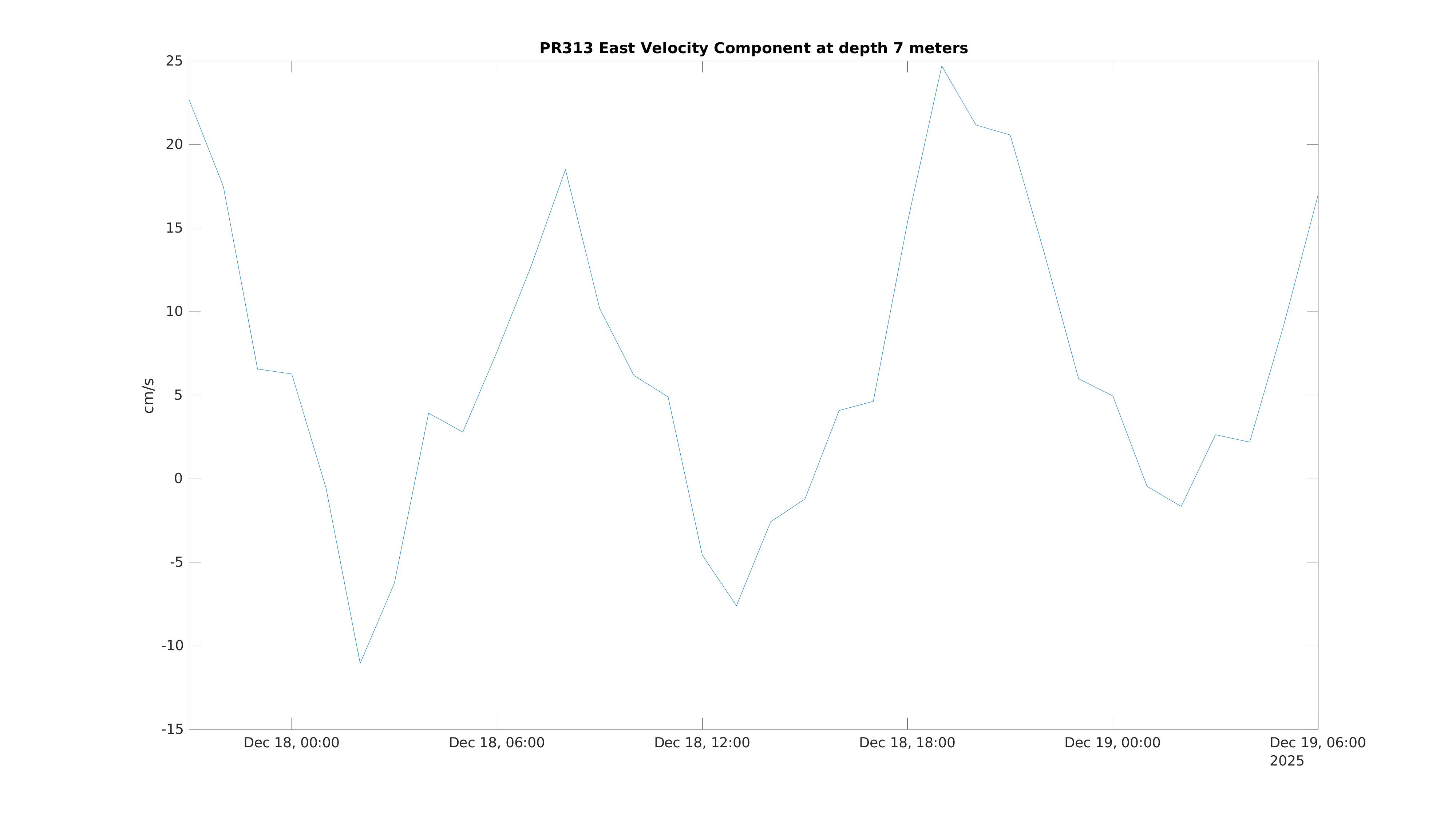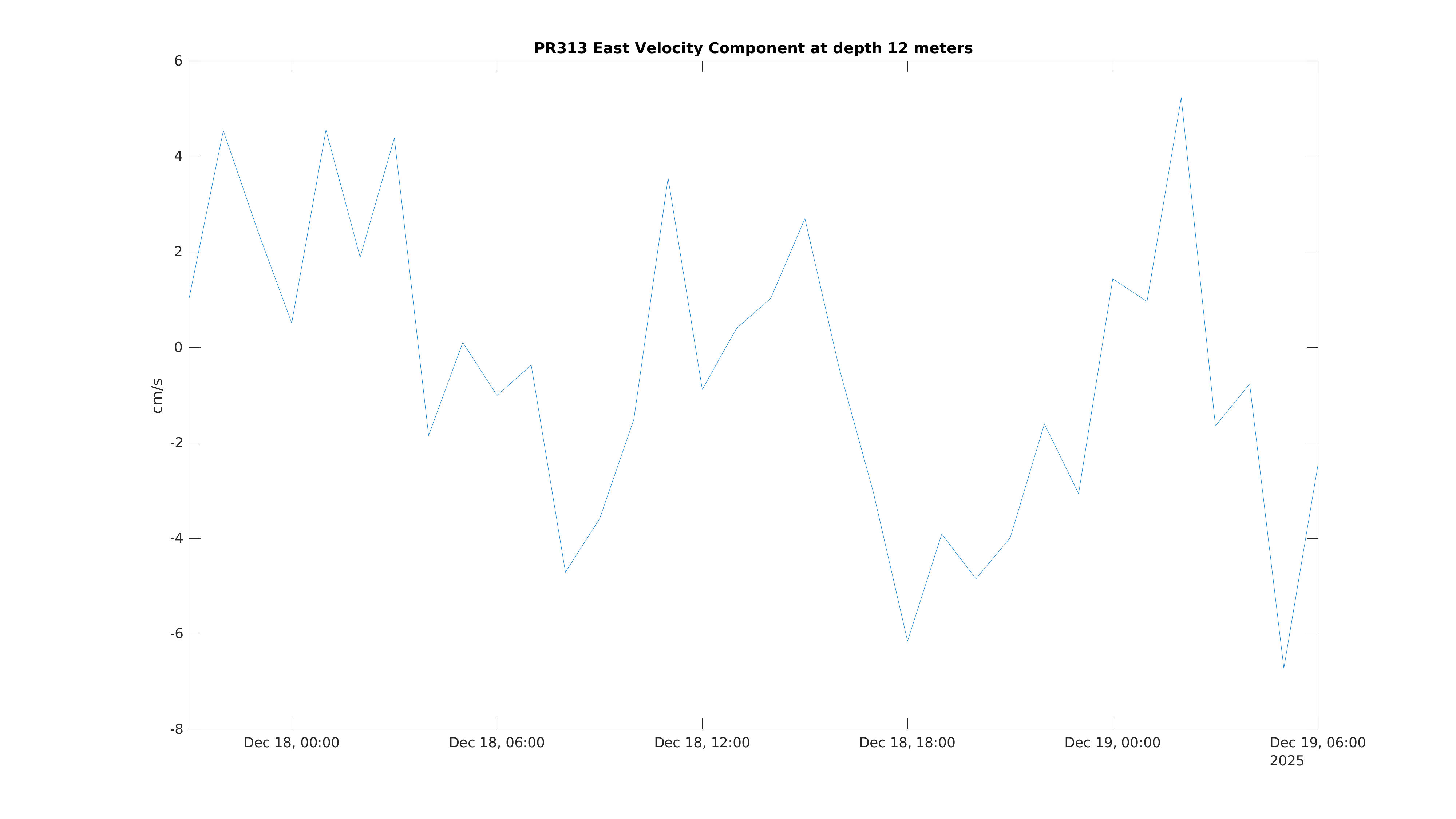 | North Current Velocity (6m) | 12.7 cm/s (0.25 kts) | Dec 19 7:00 AM |