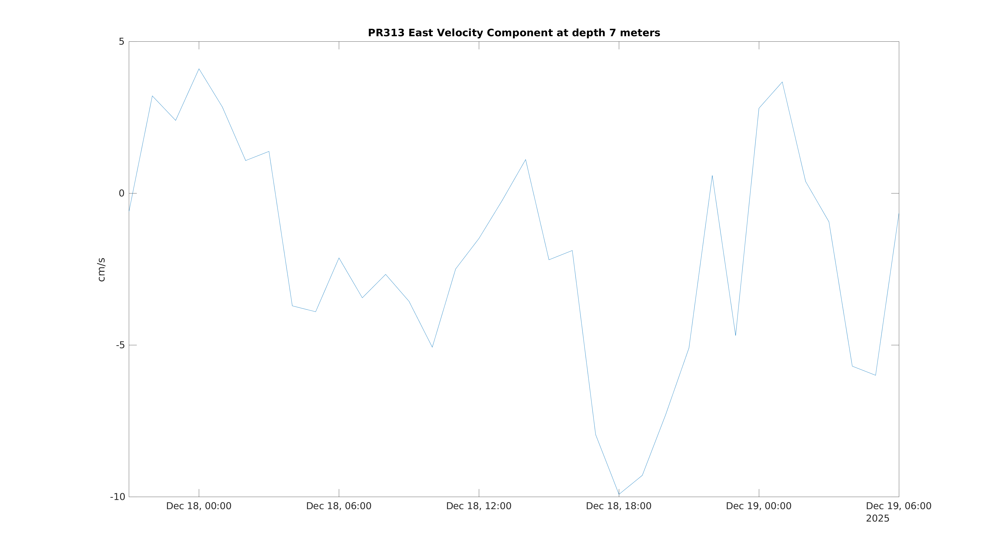 | East Current Velocity (7m) | -1.9 cm/s (-0.04 kts) | Dec 19 7:00 AM |