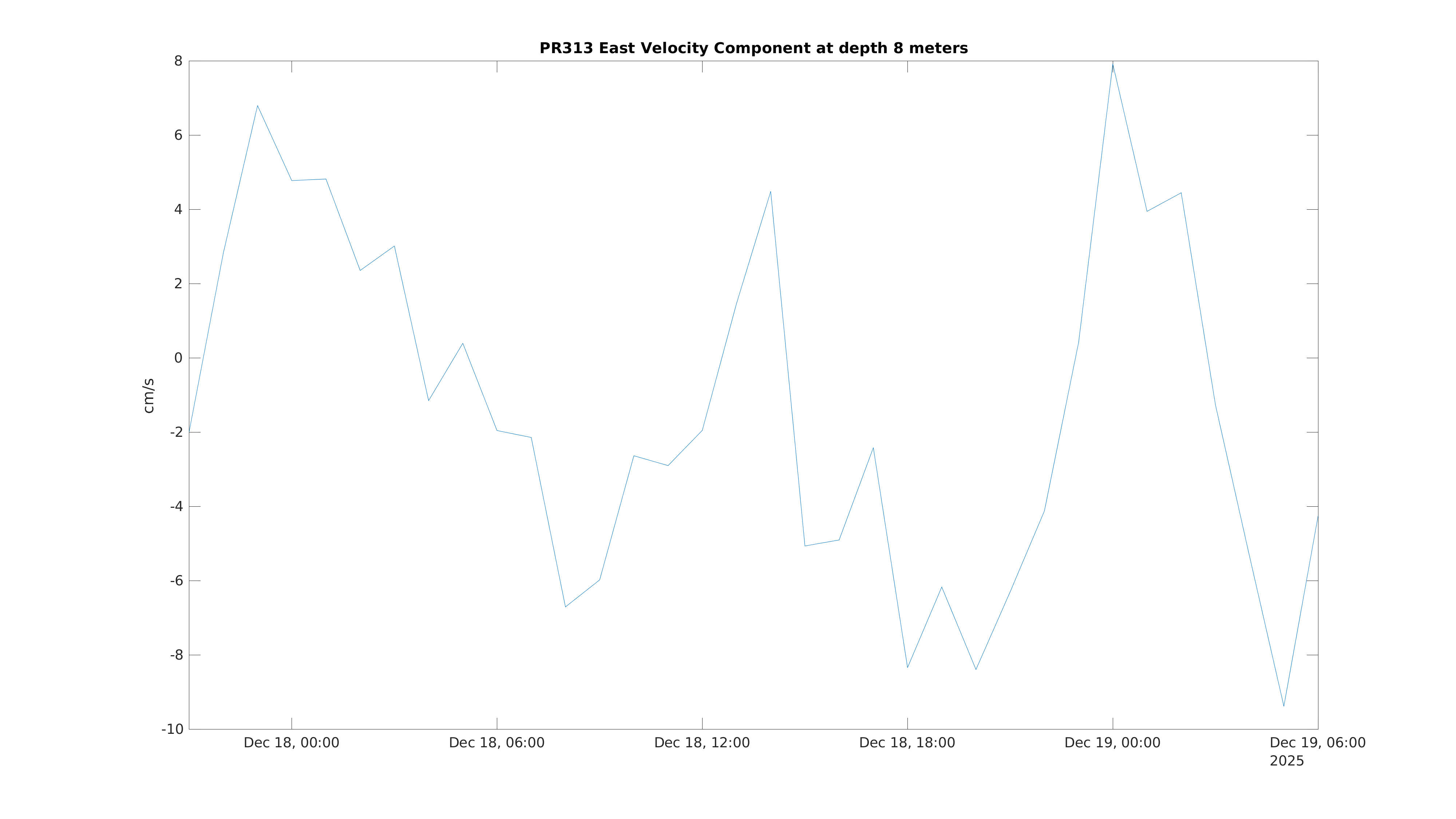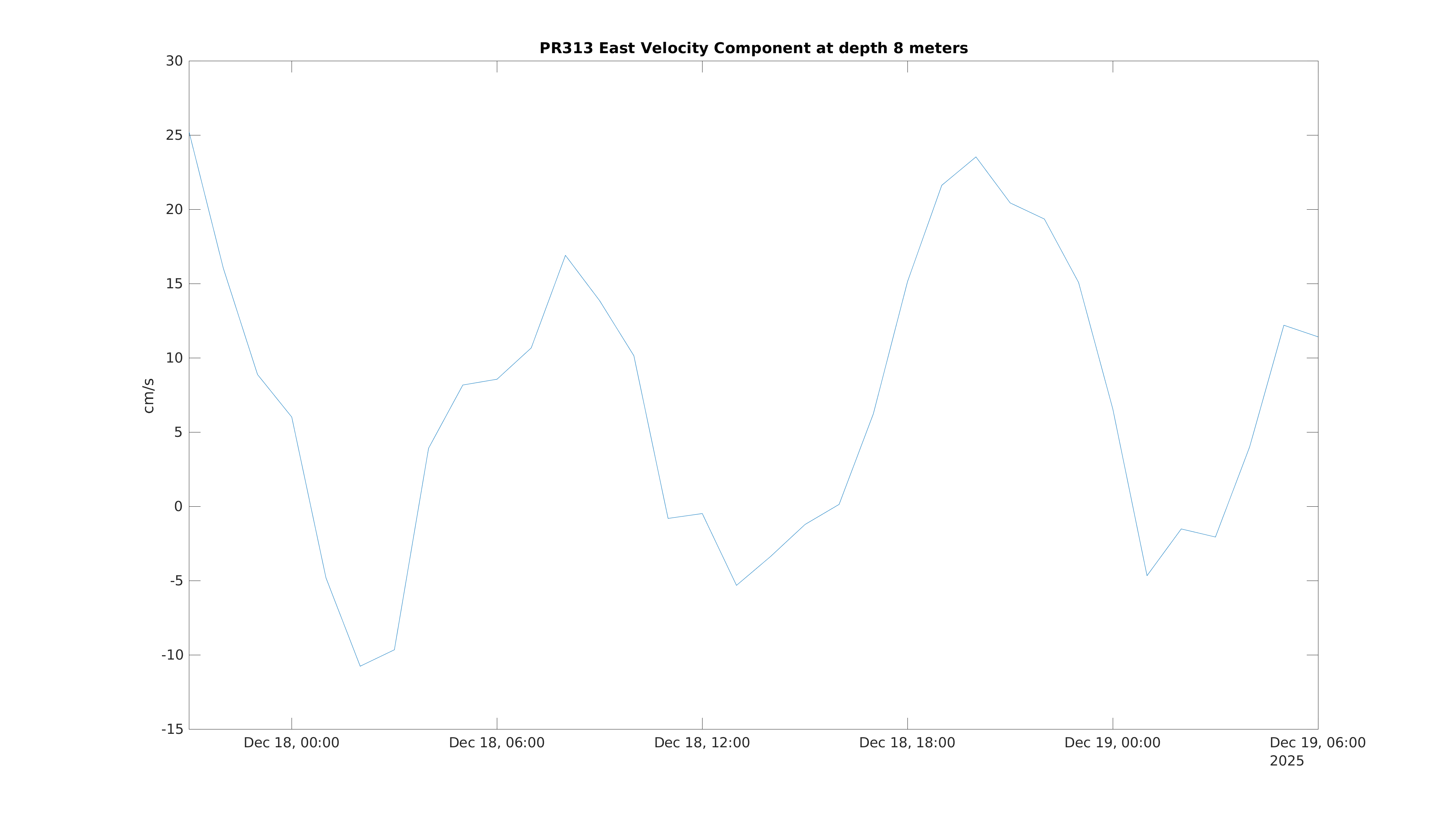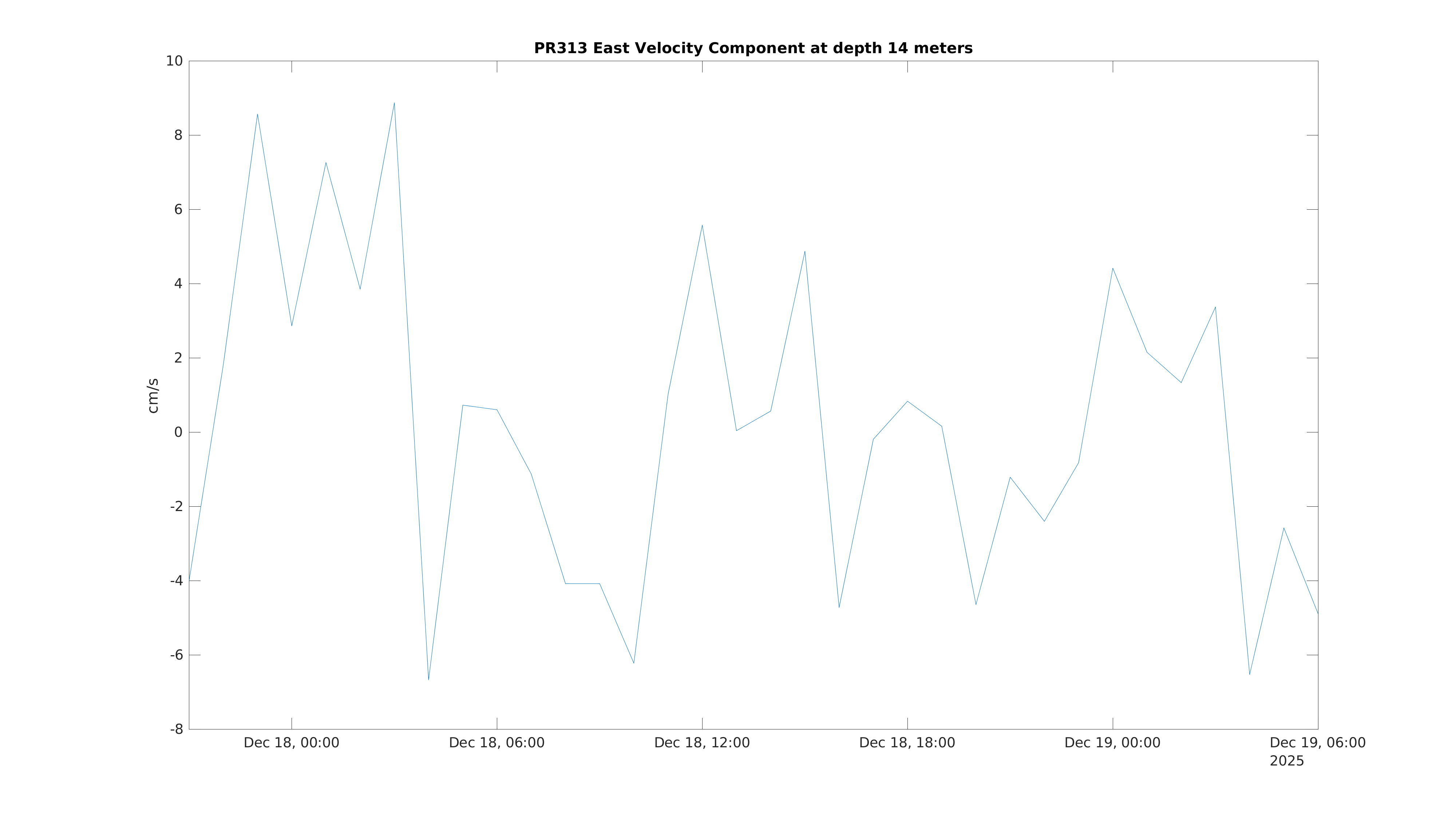 | North Current Velocity (8m) | 14.2 cm/s (0.28 kts) | Dec 19 7:00 AM |