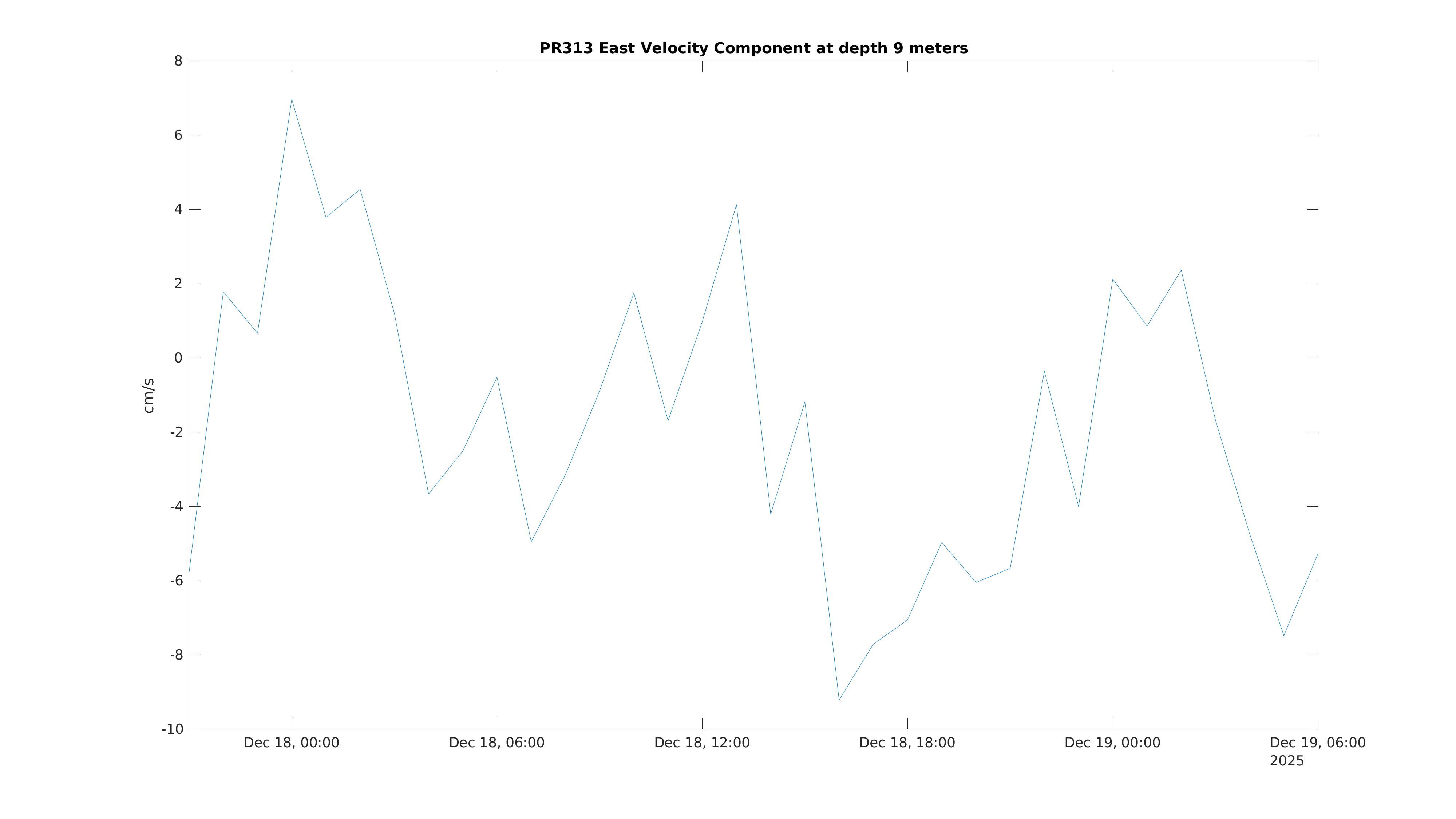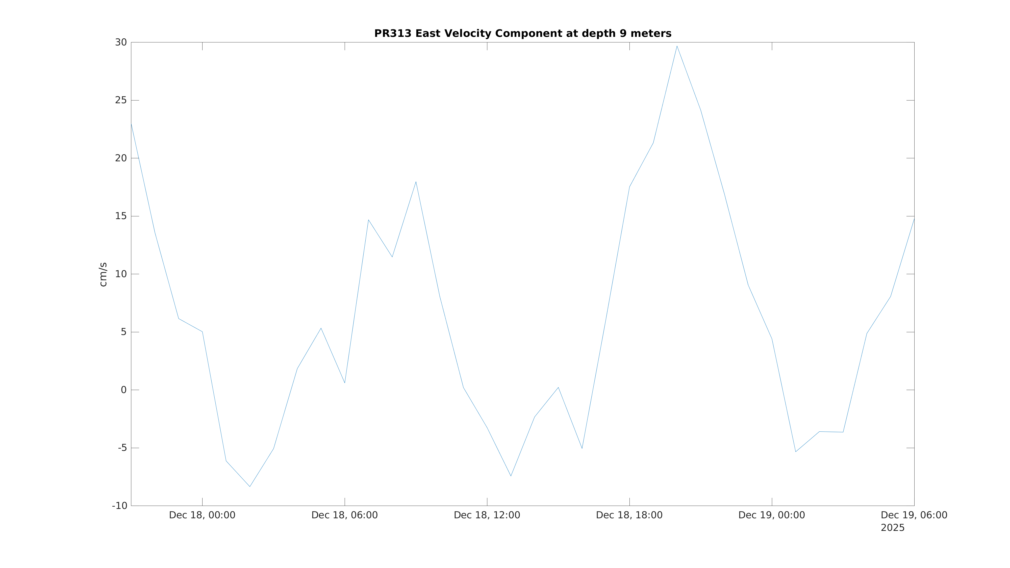 | East Current Velocity (9m) | -8.1 cm/s (-0.16 kts) | Dec 19 7:00 AM |