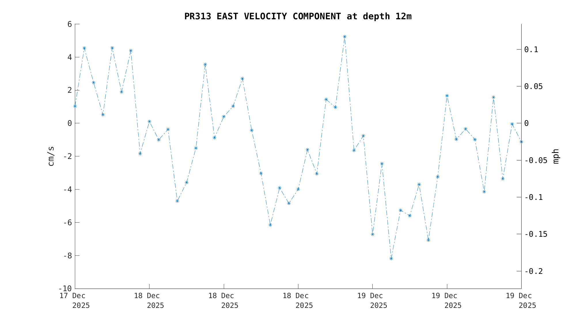 | East Current Velocity (6m) | -4.2 cm/s (-0.08 kts) | Dec 19 7:00 AM |