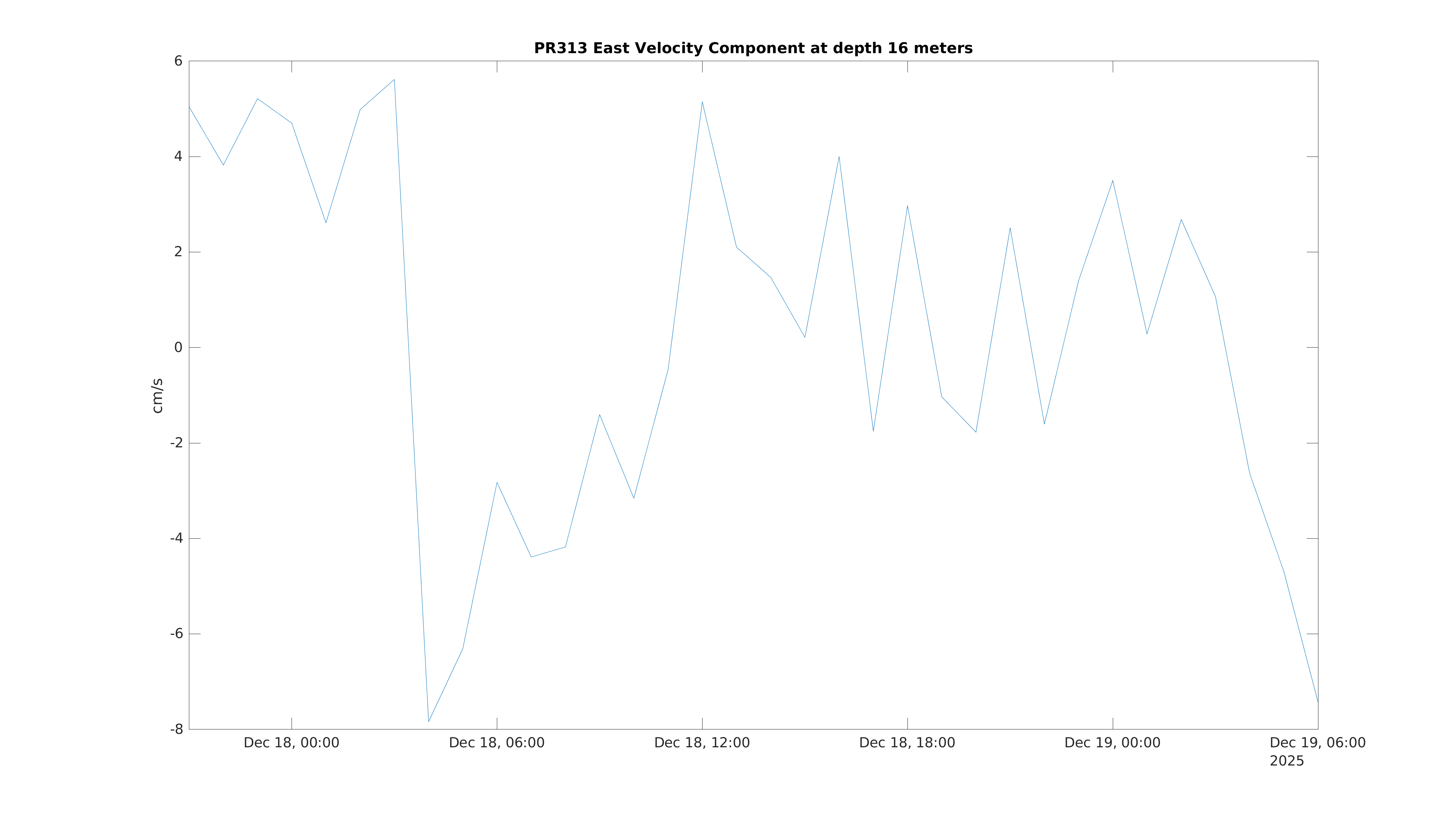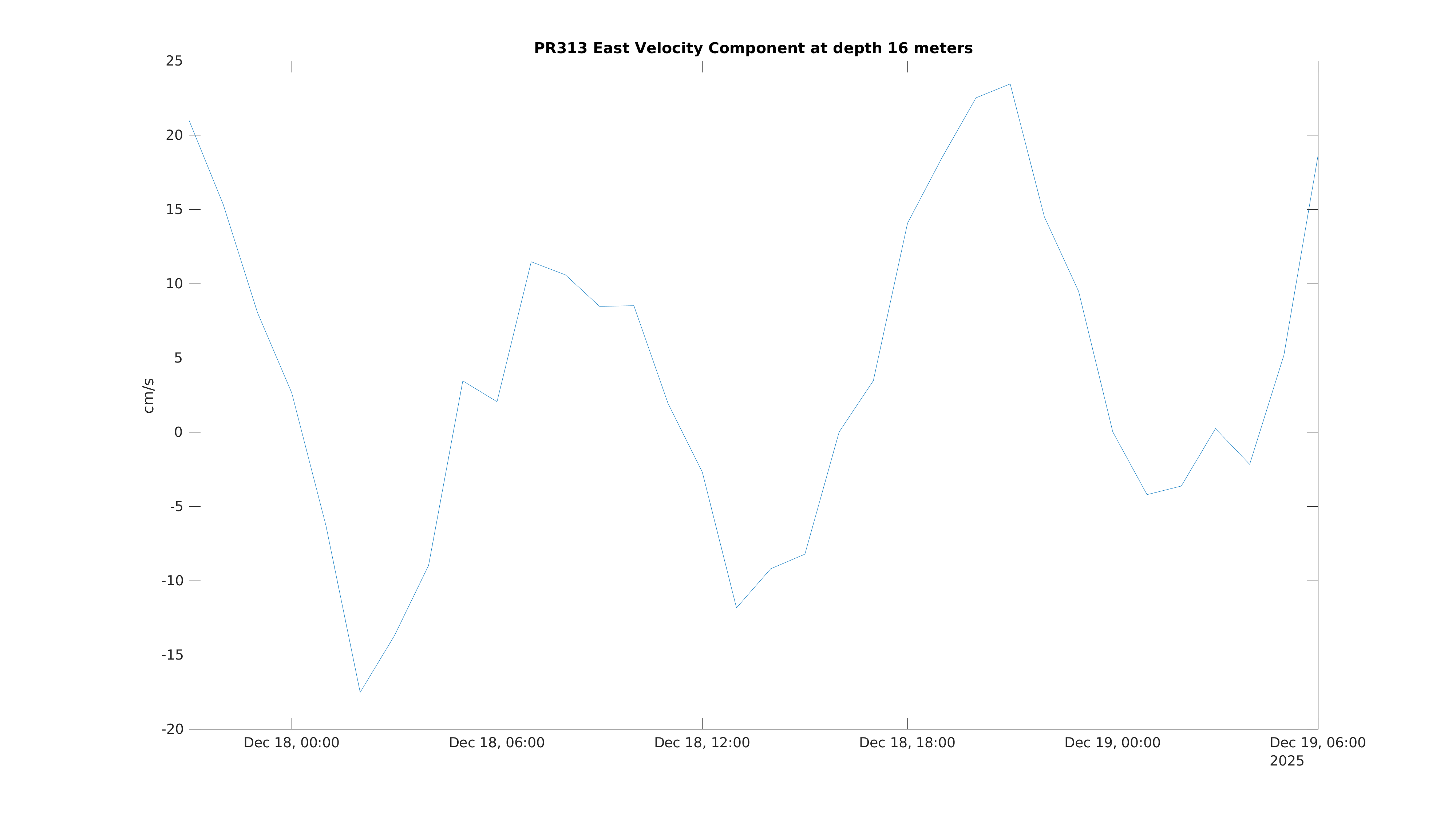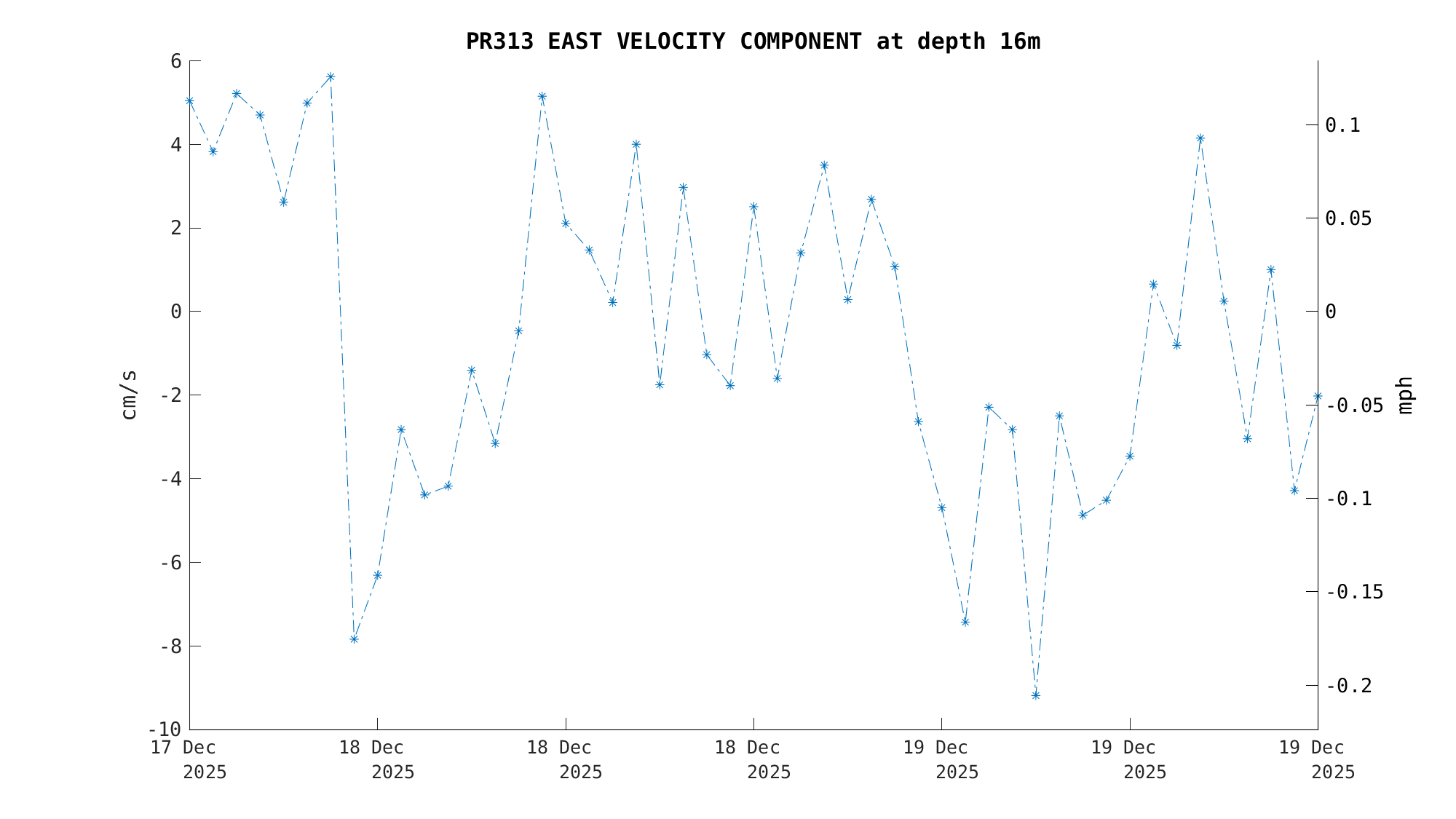| East Current Velocity (16m) | -4.9 cm/s (-0.09 kts) | Dec 19 7:00 AM |