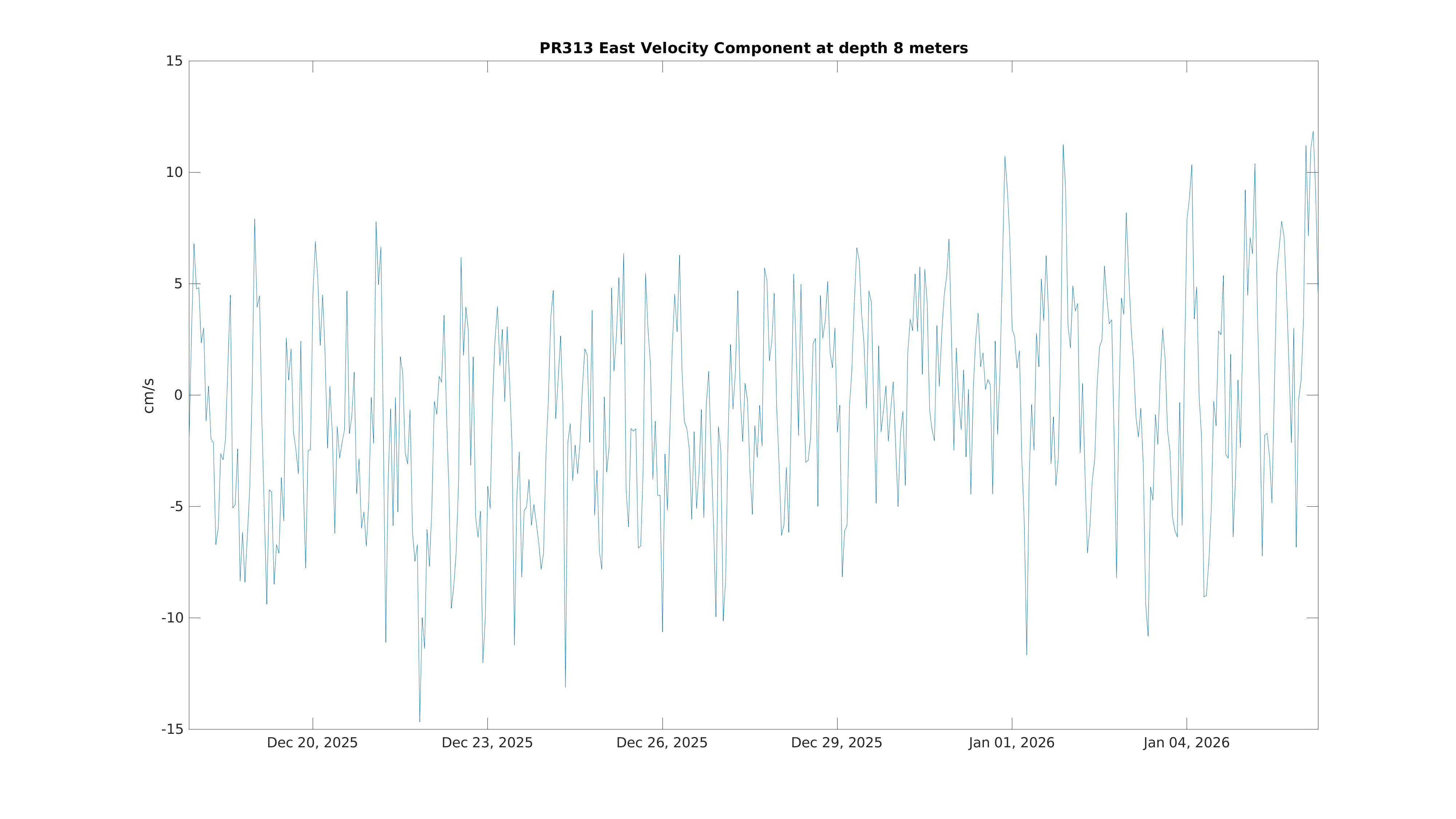 | North Current Velocity (15m) | 15.3 cm/s (0.30 kts) | Jan 08 8:00 PM |