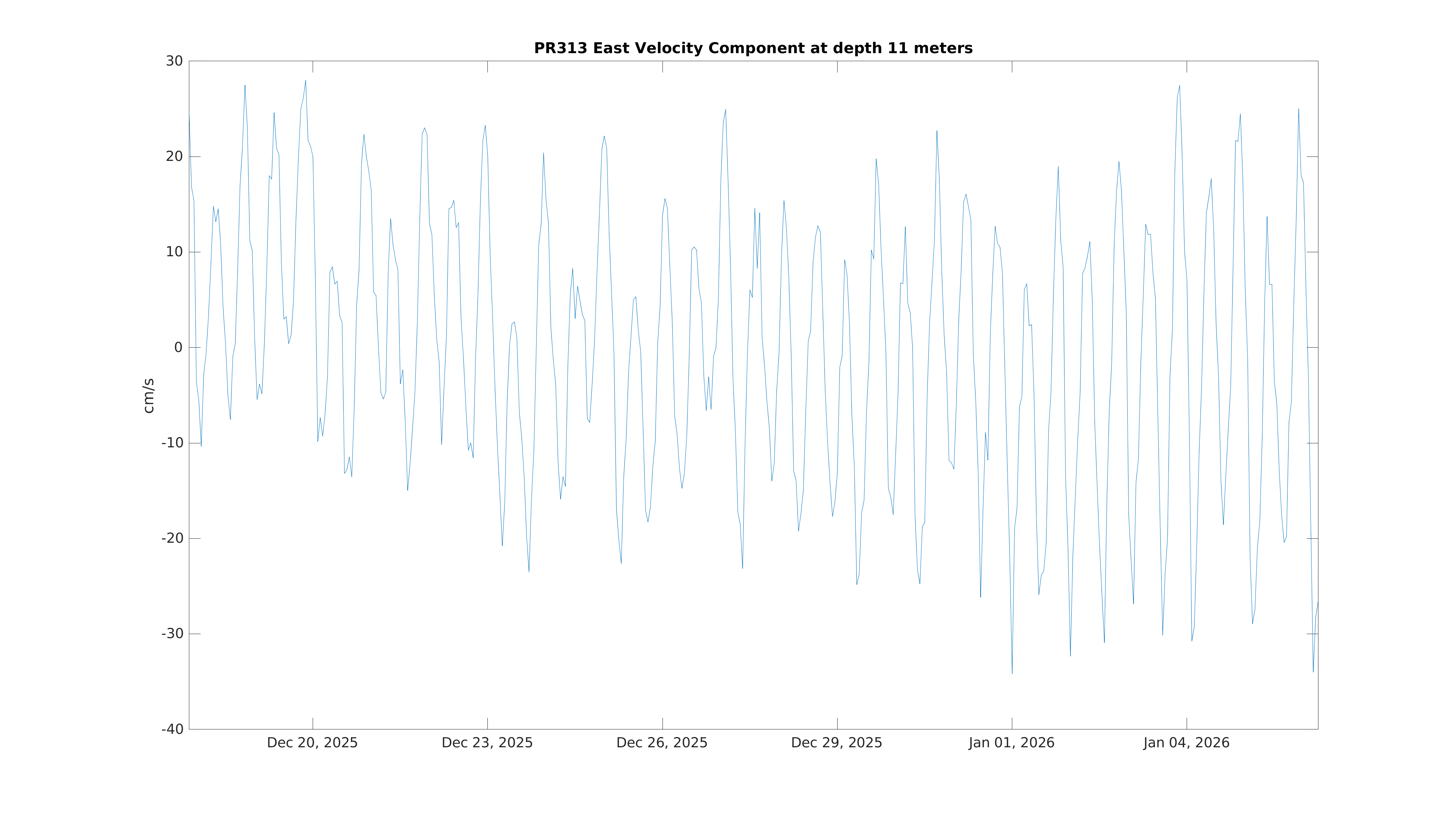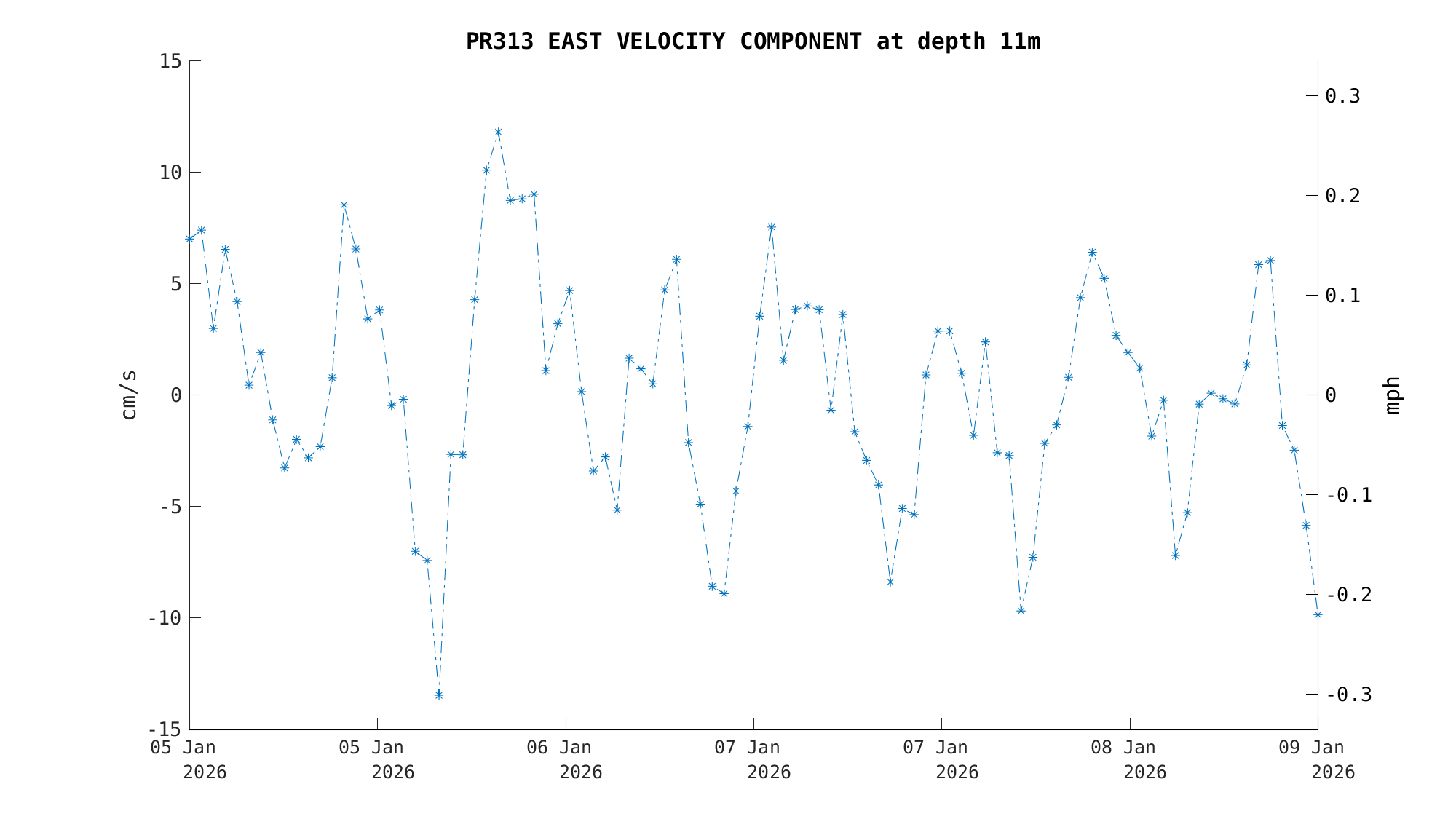| North Current Velocity (11m) | 12.6 cm/s (0.25 kts) | Jan 08 8:00 PM |