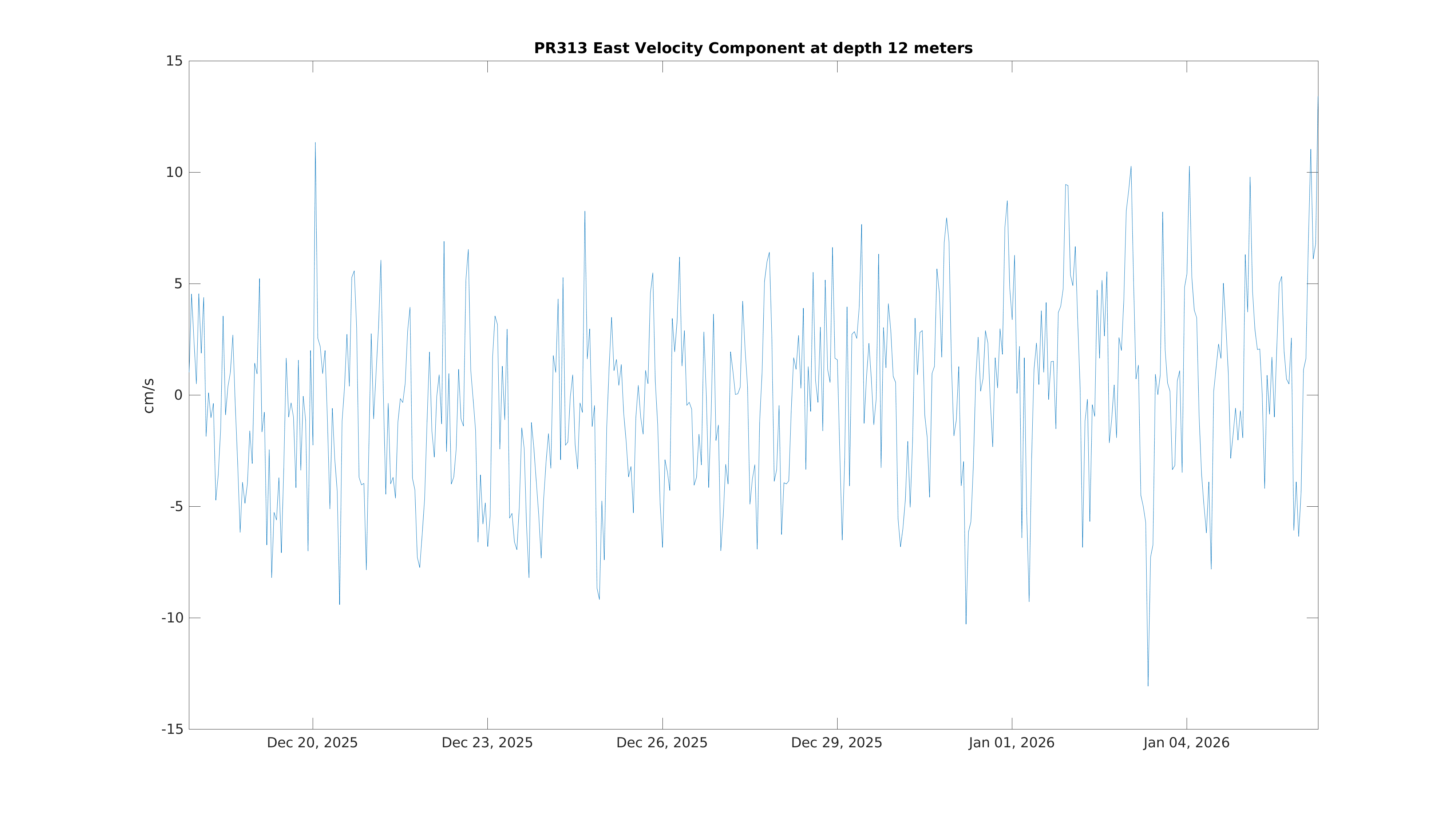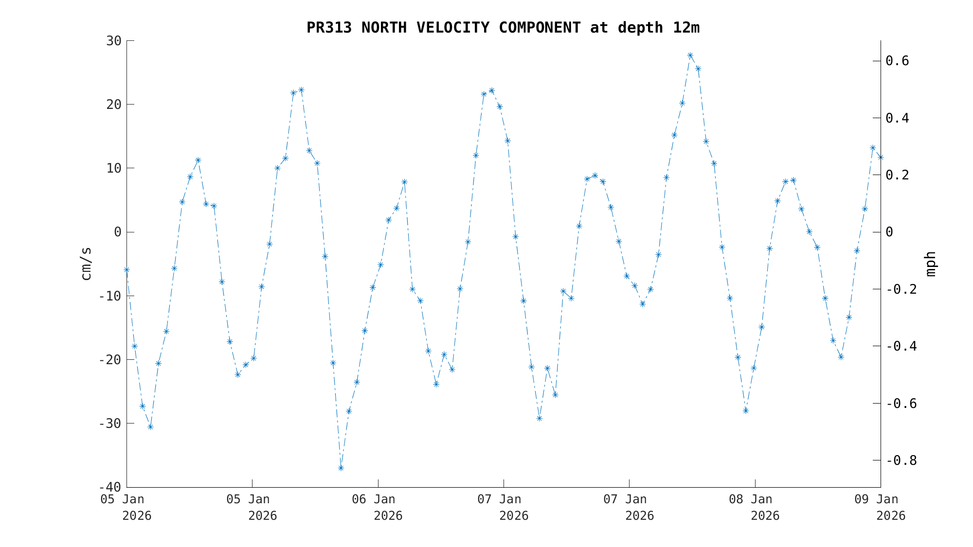 | North Current Velocity (12m) | 11.7 cm/s (0.23 kts) | Jan 08 8:00 PM |