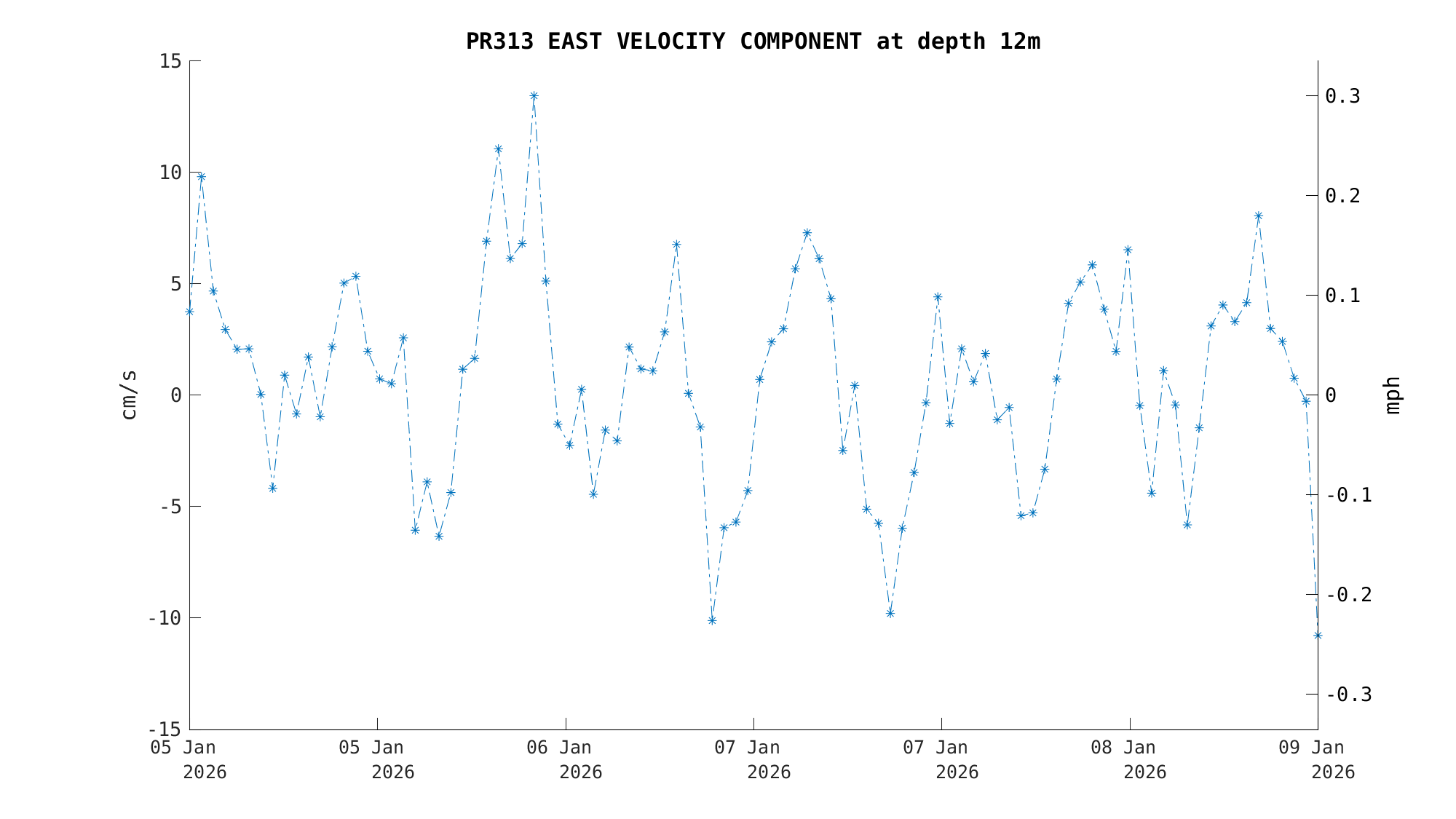 | East Current Velocity (4m) | -10.3 cm/s (-0.20 kts) | Jan 08 8:00 PM |