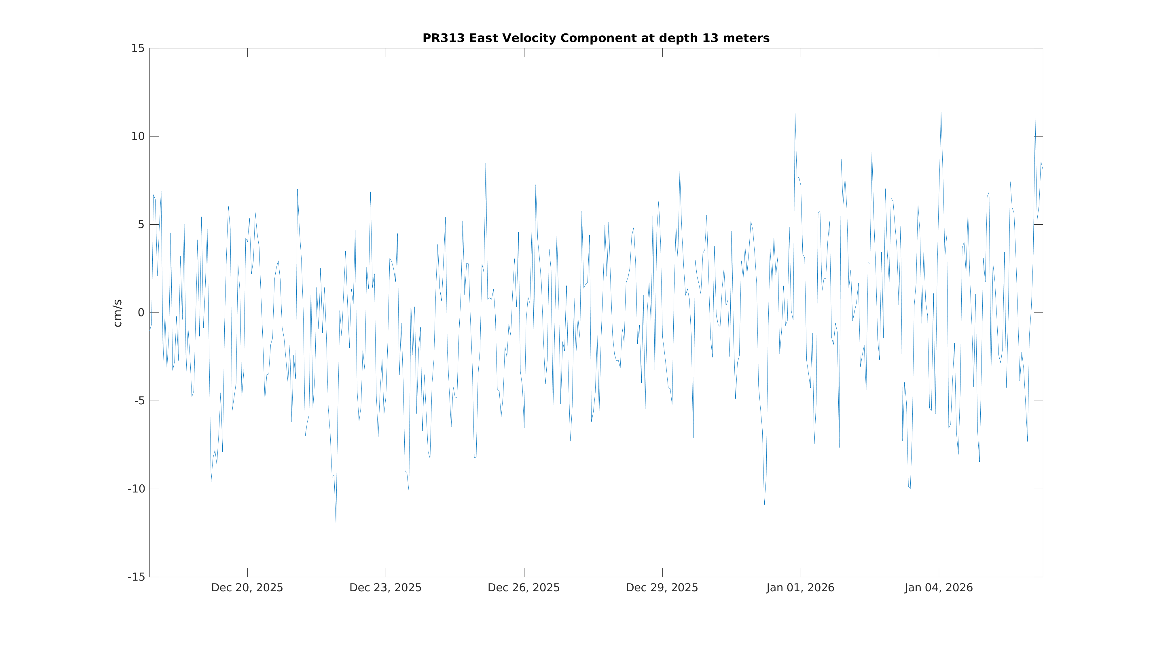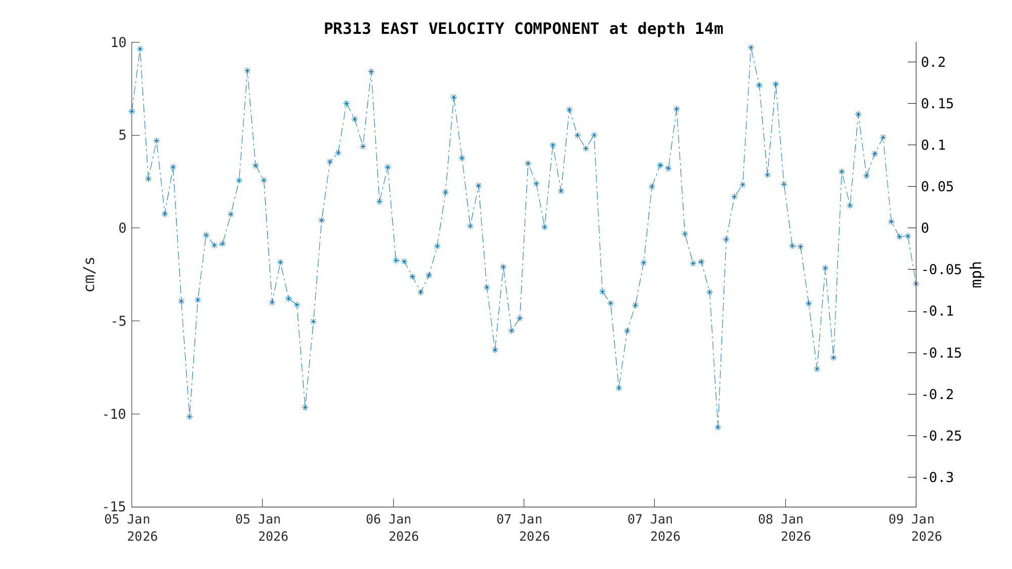 | North Current Velocity (14m) | 18.2 cm/s (0.35 kts) | Jan 08 8:00 PM |