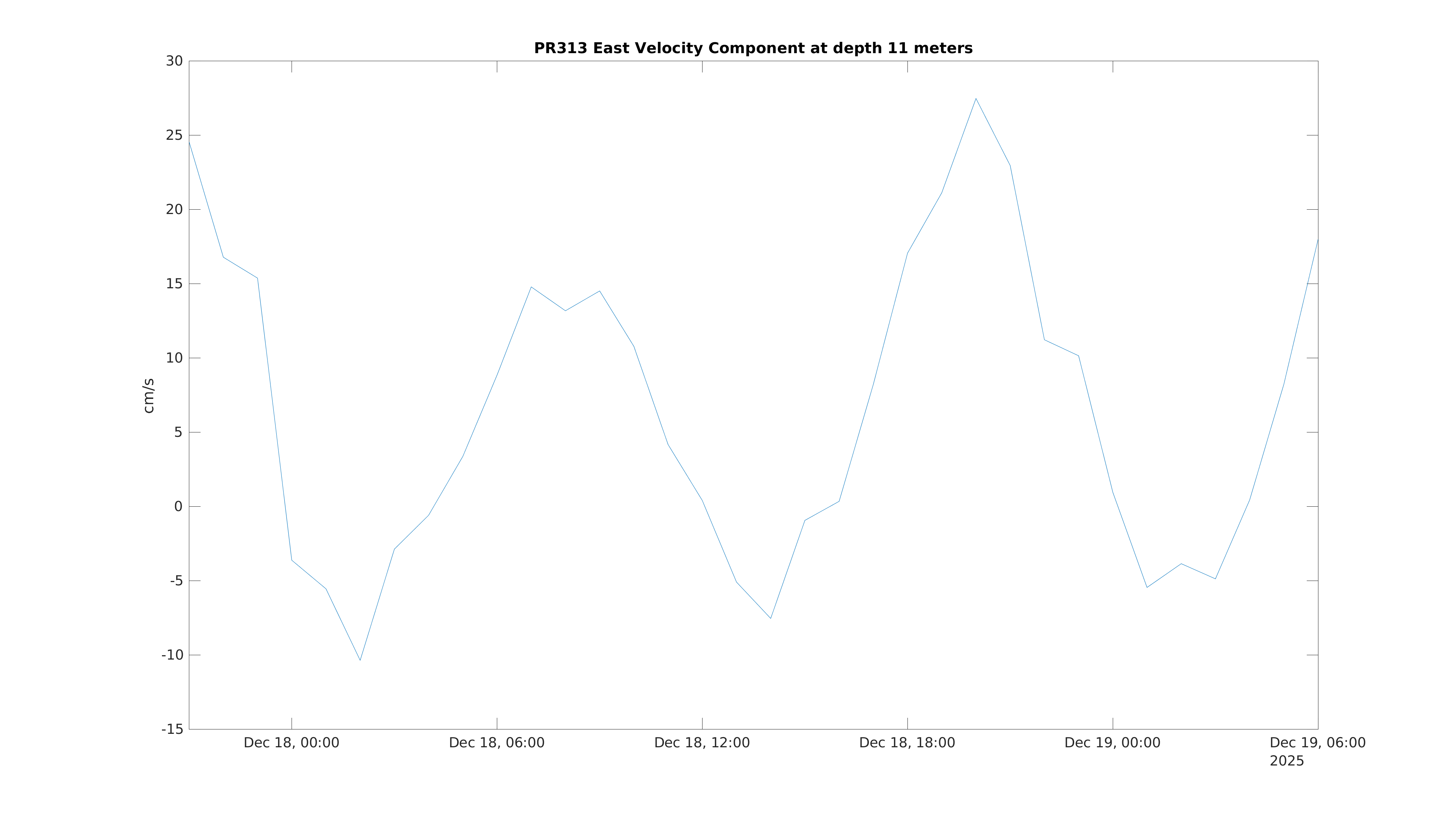| North Current Velocity (11m) | 8.9 cm/s (0.17 kts) | Dec 19 7:00 AM |