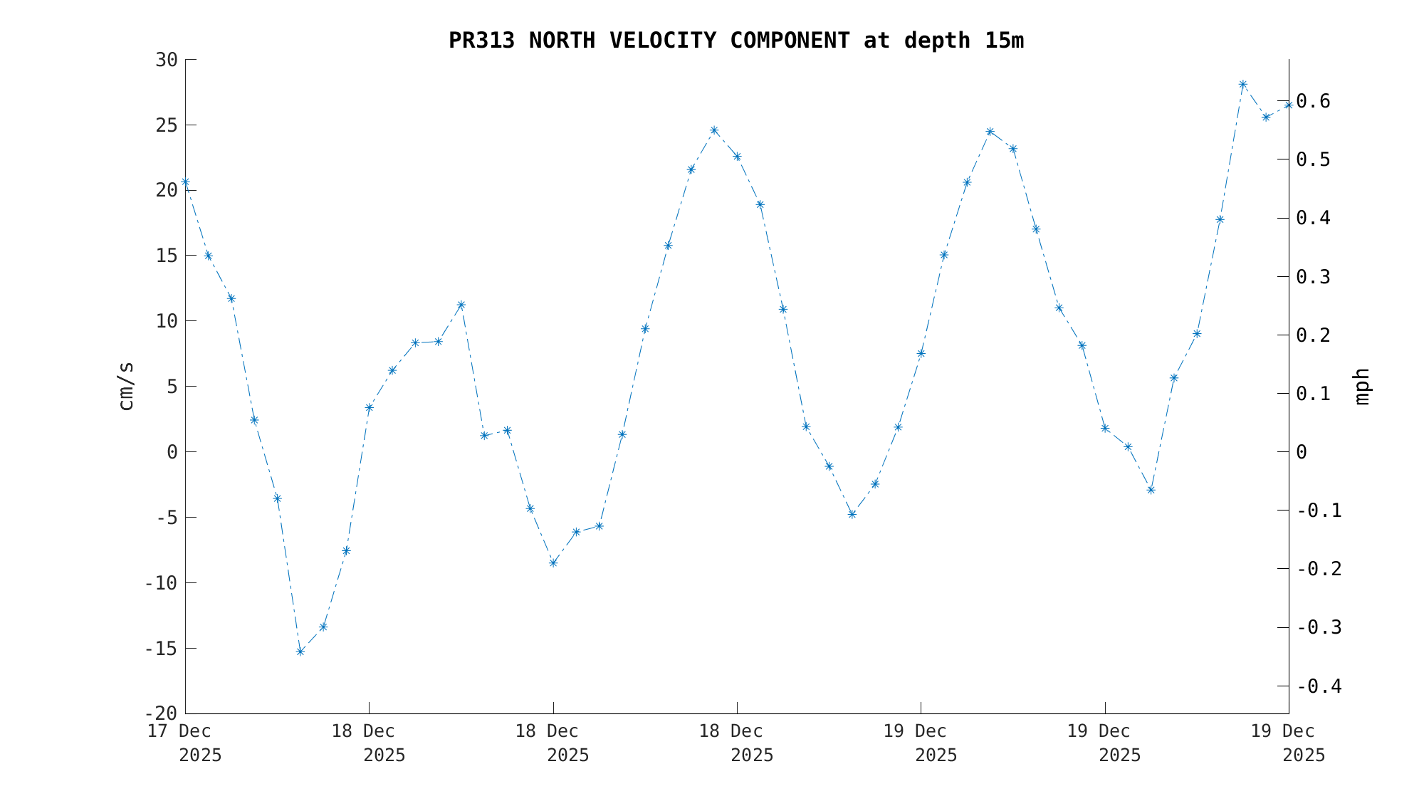 | North Current Velocity (15m) | 11.0 cm/s (0.21 kts) | Dec 19 7:00 AM |