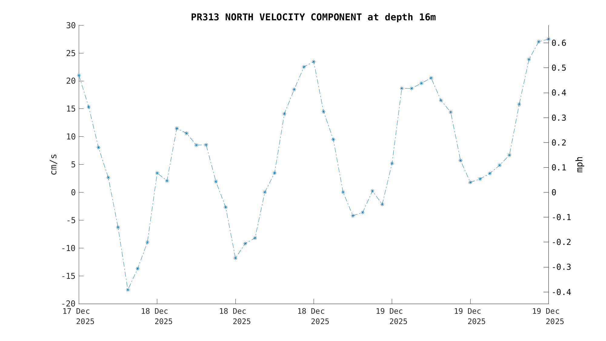 | North Current Velocity (16m) | 14.4 cm/s (0.28 kts) | Dec 19 7:00 AM |