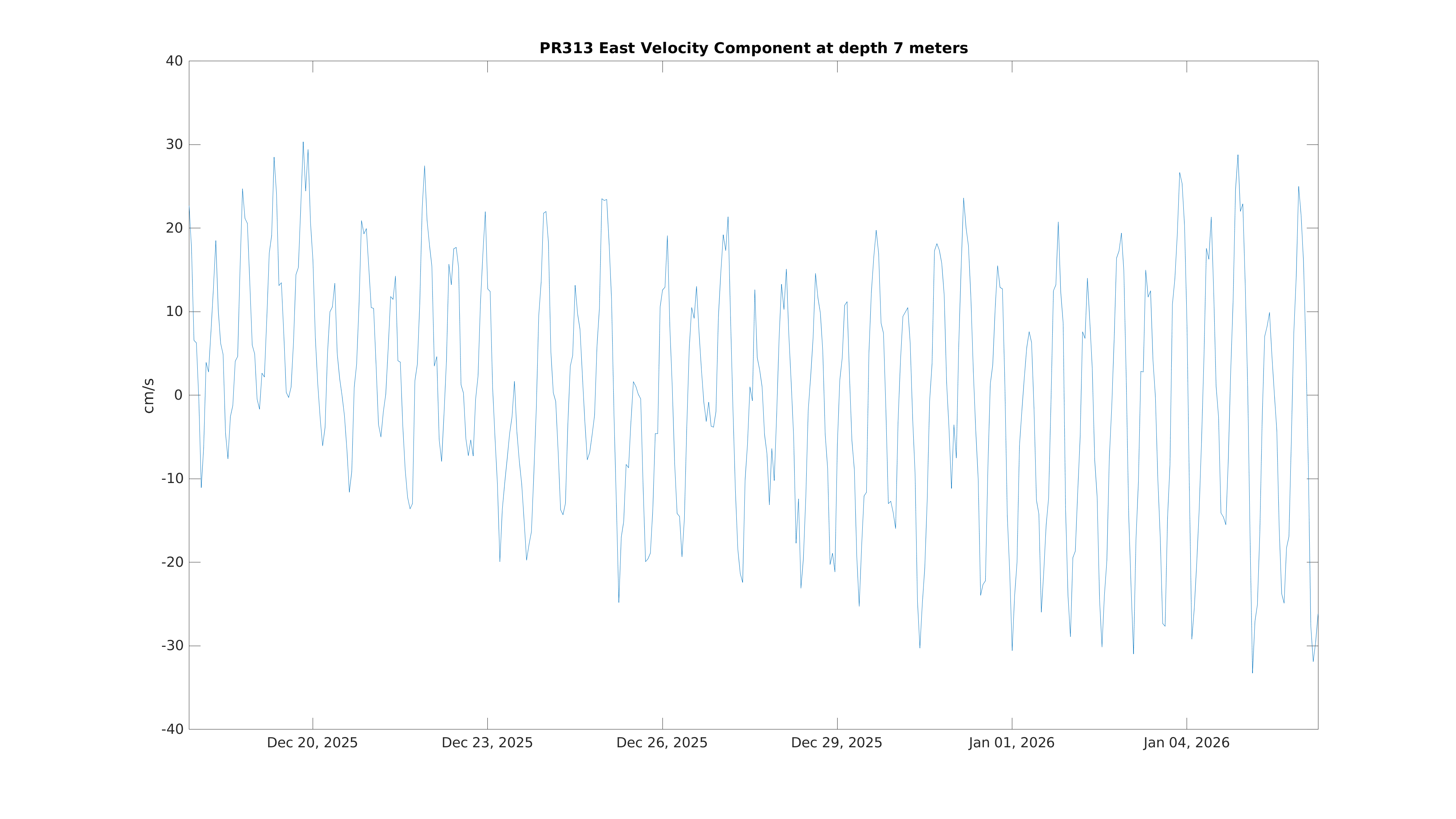 | East Current Velocity (7m) | -11.1 cm/s (-0.22 kts) | Jan 08 8:00 PM |