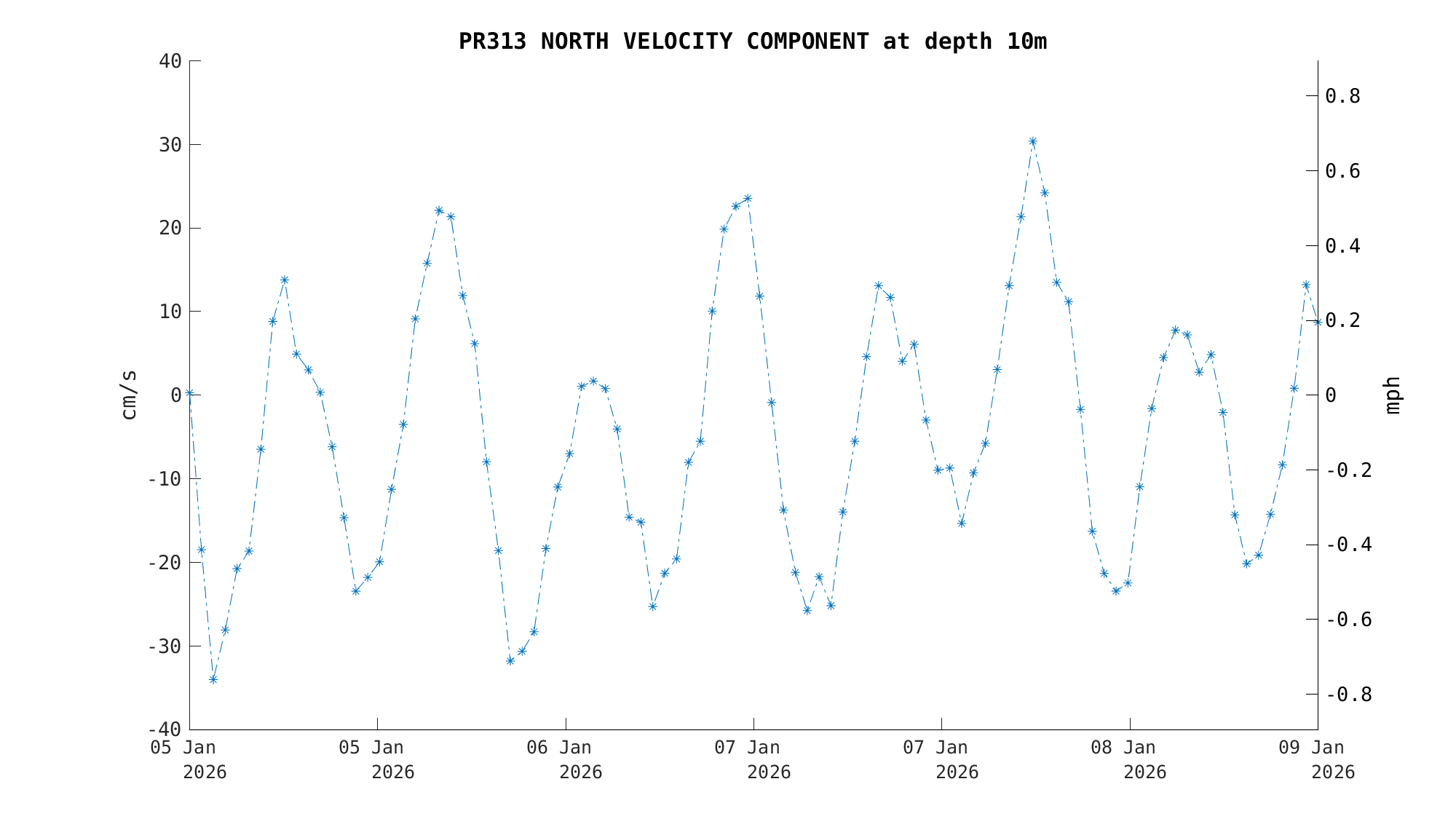 | North Current Velocity (16m) | 17.1 cm/s (0.33 kts) | Jan 08 8:00 PM |