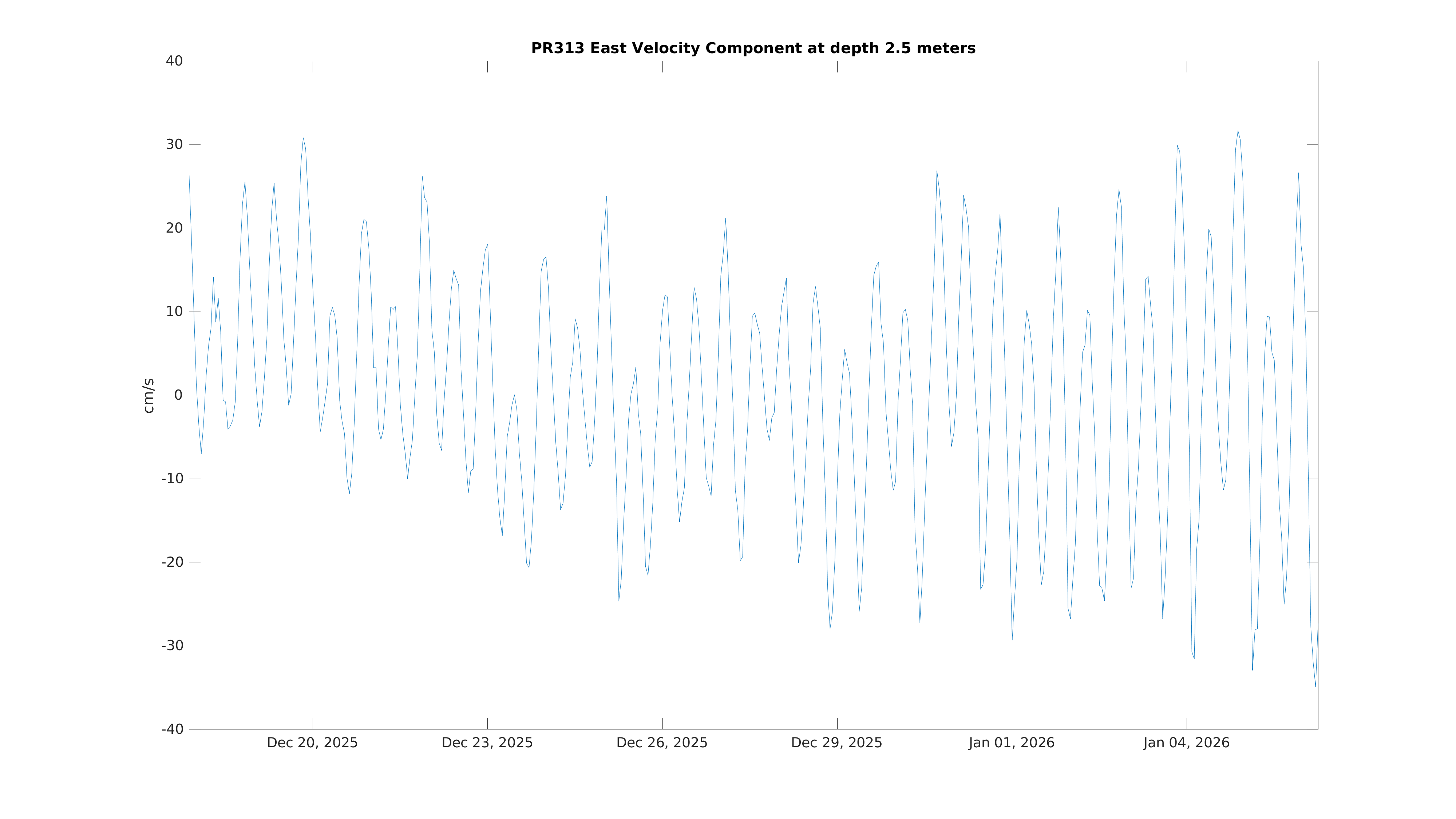 | East Current Velocity (2.5m) | -10.3 cm/s (-0.20 kts) | Jan 08 8:00 PM |