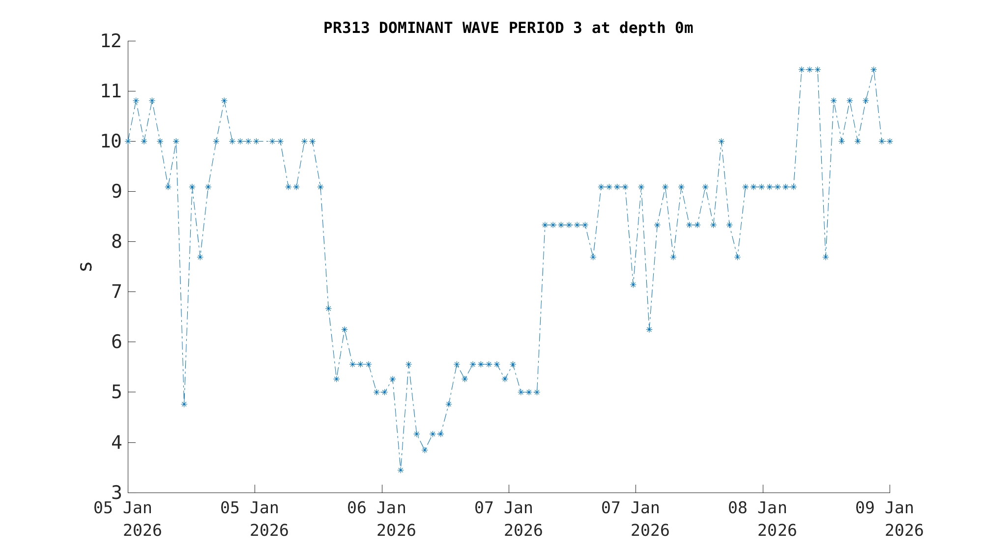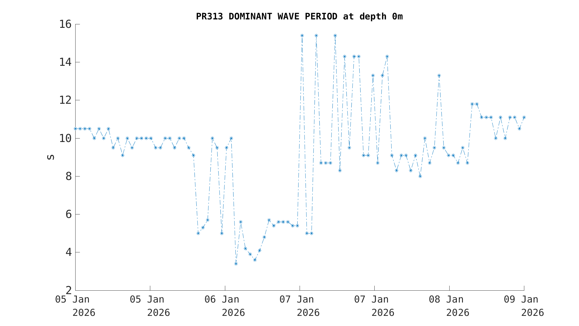 | Dominant Wave Period (test) (0m) | 10.0 seconds | Jan 08 8:00 PM |