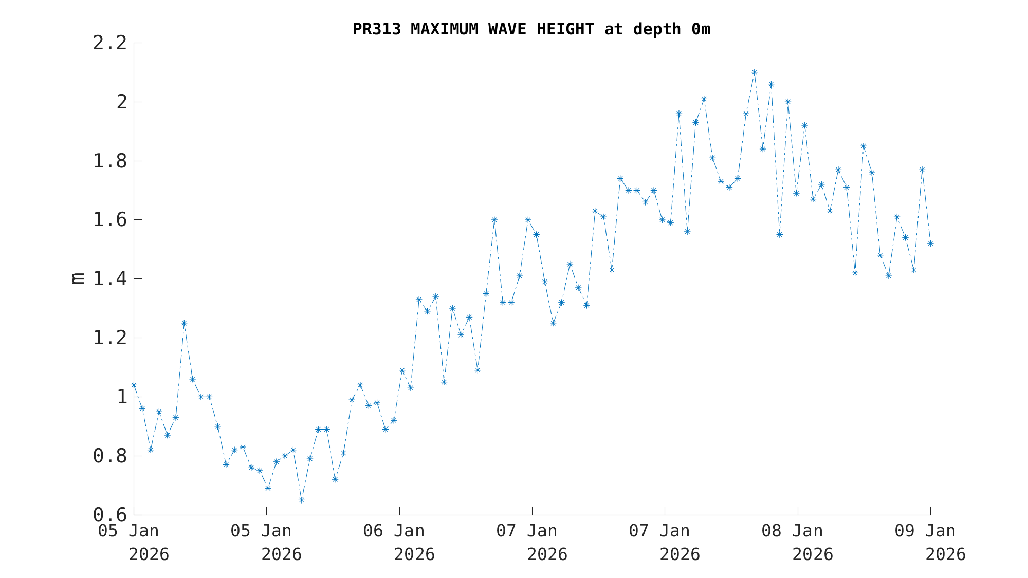 | Barometric Pressure (-3m) | 1016.1 millibars | Jan 08 8:00 PM |