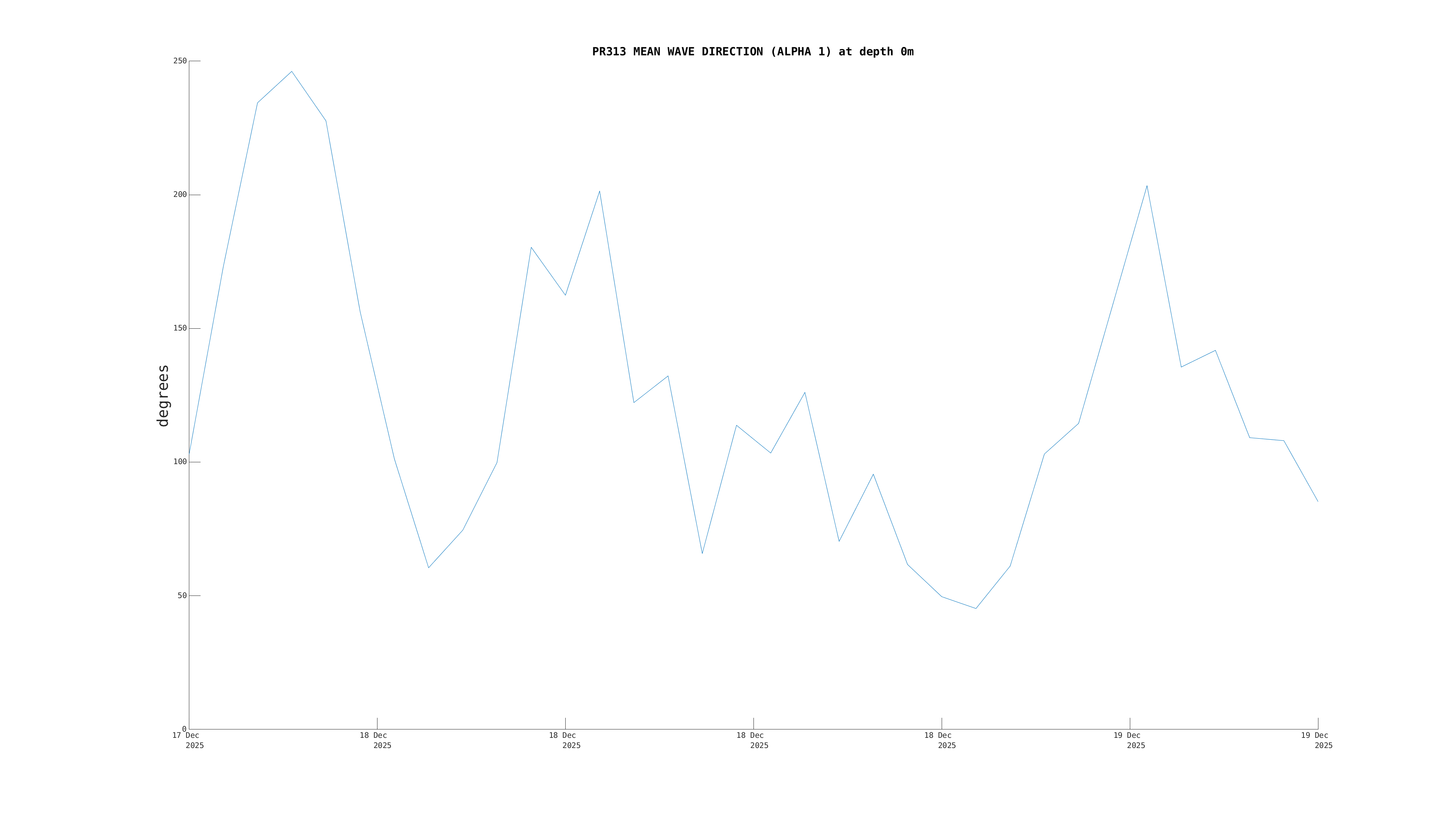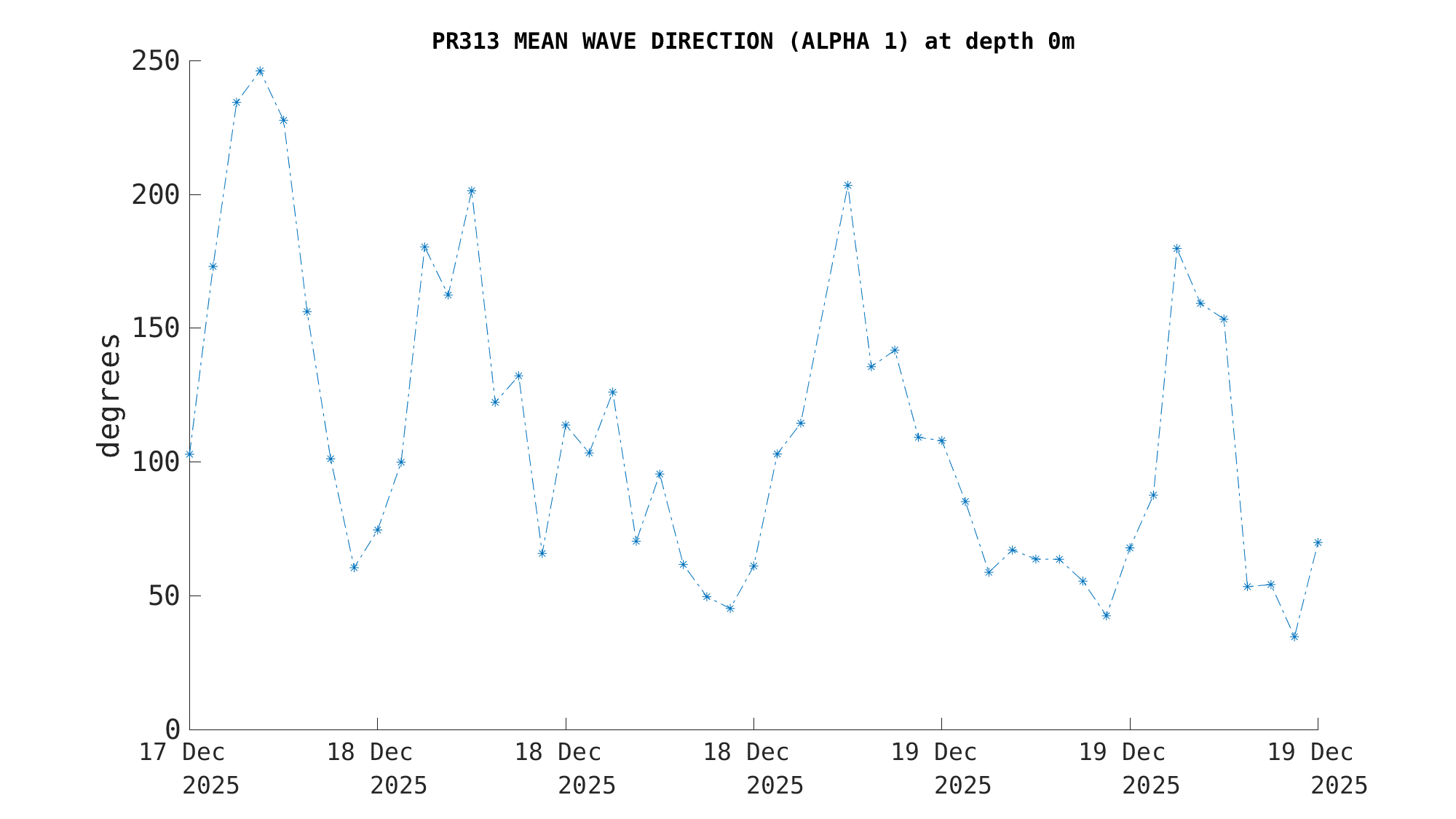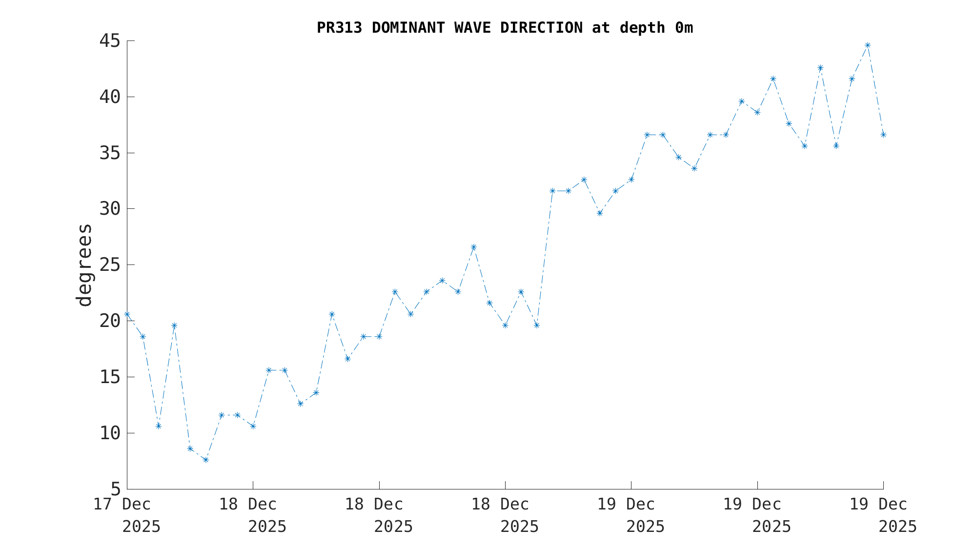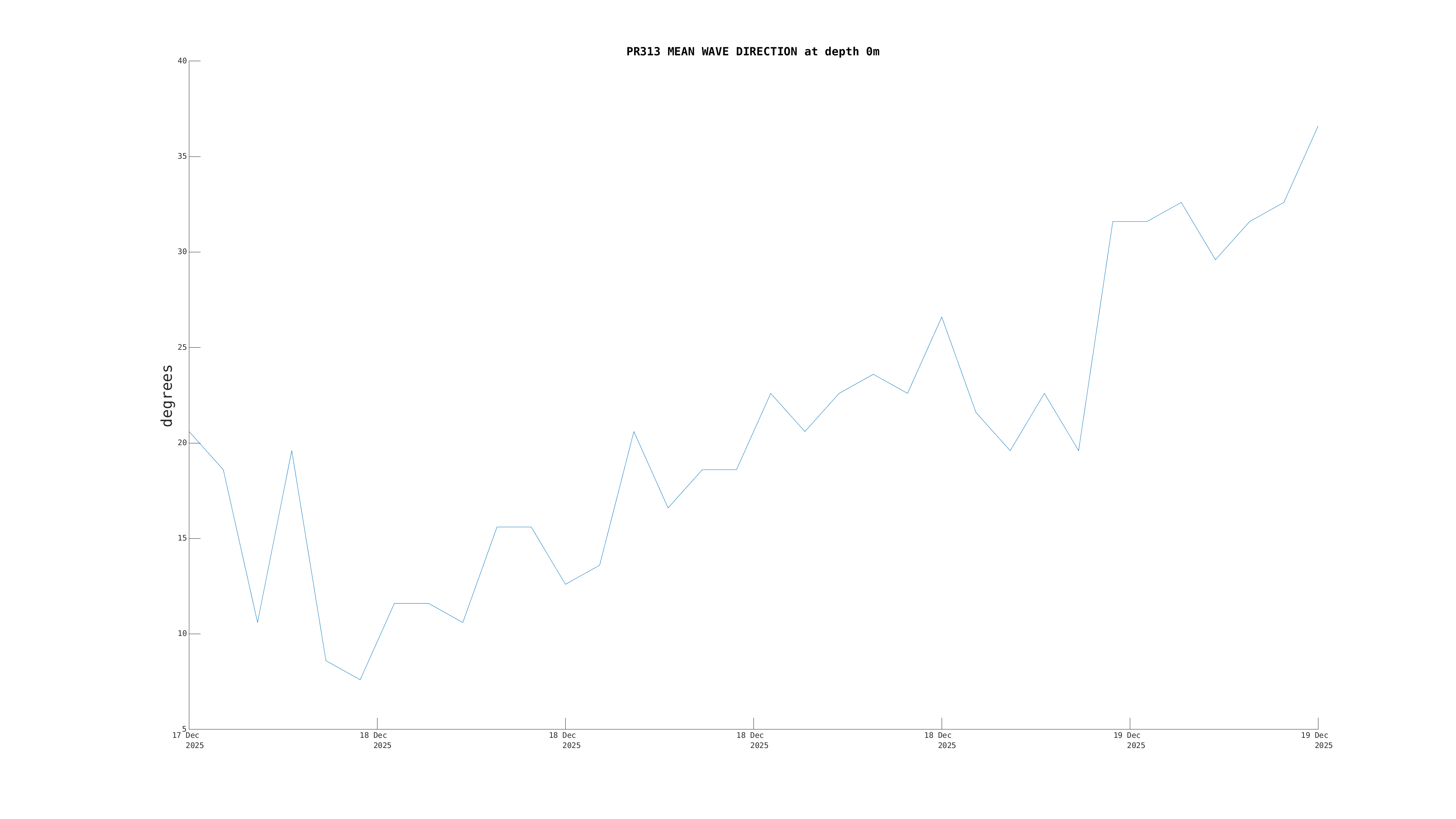 | Mean Wave Direction (0m) | 36.6 degrees | Dec 19 7:00 AM |