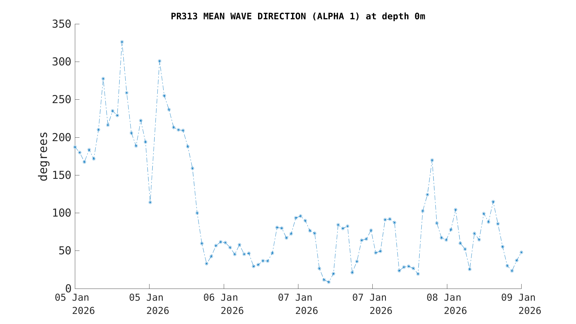 | Mean Wave Direction (test) (0m) | 48.0 degrees | Jan 08 8:00 PM |