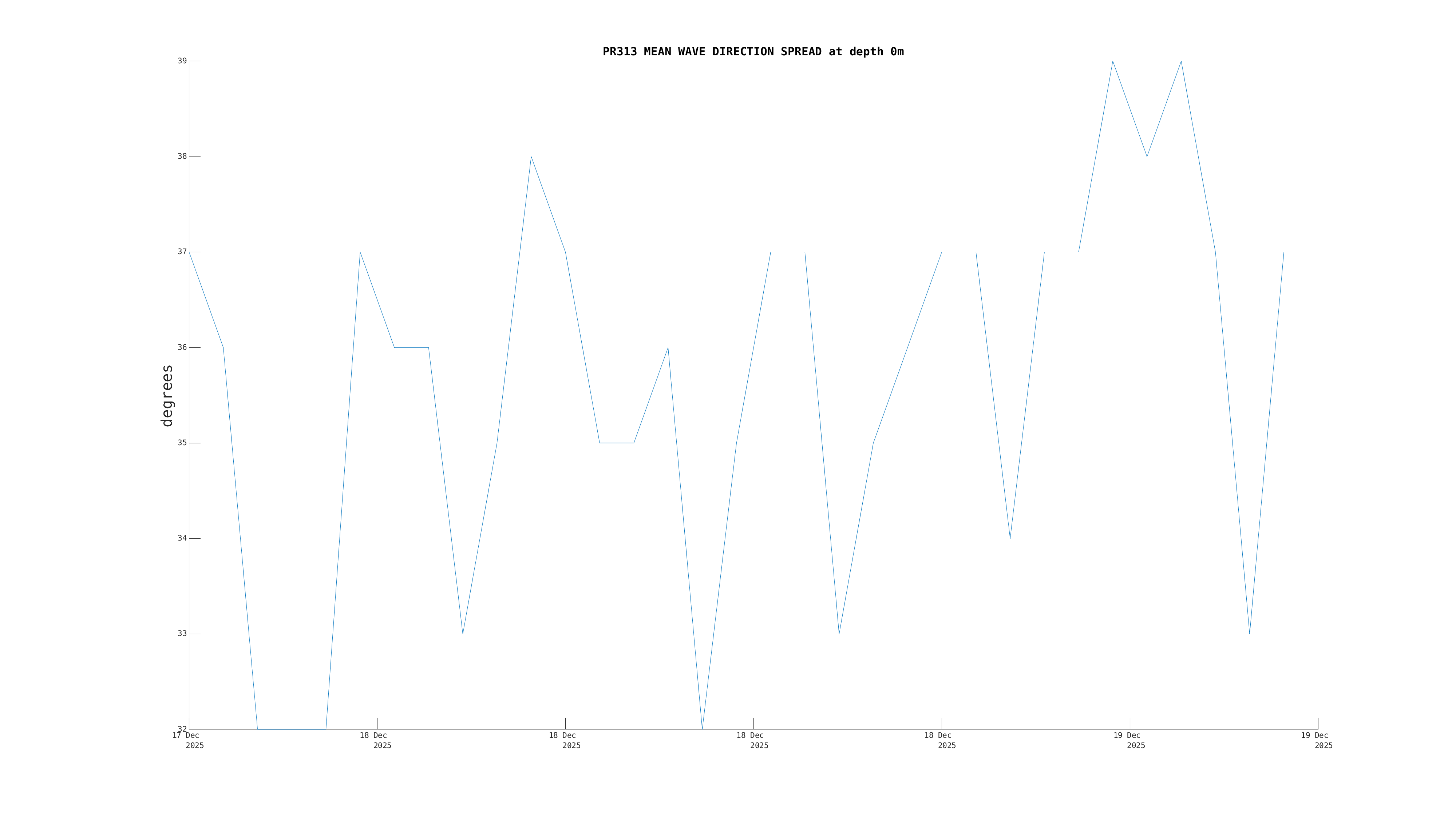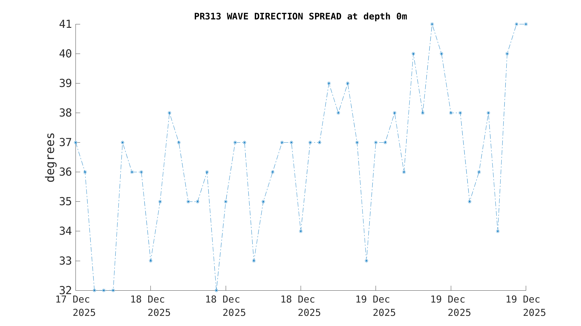 | Mean Wave Direction Spread (0m) | 41.0 degrees | Dec 19 7:00 AM |