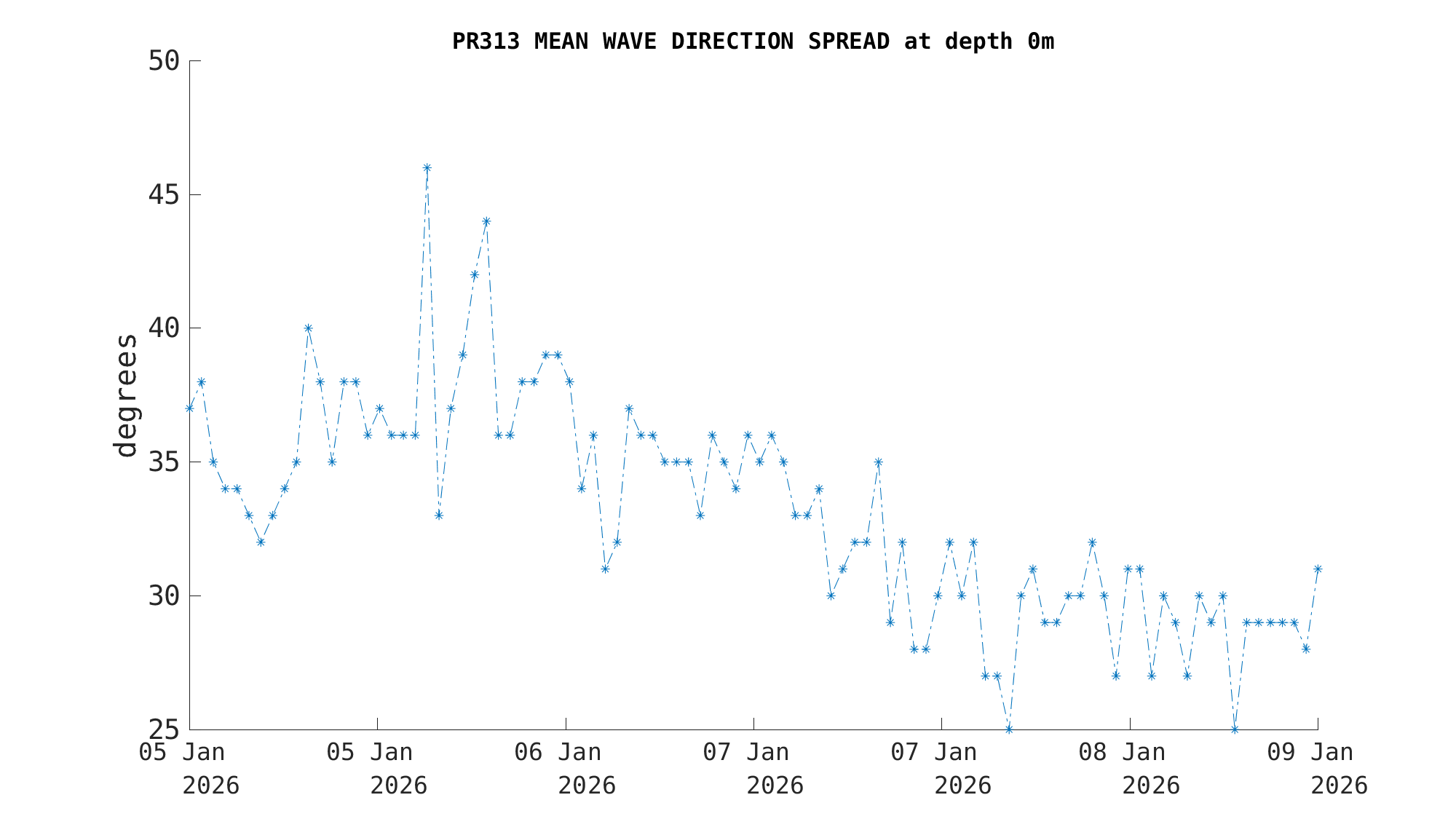 | Mean Wave Direction Spread (0m) | 31.0 degrees | Jan 08 8:00 PM |
