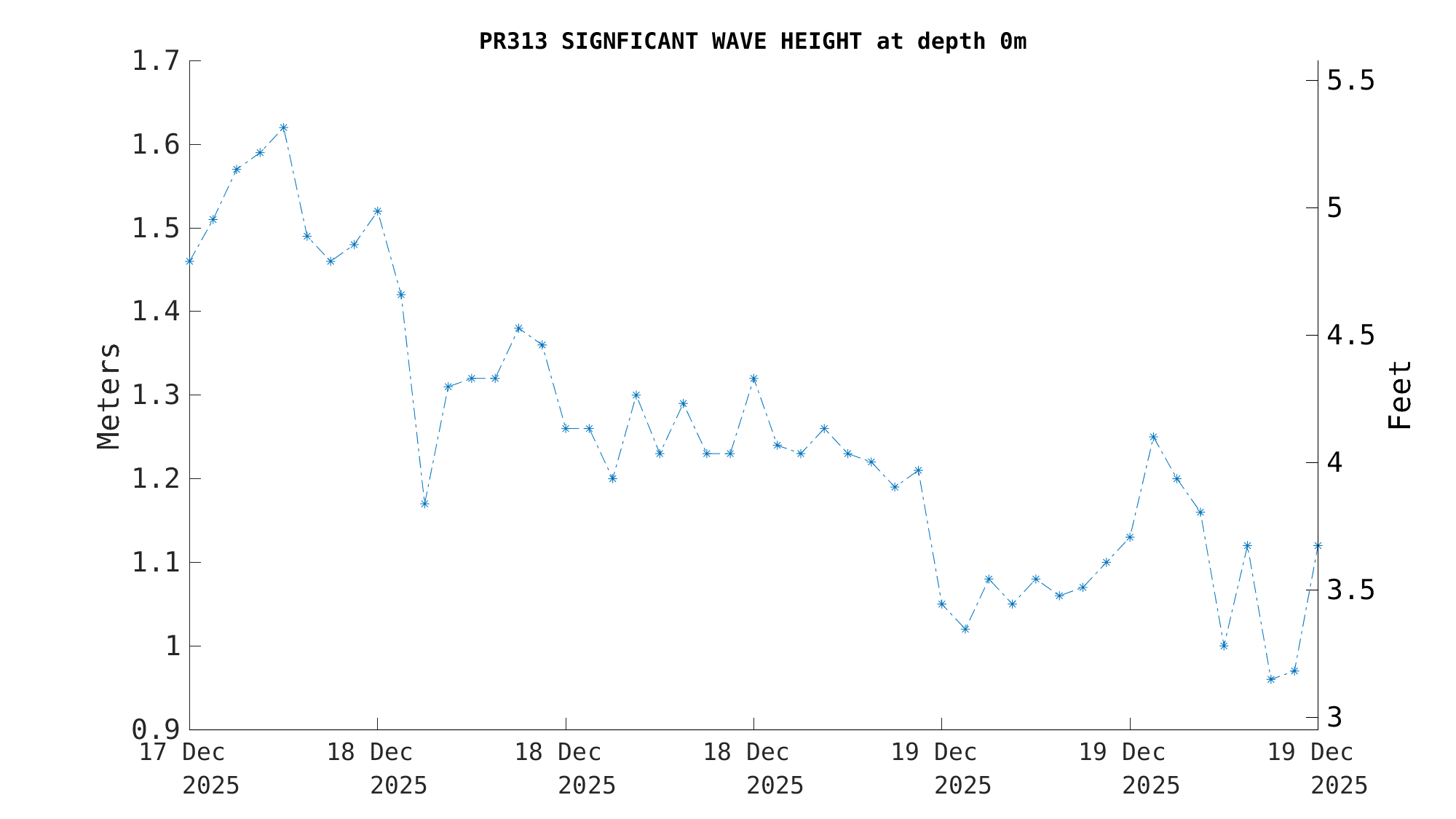 | Significant Wave Height (0m) | 1.1 meters (3.5 ft) | Dec 19 7:00 AM |
