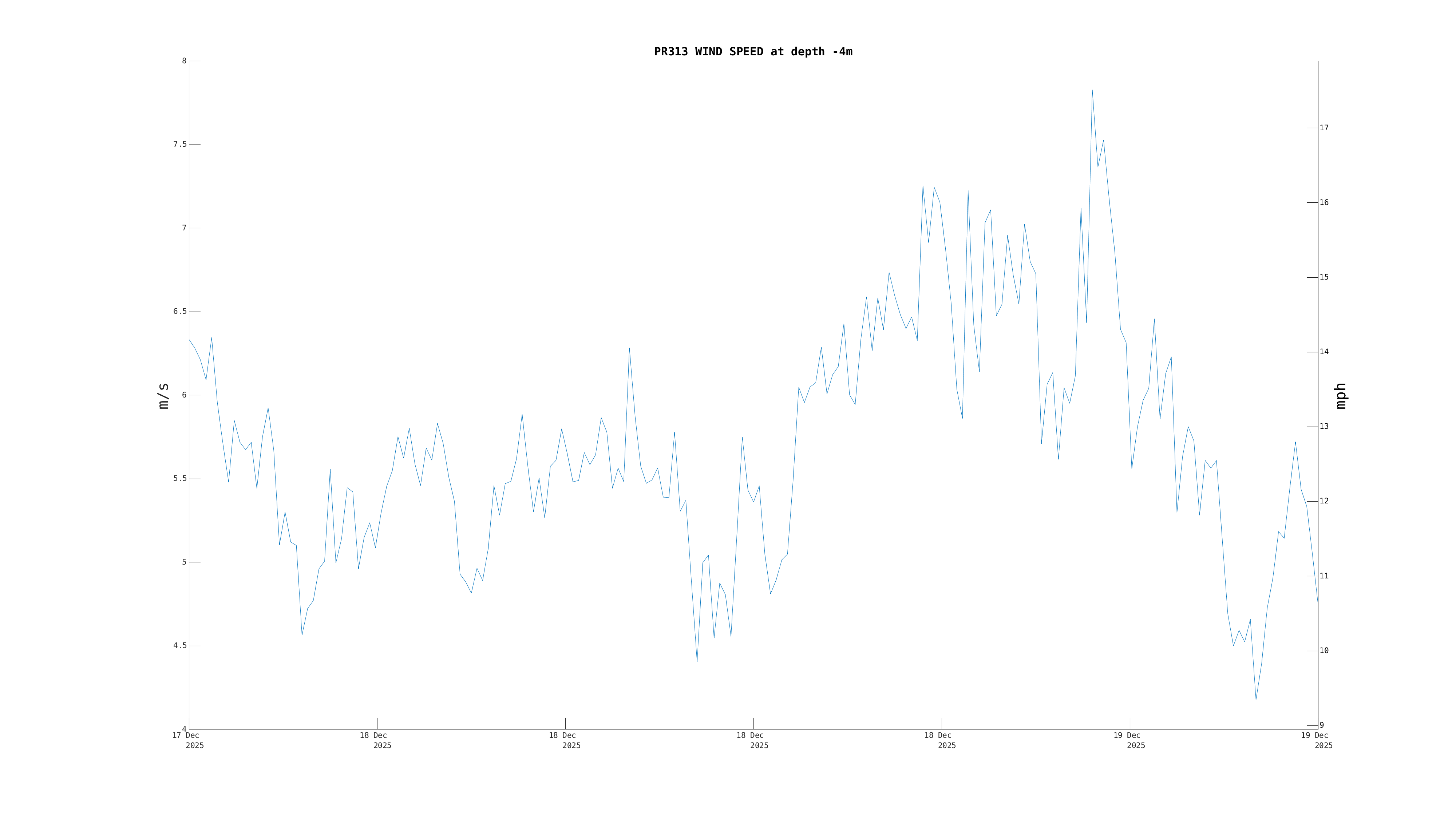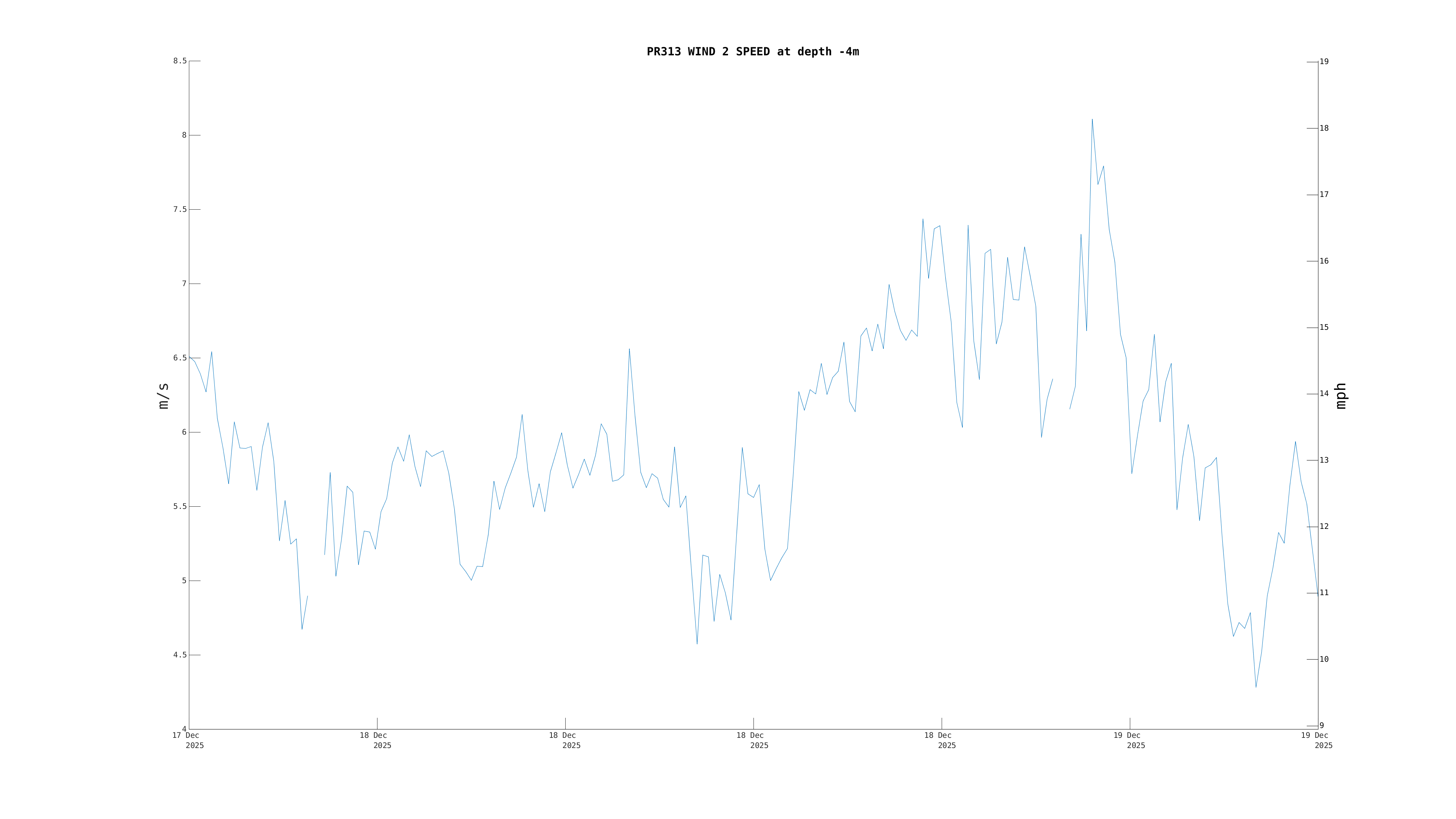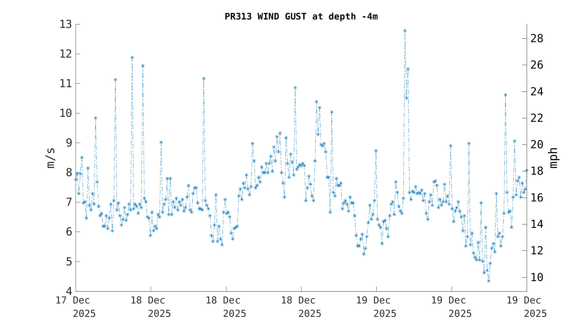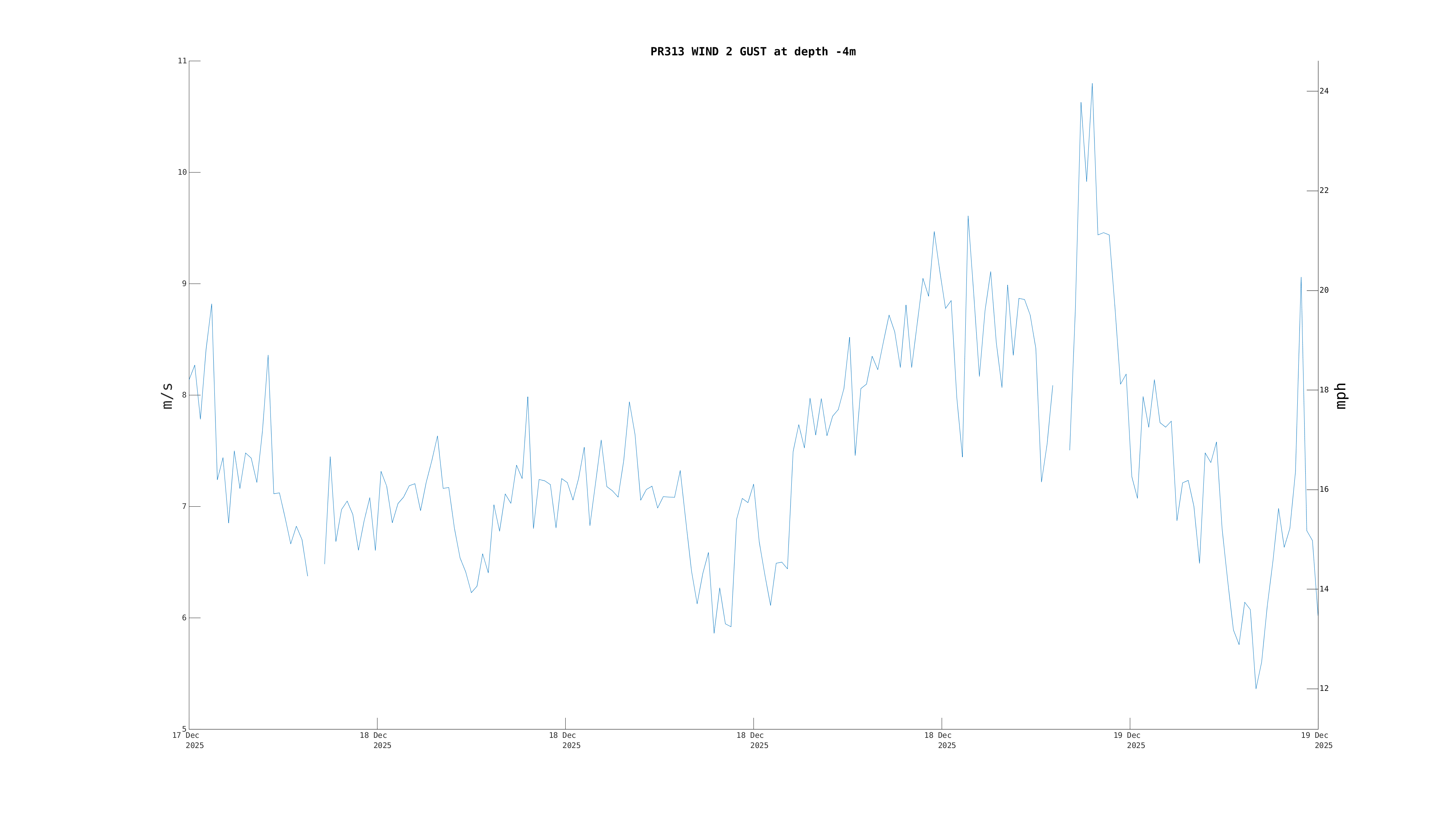 | Wind 2 Gust [Primary] (-4m) | 7.4 m/s (17 mph, 14 kts) | Dec 19 7:30 AM |