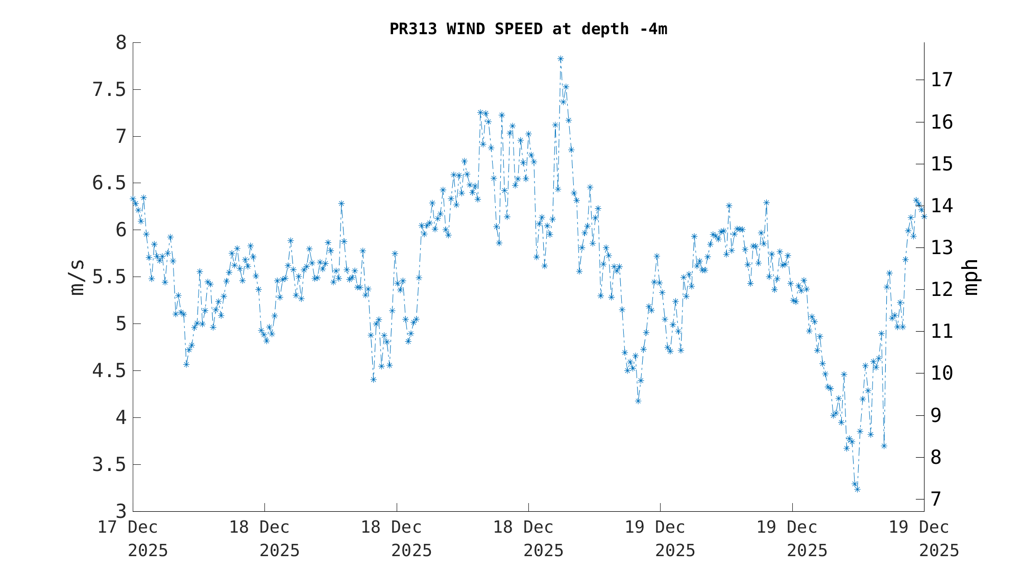 | North Current Velocity (4m) | 16.9 cm/s (0.33 kts) | Dec 19 7:00 AM |