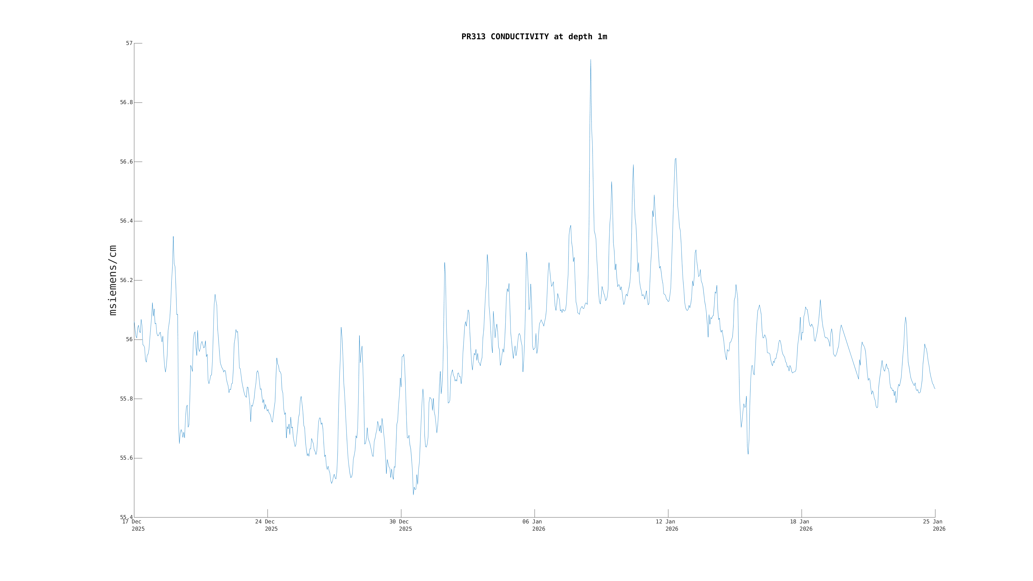| Conductivity (1m) | 5.6 siemens/m | Jan 25 6:00 AM |