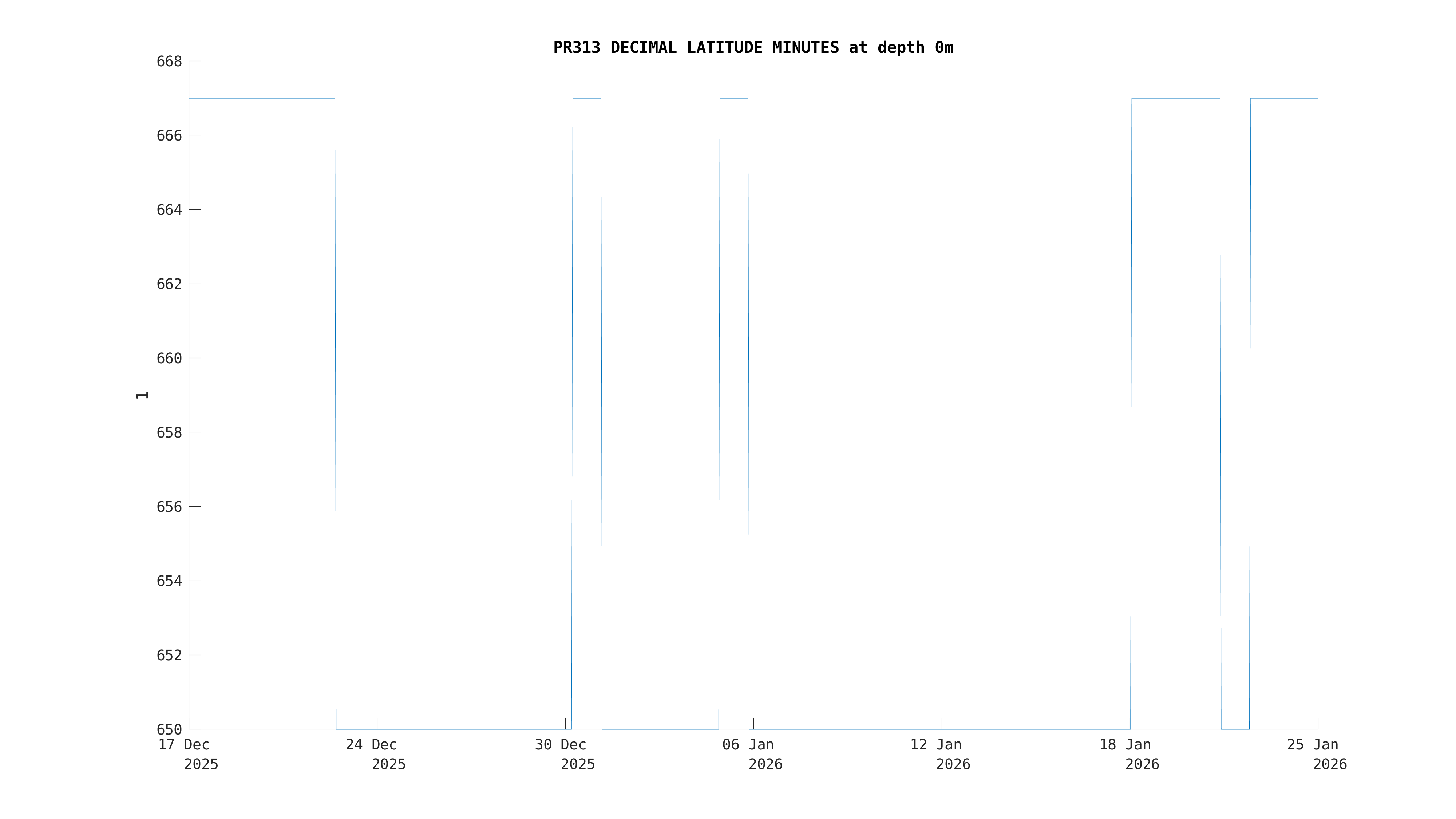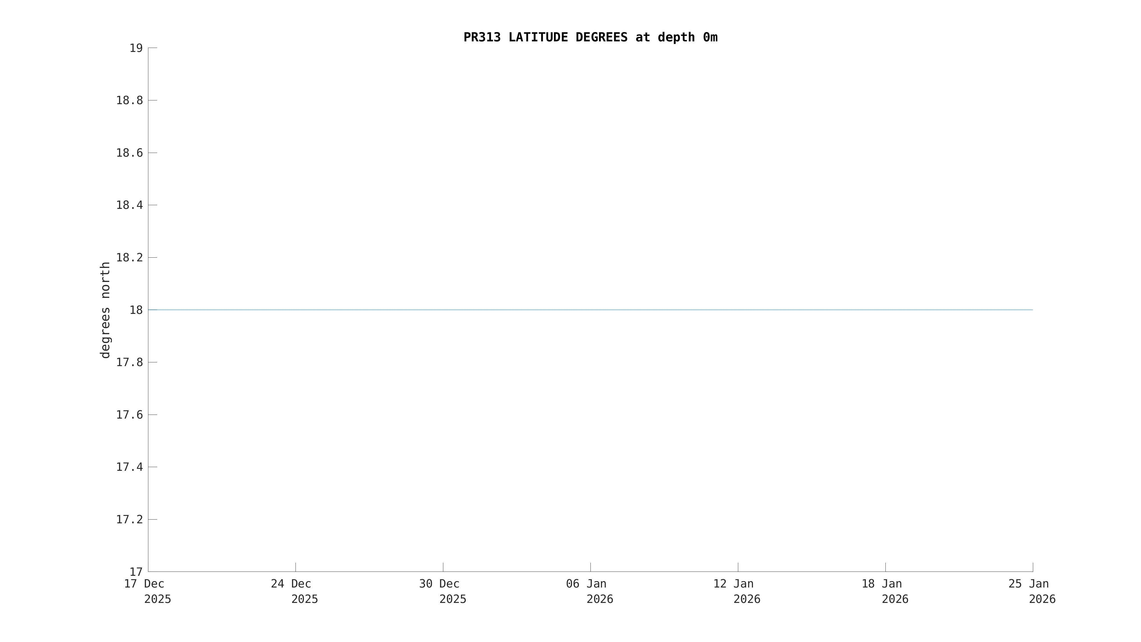 Latitude: 18° 15.67´N Longitude: 65° 27.85´W Location Description: North of Vieques Deployed: Dec 17 2025 Coast Guard Light List Letter: E Coast Guard Light List Number 31383 Water Depth: 30 meters (98 feet) Watch Circle Radius: 60 meters (197 feet) Last Cell Phone Transmission: Jan 25, 06 AM AST Last GOES Transmission: Jan 25, 06 AM AST Latest Event: Dec 17, 04 PM AST