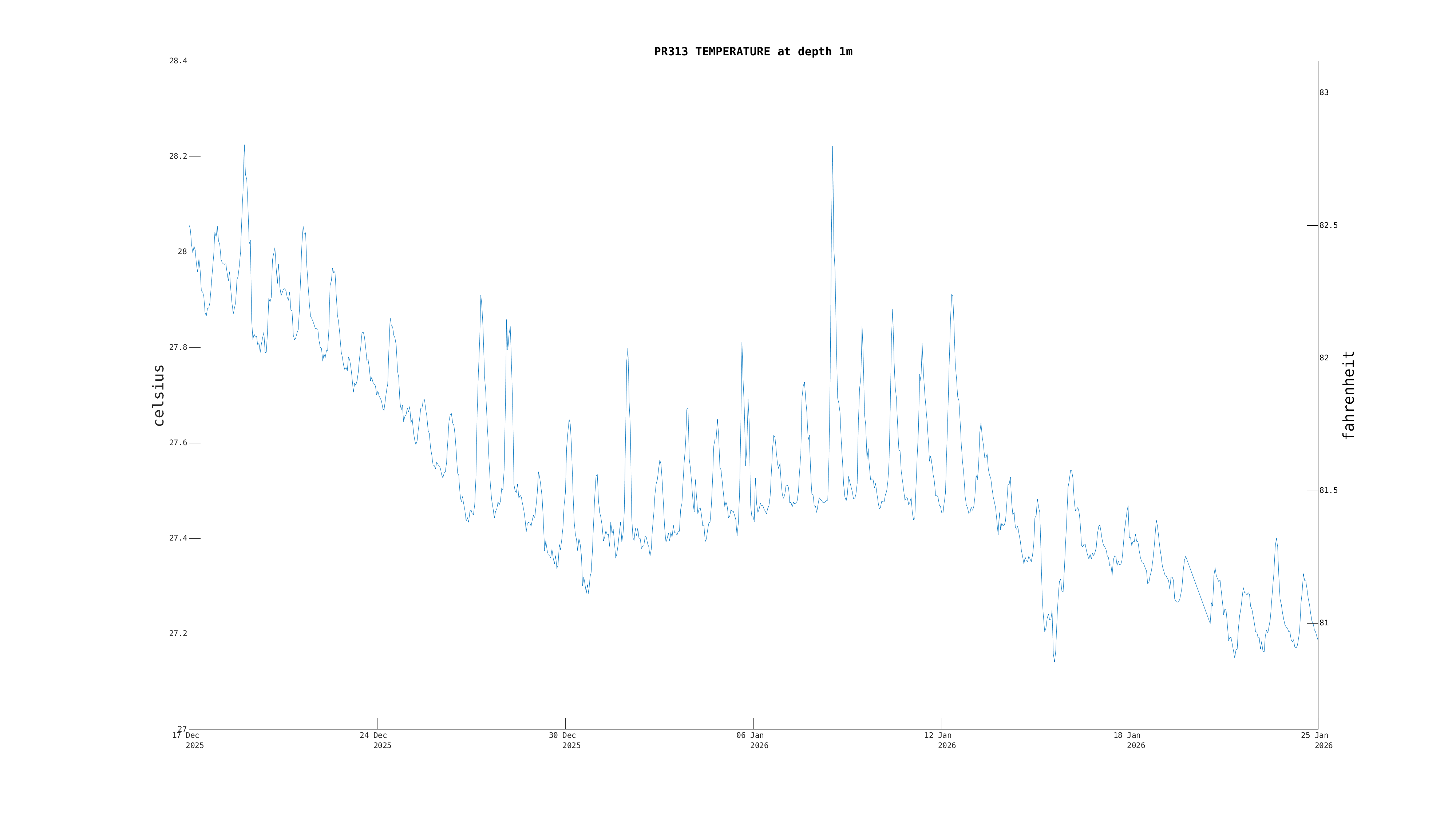 | Water Temperature (1m) | 27.2 C (80.9 F) | Jan 25 6:00 AM |