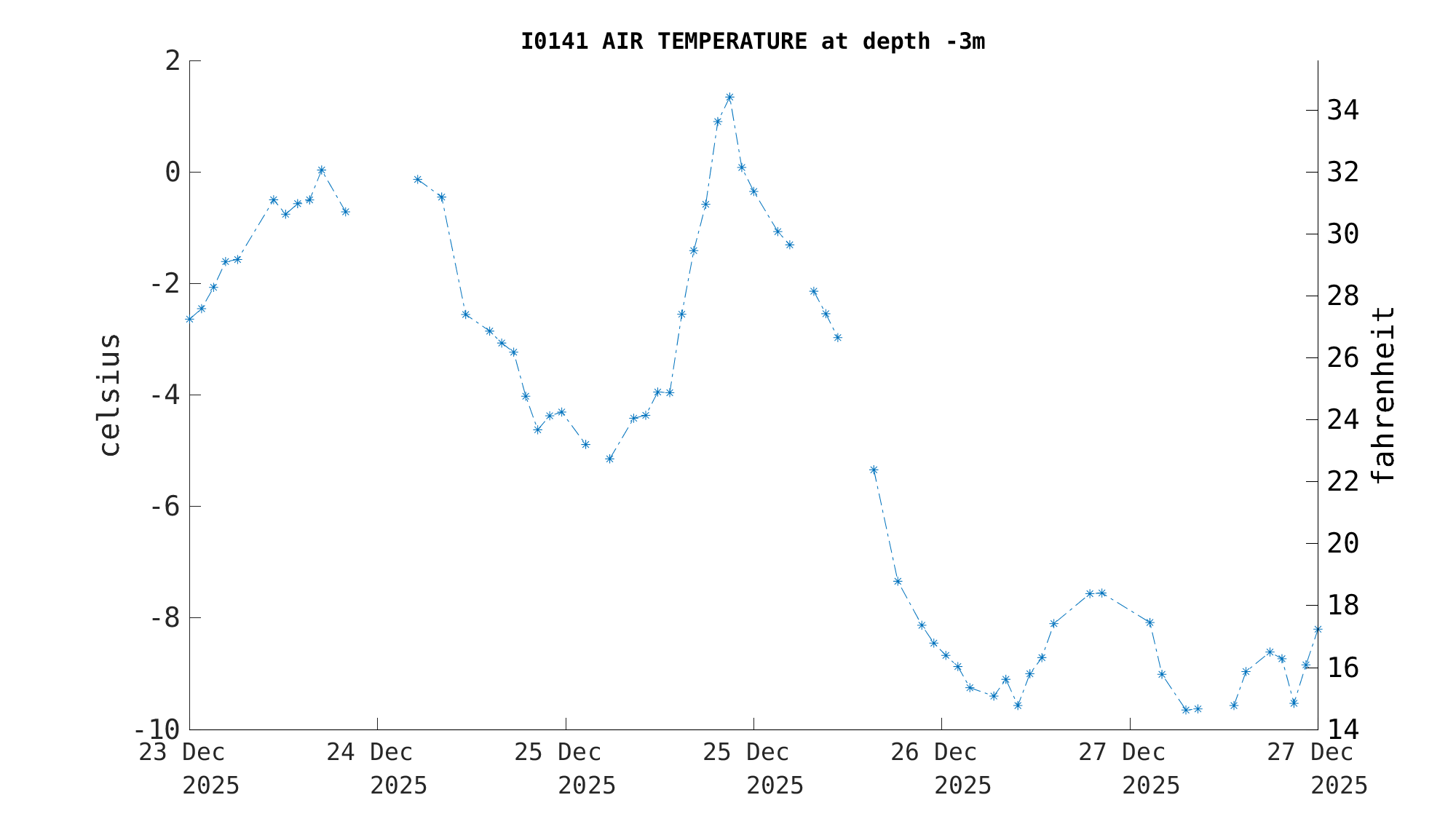 | Air Temperature (-3m) | -9.2 C (15.4 F) | Dec 26 10:30 PM |