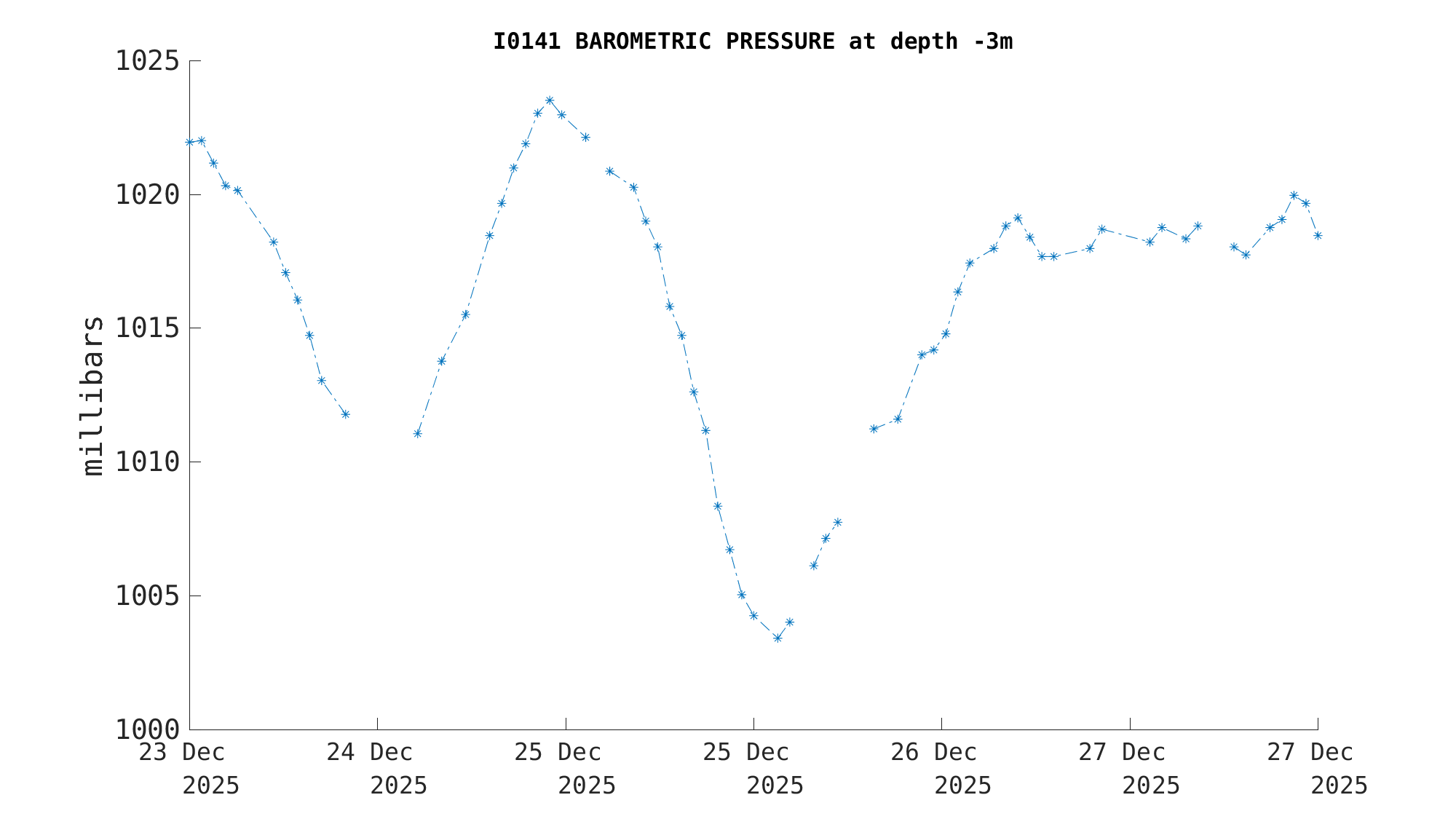 | Barometric Pressure (-3m) | 1018.6 millibars | Dec 26 10:30 PM |