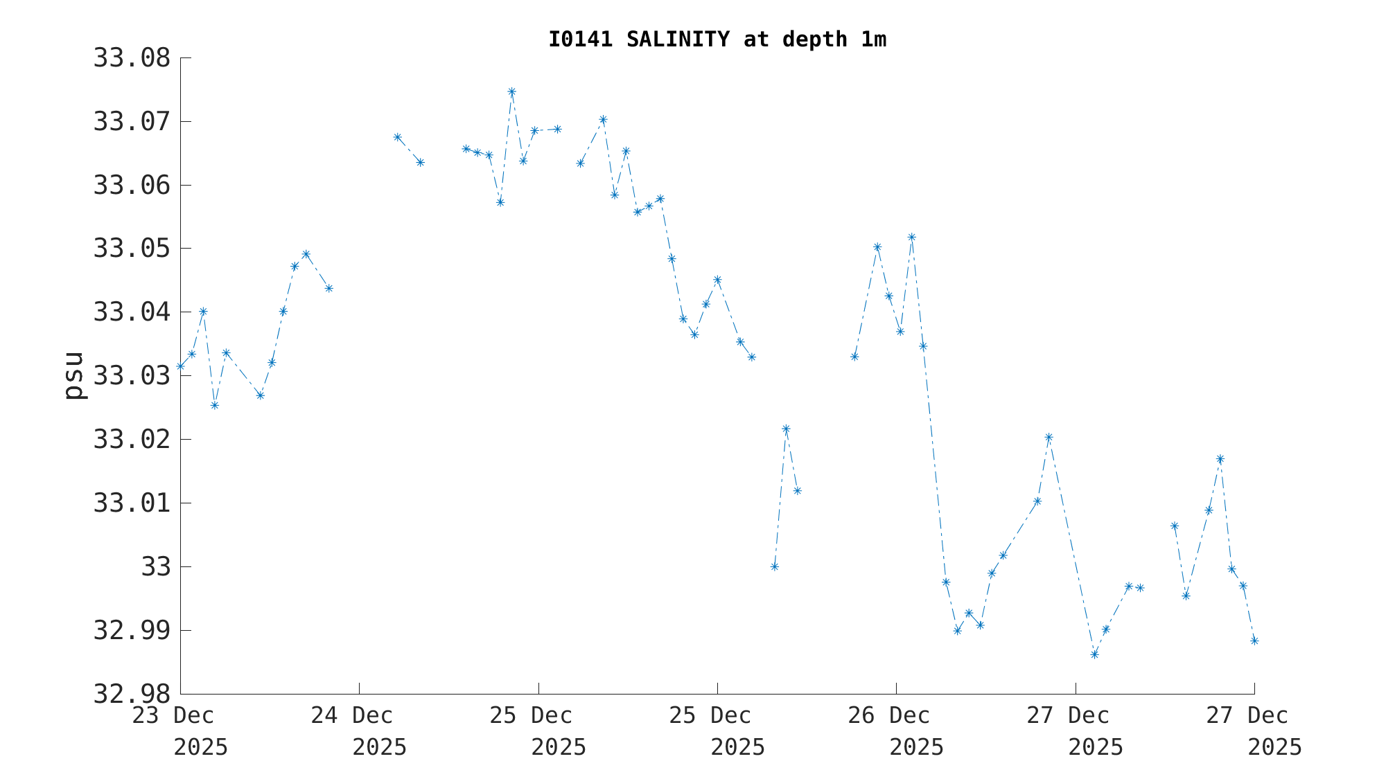 | Salinity (1m) | 33.0 psu | Dec 26 10:30 PM |